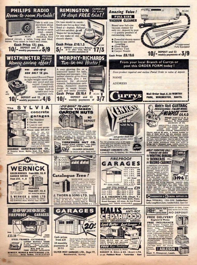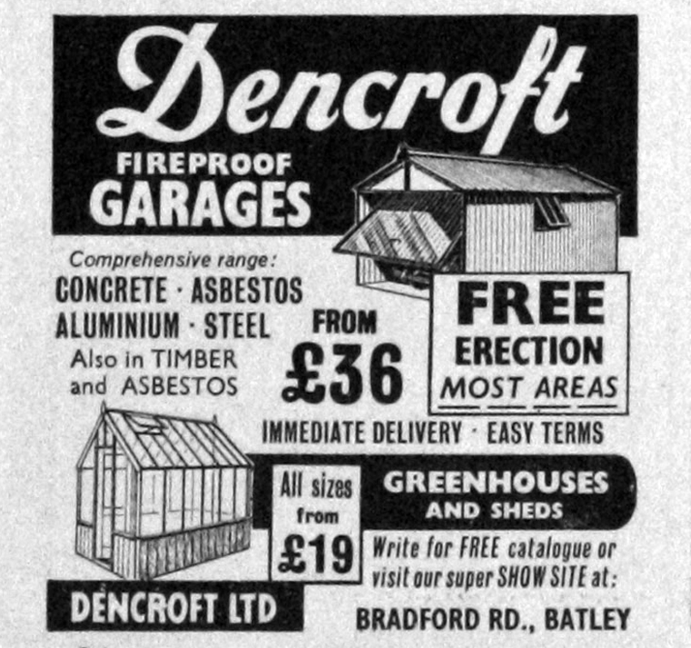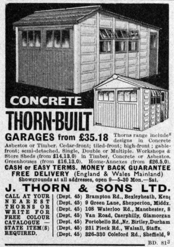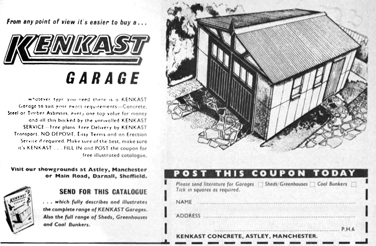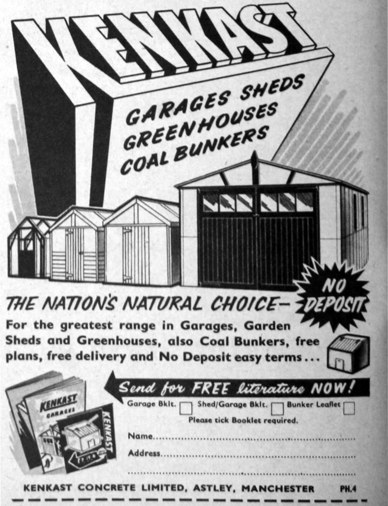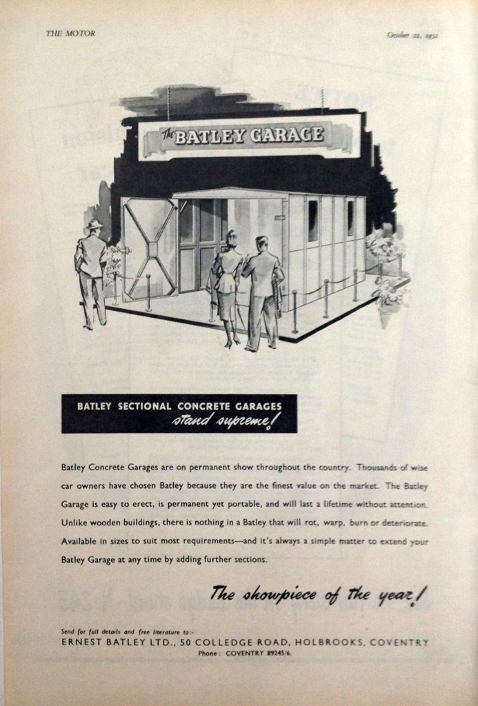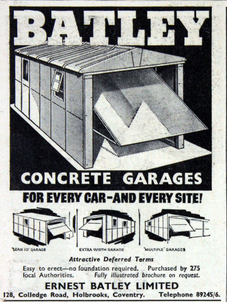 The first concrete kit garages appeared in 1952, manufactured by Marley, earlier models had been constructed from wood, asbestos, corrugated iron or galvanised steel.