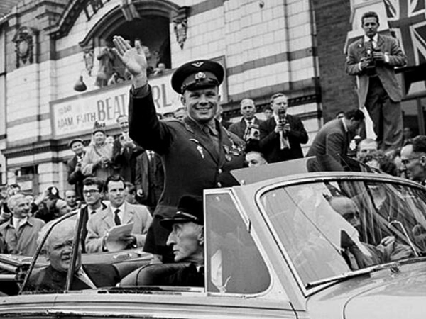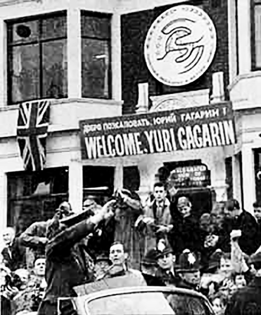 Exactly three months to the day after his flight in Vostok I had ushered in a new age of space exploration, on 12 July 1961, the trim figure of Yuri Gagarin strode down the gangway of a British Viscount airliner and walked briskly out across the runway of Manchester airport towards a sea of expectant faces, and flashing camera bulbs.