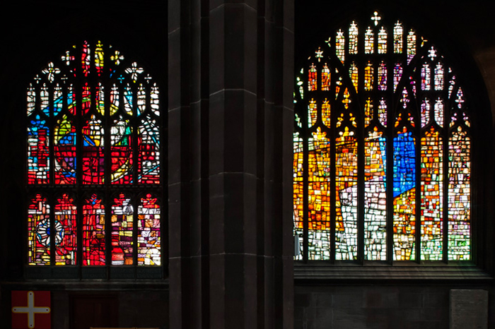 Tony Holloway’s work also illuminates the windows of Manchester Cathedral.