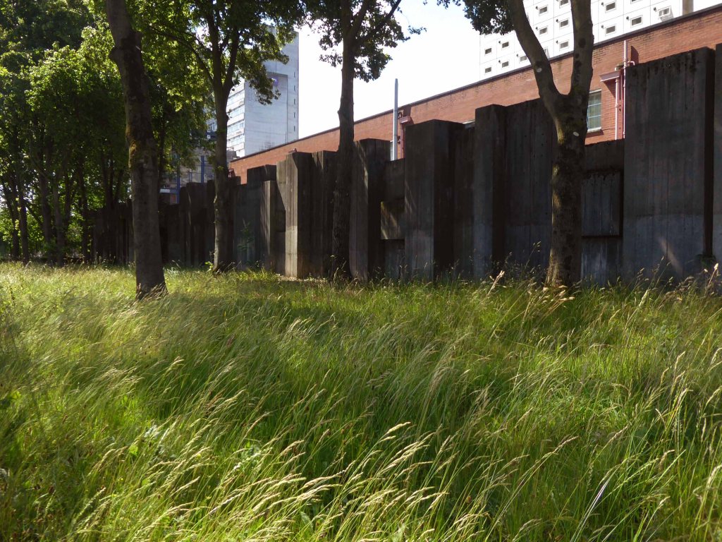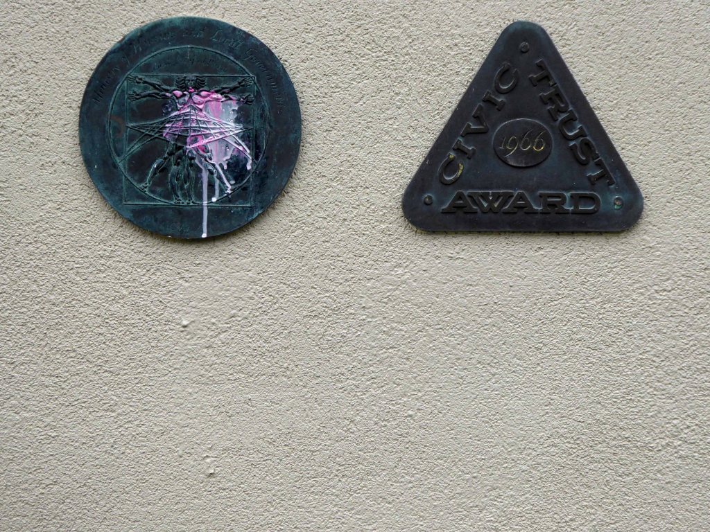 Six years later I walked up the road again and found the flats clad in a funny colour cladding and the plaques moved, much else was as was. I assume, that under deed of covenant, fencing and guerilla gardening within open areas is verboten, along with fancy extensions.