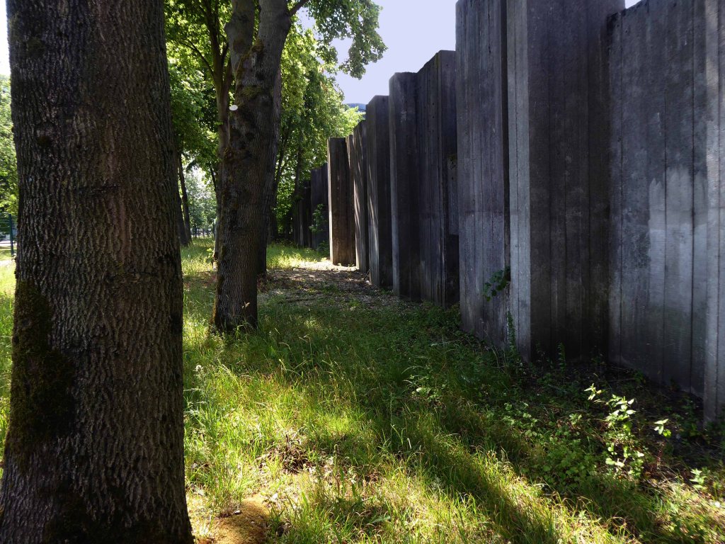 The wall is listed, fenced and obscured by the gradual incursion of assorted greenery.