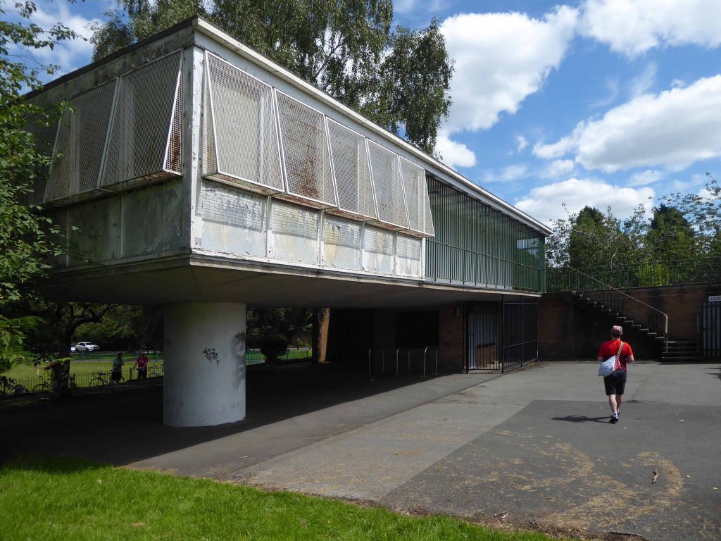 In striking contrast to Wythenshawe Hall of 1540 – recently restored following an arson attack, the bowls and tennis pavilion shows no inclination toward Tudor-bethan revivalism.