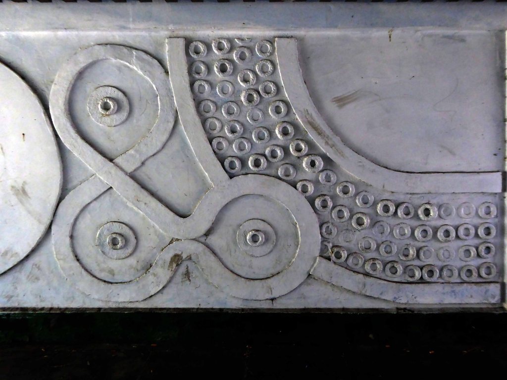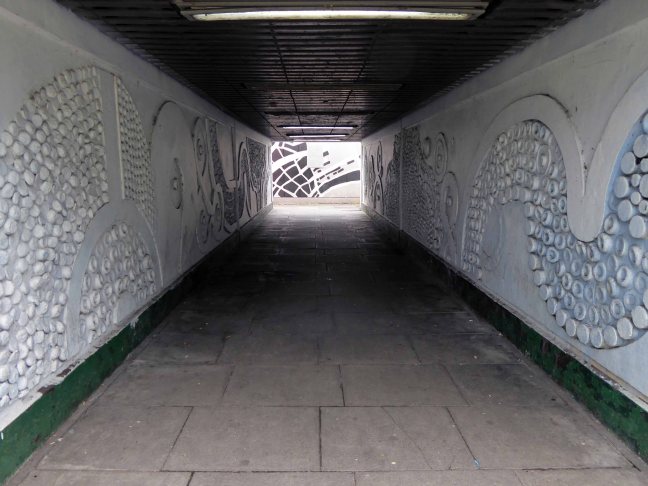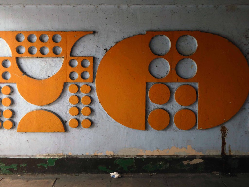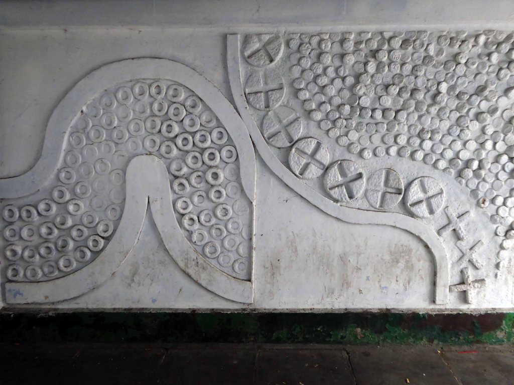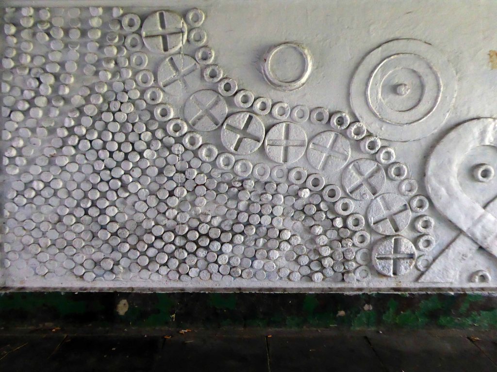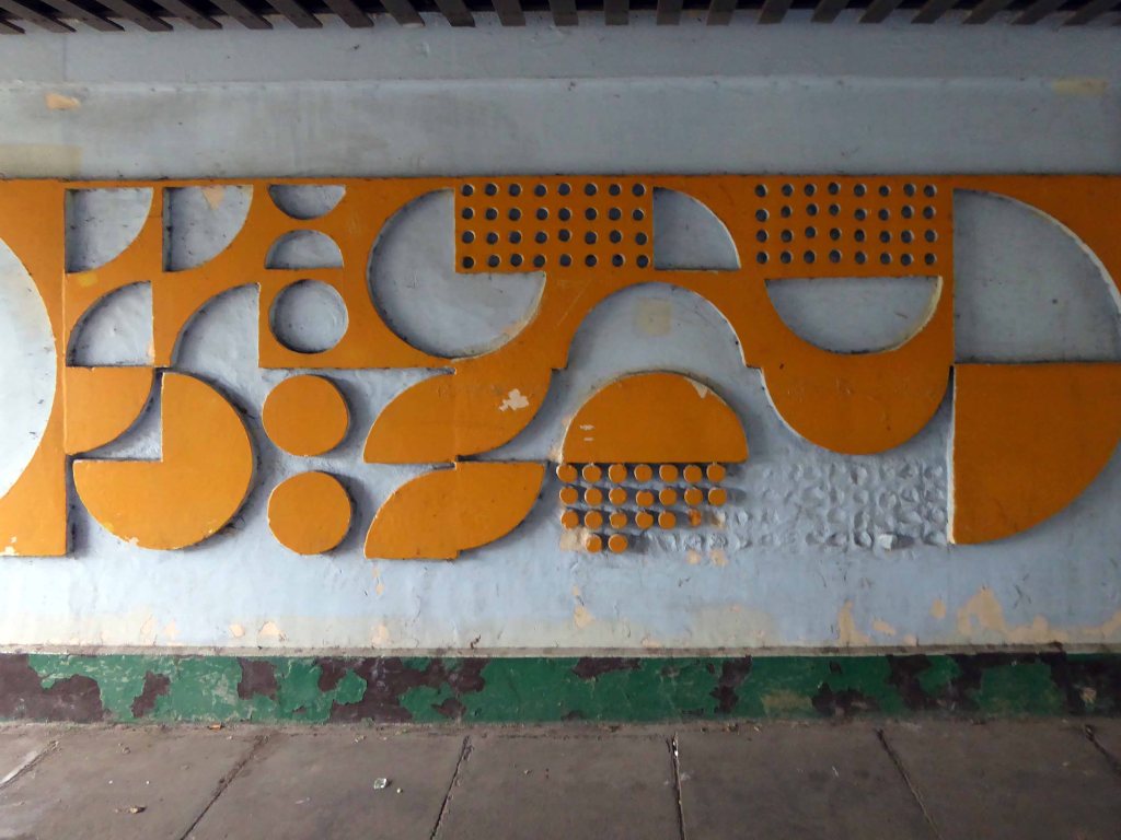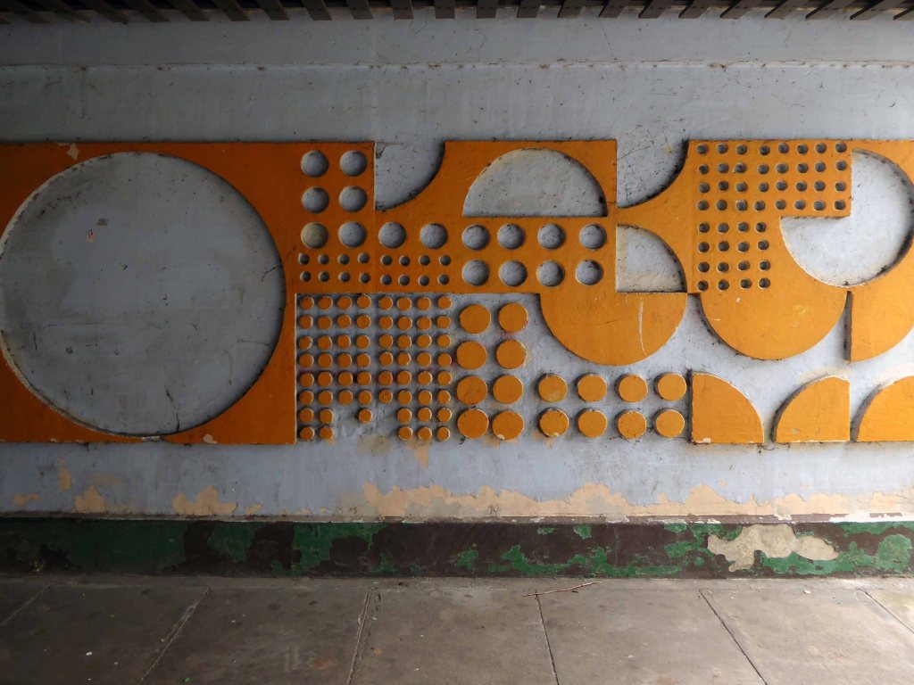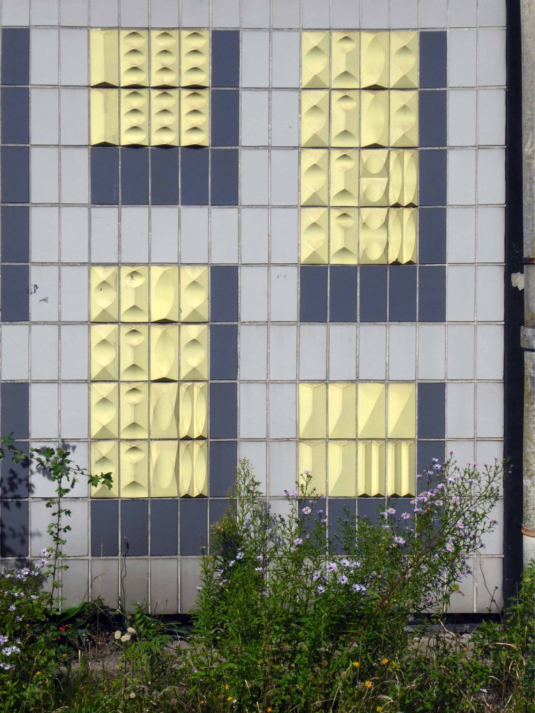 What’s more there is a panel of ceramic tiles many with a pronounced profile in relief – a fugue in lemon, grey and a deep Prussian Blue.