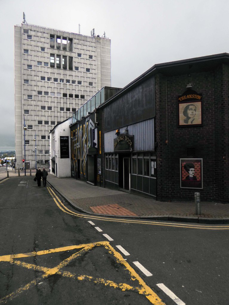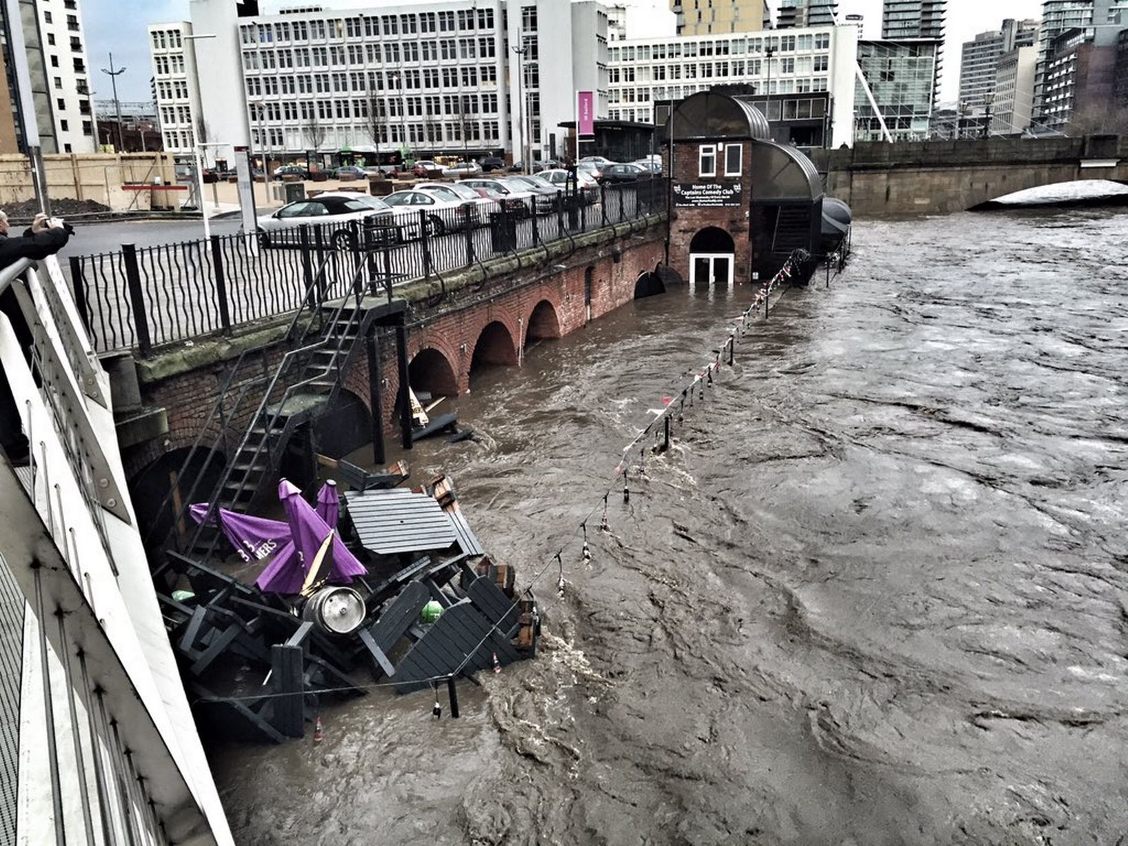 Crossing over the Albert Bridge take a look to the left – the now derelict Mark Addy, a POMO dreamworld of 1981, closed in 2014, subsequently drowned by the rising tide of the river.