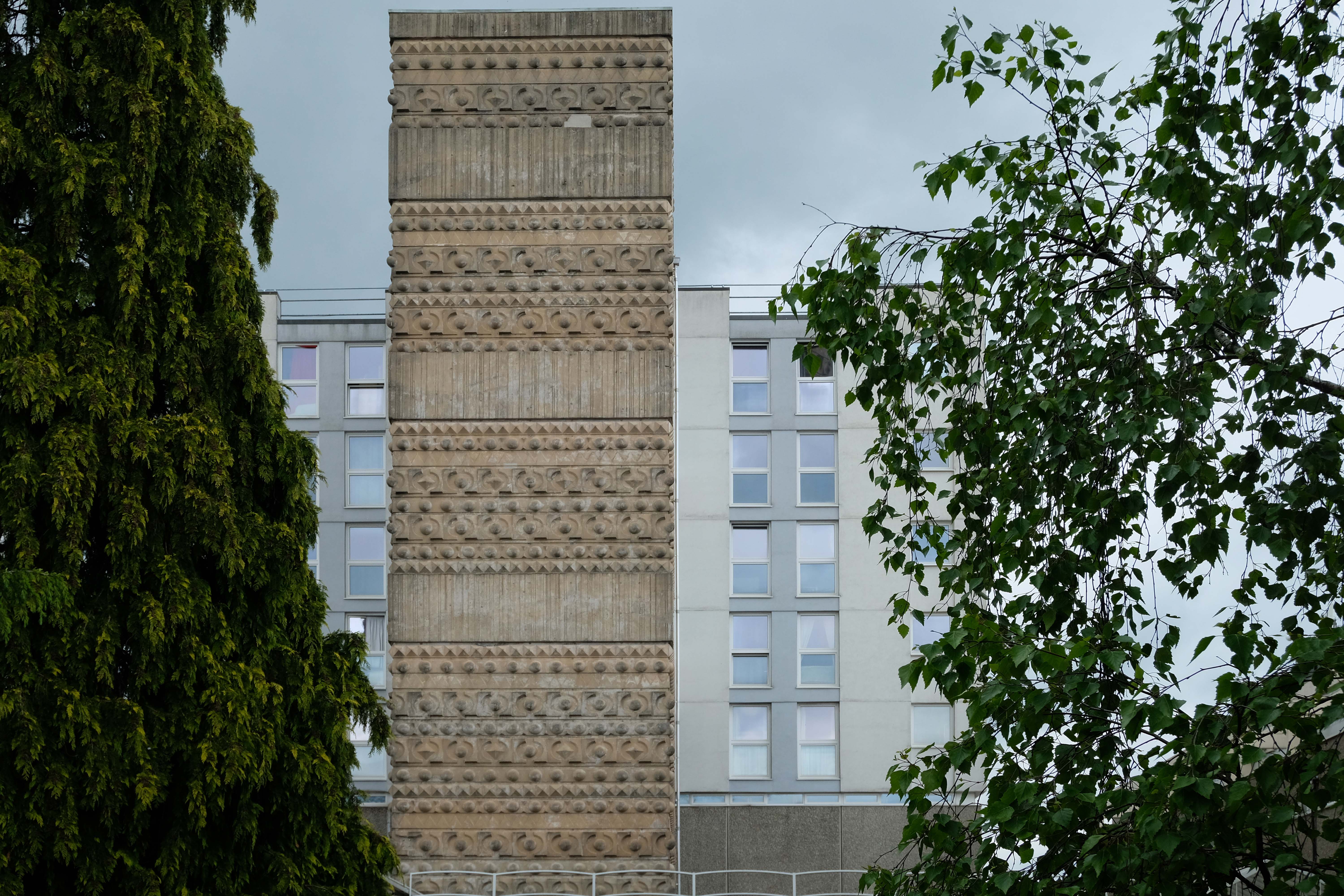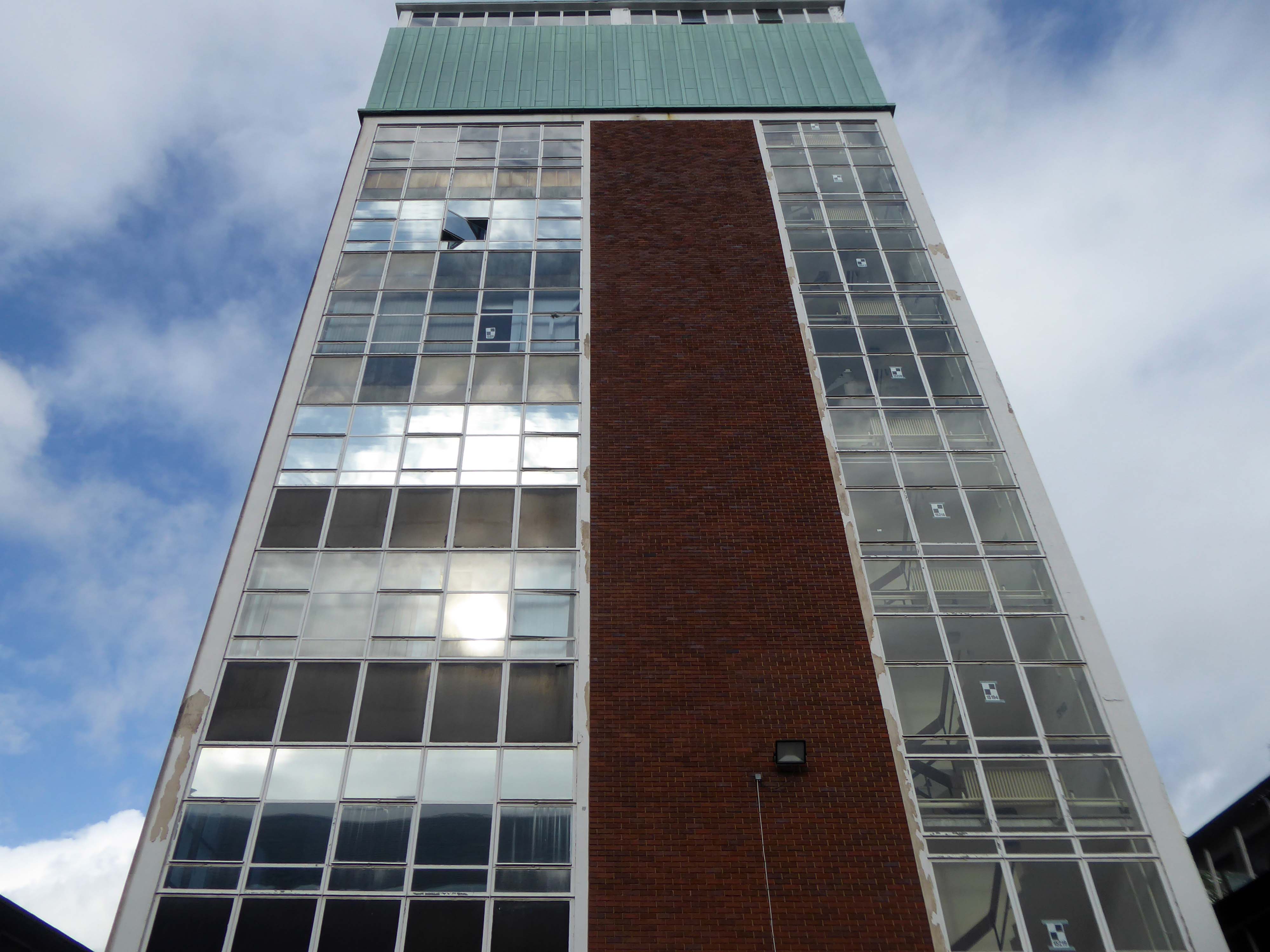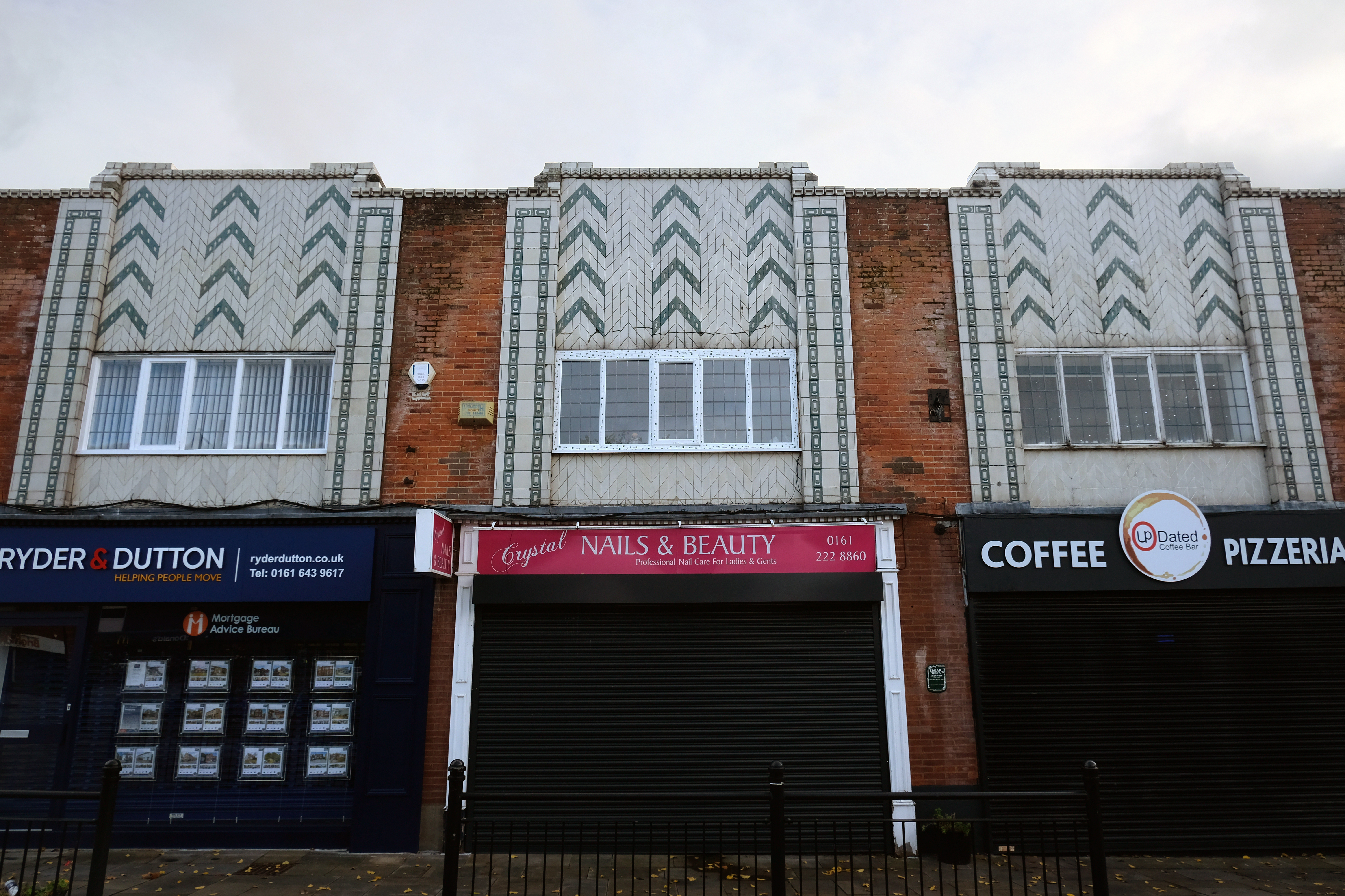 The Guardian Buildings, were commissioned by Fred Bagot, the proprietor of the Middleton Guardian newspaper and a man with a reputation at the time for keeping a tight control of finances. In consequence, Guardian Buildings were one of Edgar Wood’s low budget buildings, of which there are several in and around Middleton. The building housed the operations of the newspaper with the cellar containing the printing machines and the tall ground floor housing a shop, office and more machines. The whole of the first floor, with its pair of oriel windows, was taken up by the composing room.