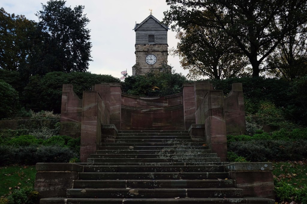 In 1906 Alderman Thomas Broadbent Wood commissioned his son, Edgar, to design a flight of steps to lead up to a contemplation spot in the park – the inscription reads: