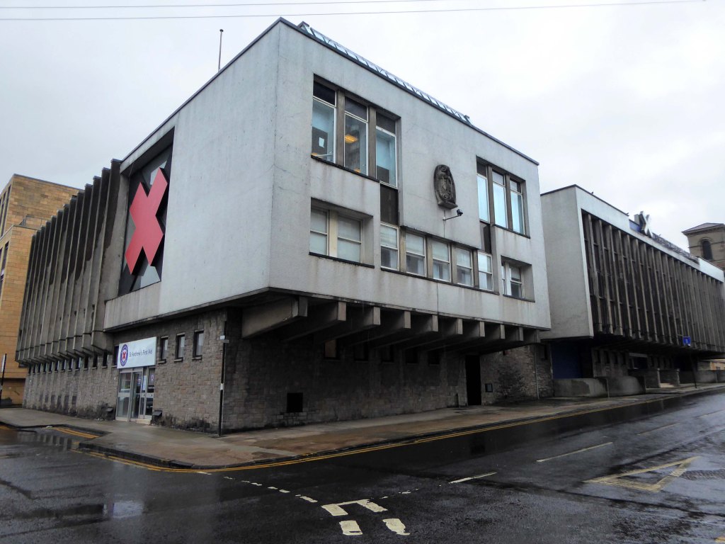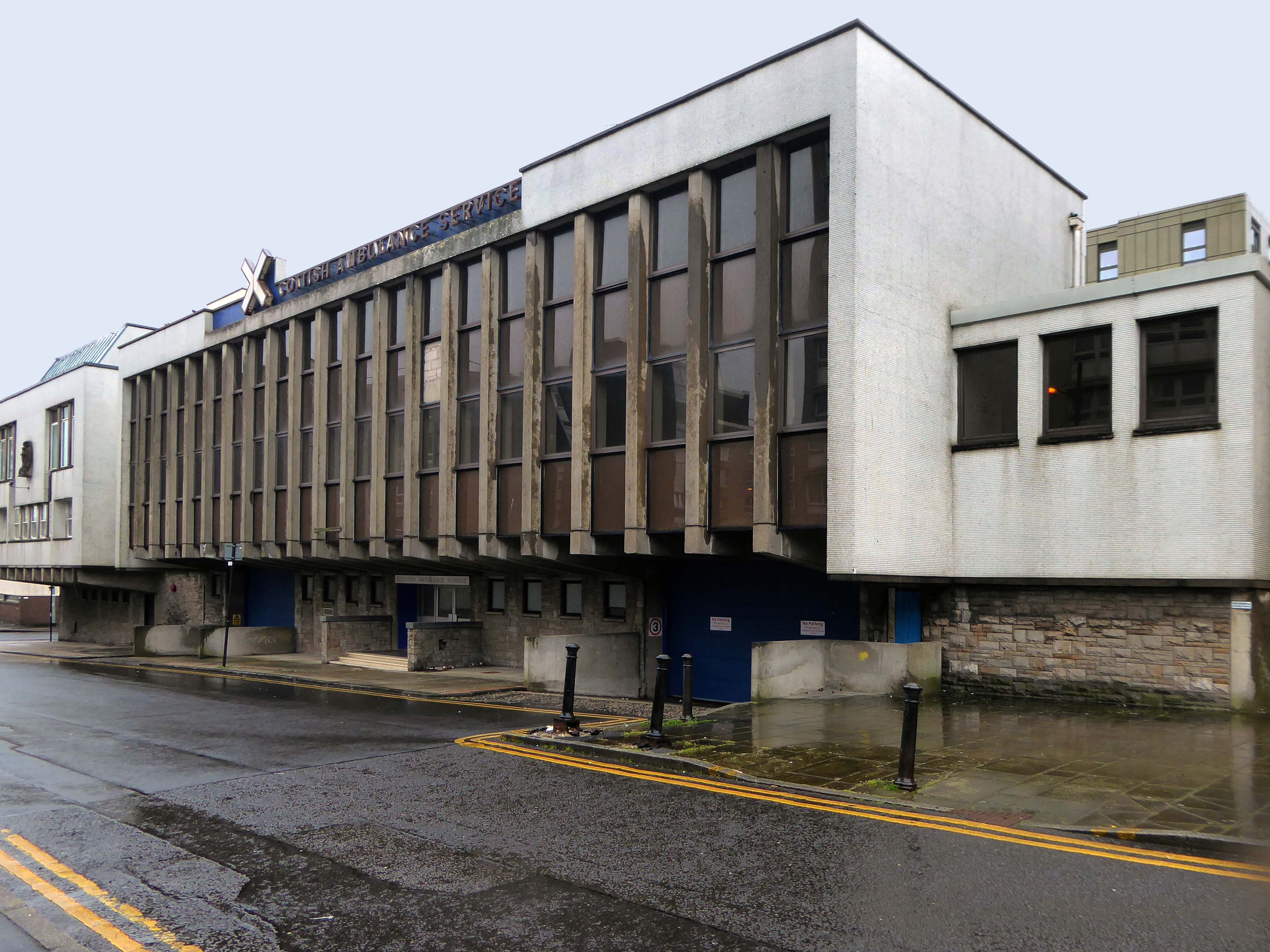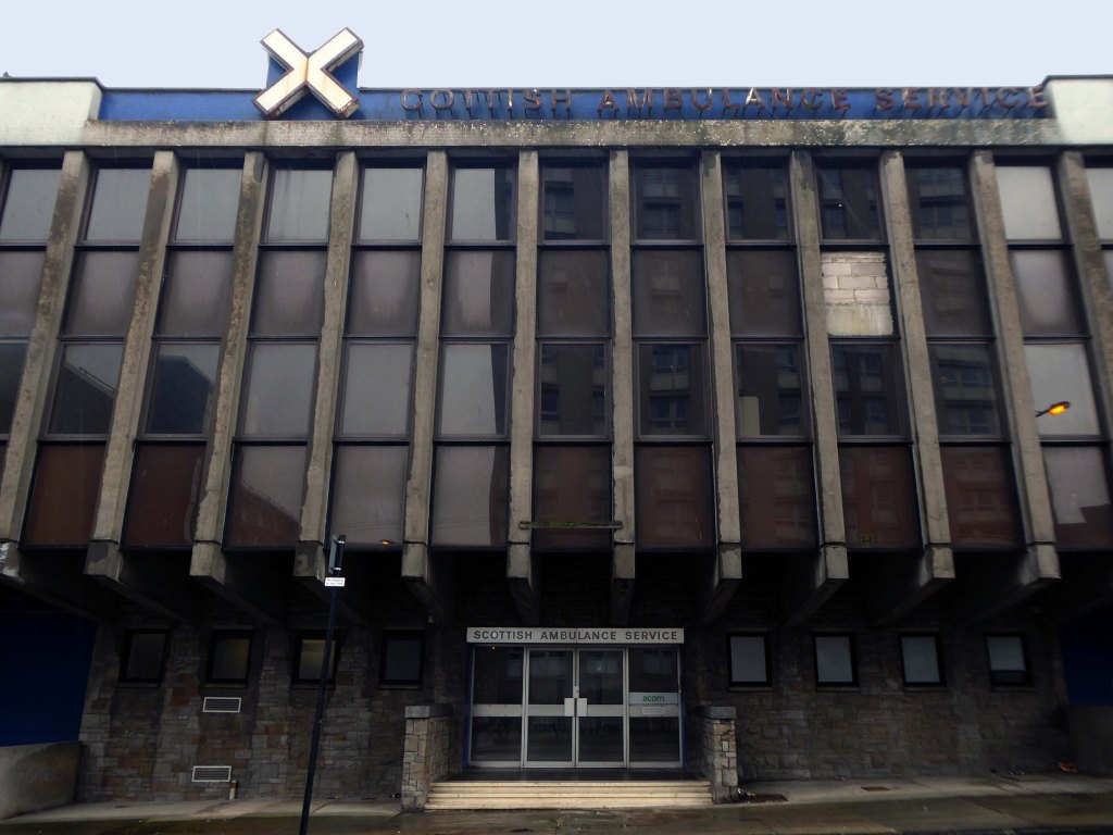 Scottish Ambulance Headquarters on Maitland Street and the adjoining St Andrew’s House with it’s entrance on 48 Milton Street. Designed by Skinner, Bailey & Lubetkin in the late 1960s. Originally two linked buildings, they now act independently with St Andrew’s House occupied by St Andrew’s first aid and the Headquarters next door currently lying vacant April 2011.