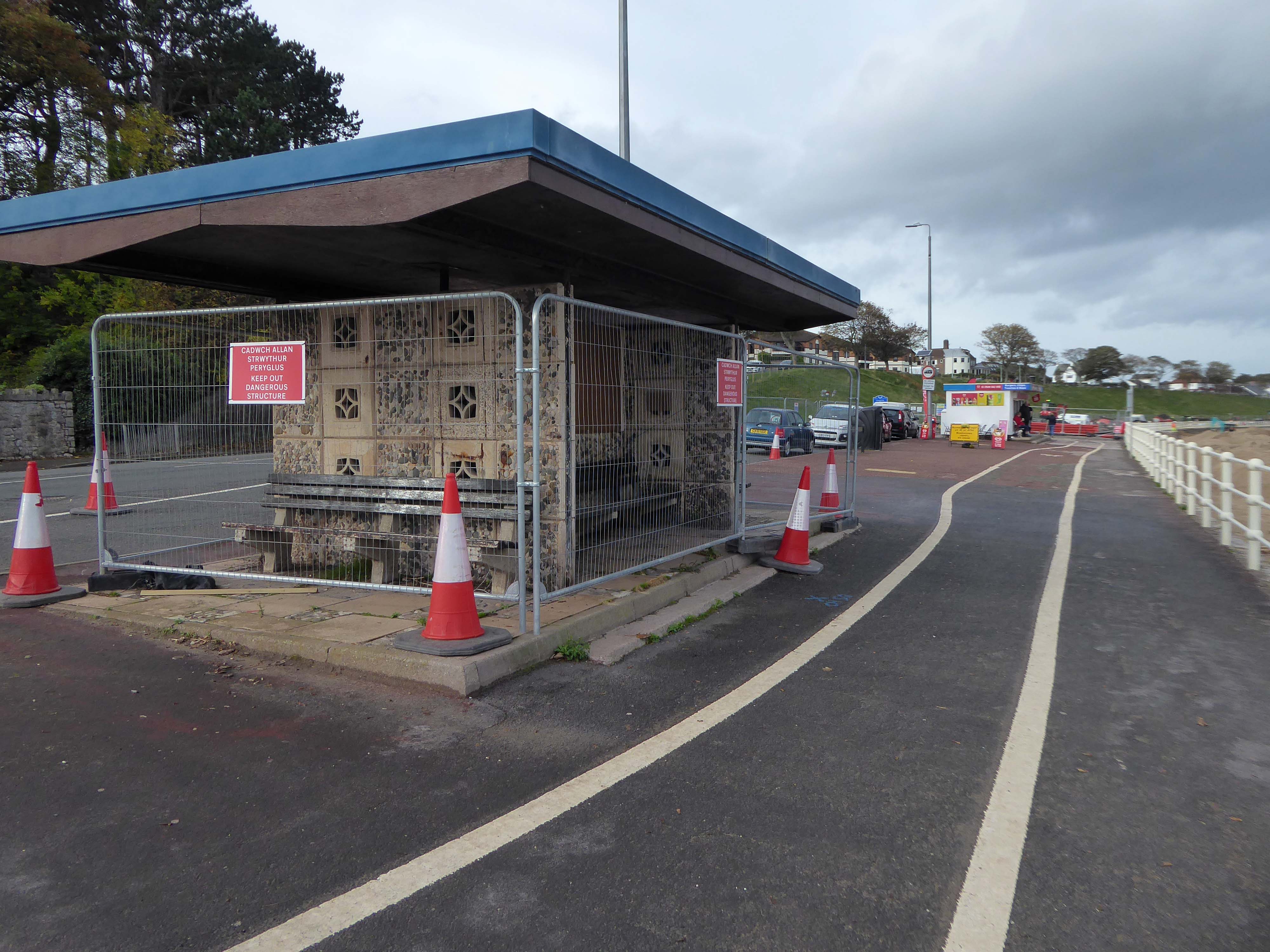 The last of the Rhos on Sea shelters is a dangerous customer suitably secured.