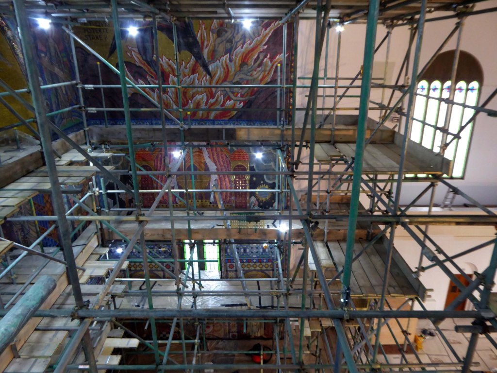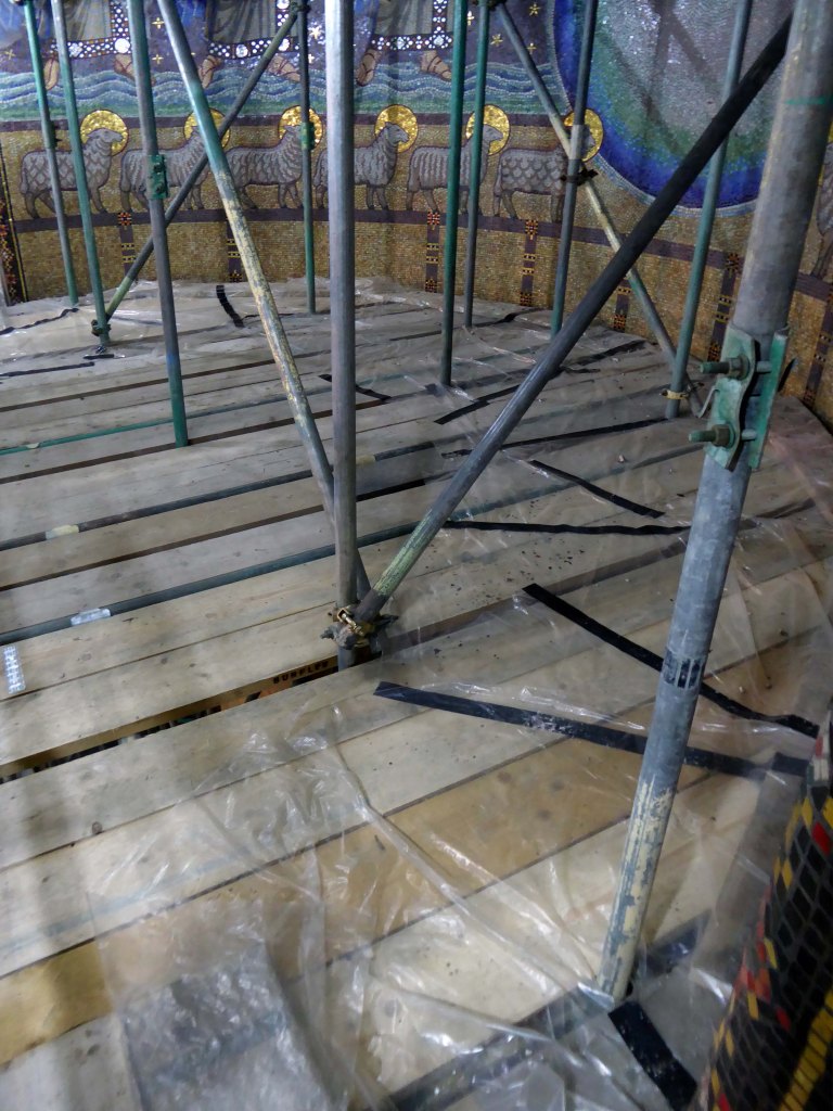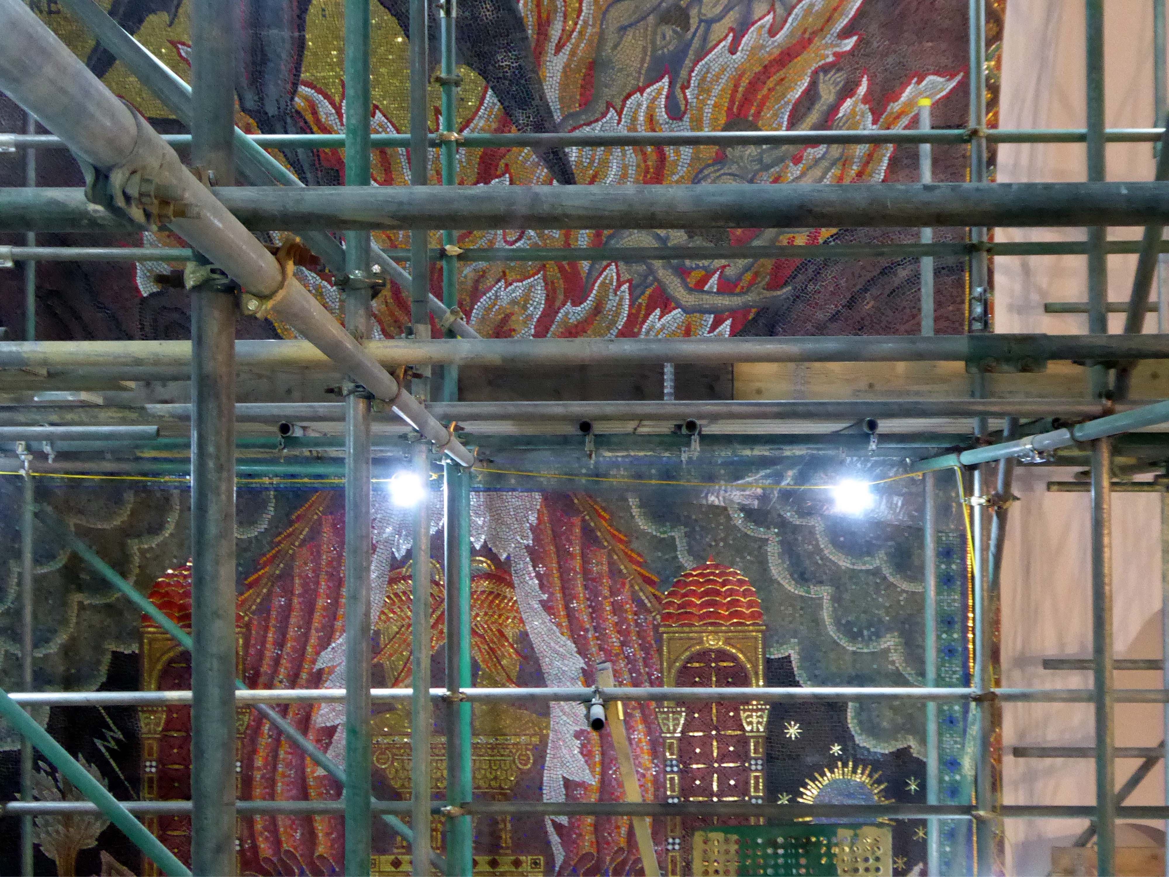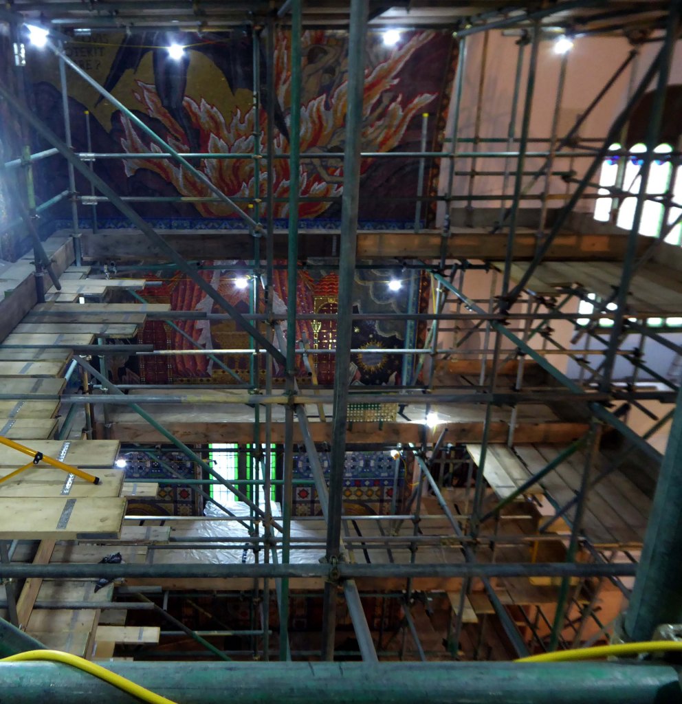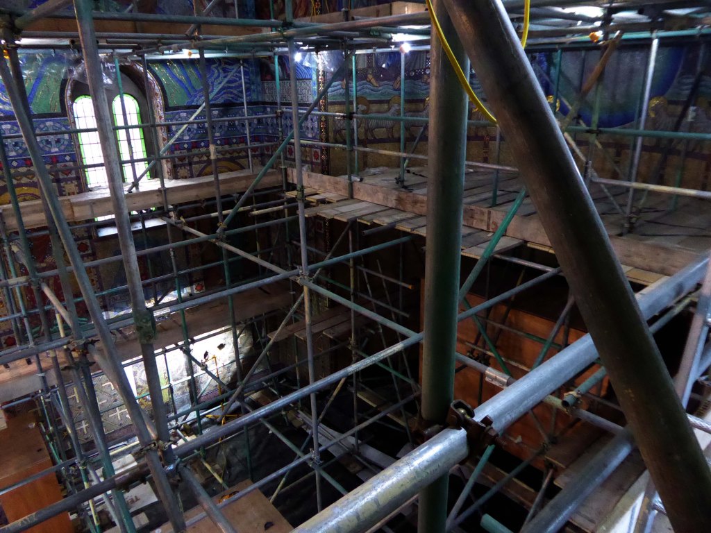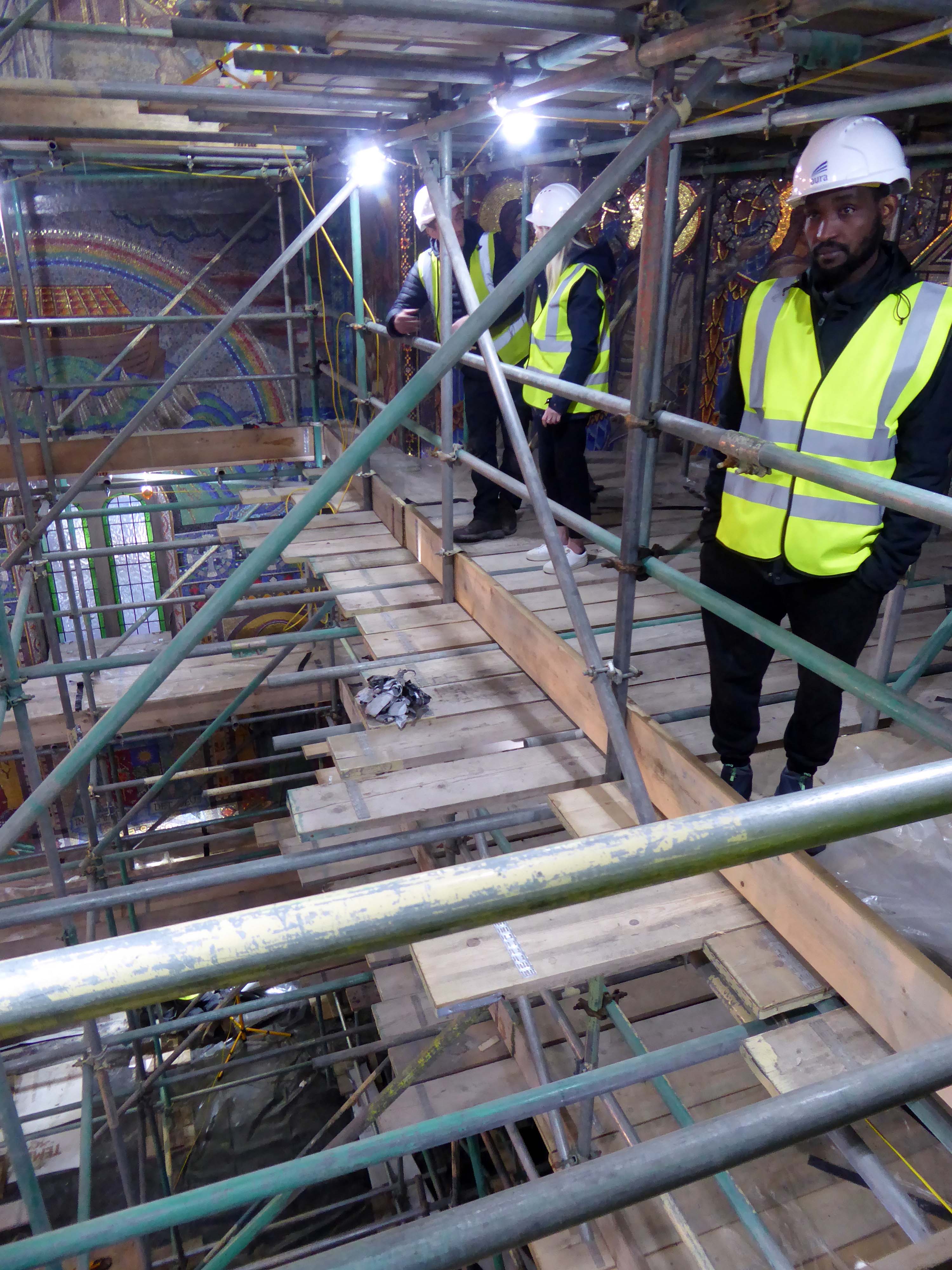 We were then privileged to ascend the vast scaffold, the better to inspect the work up close and personal.
