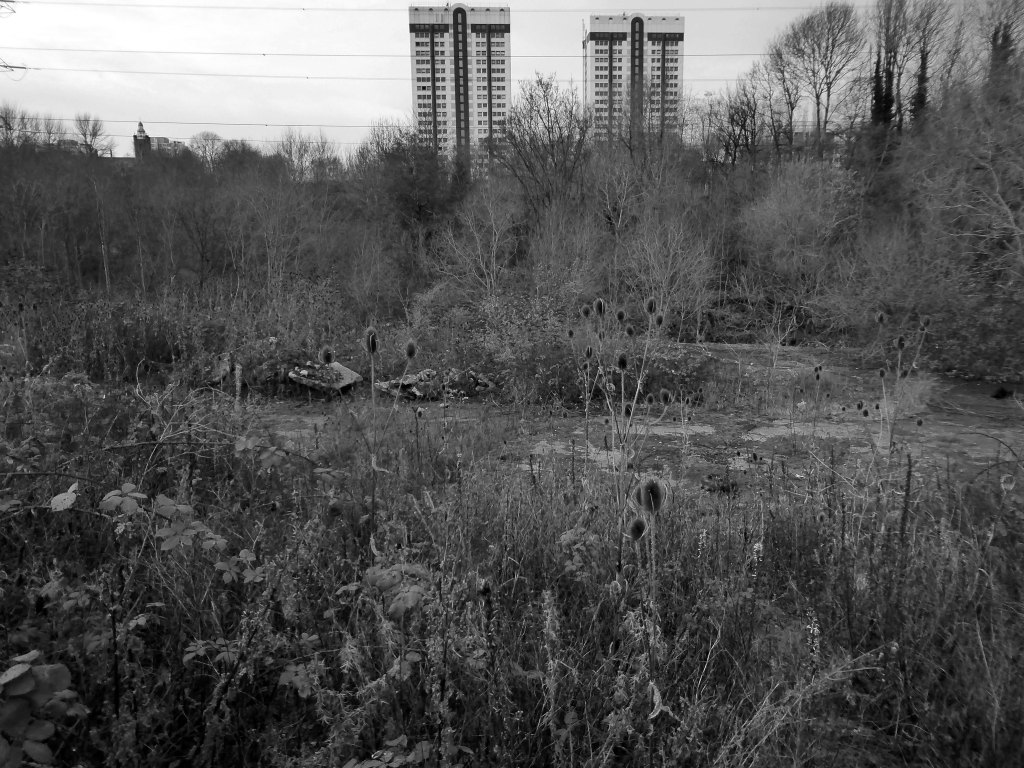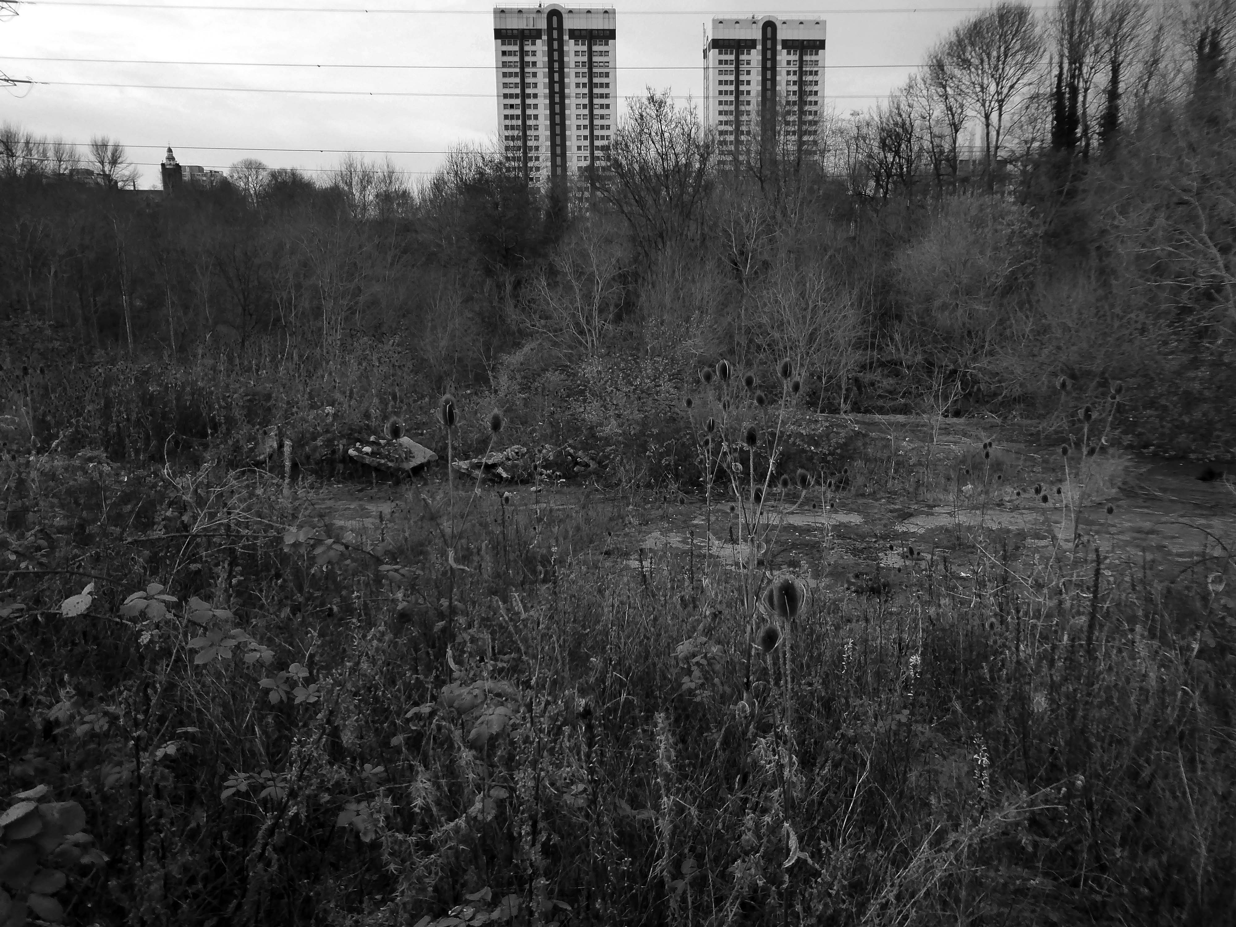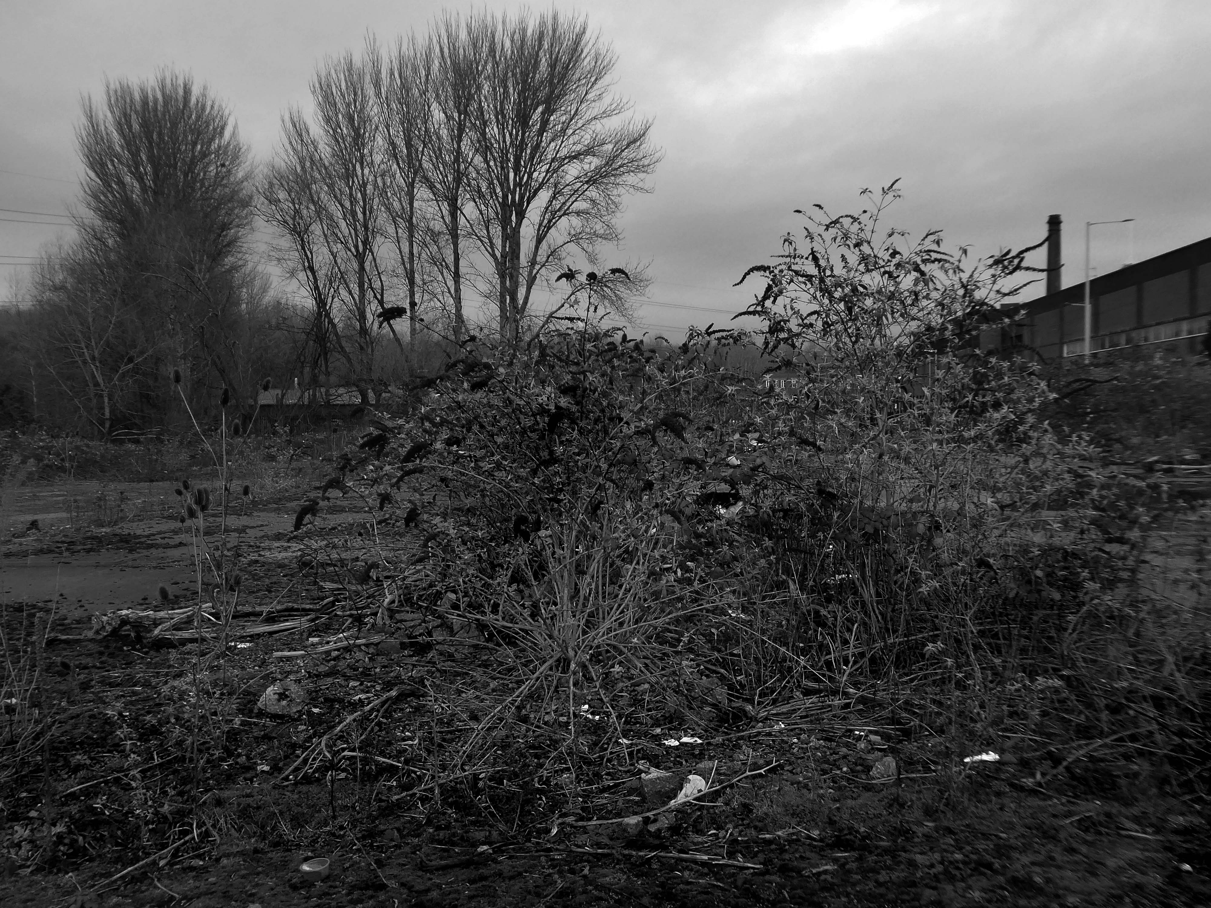 A desert of detritus, interpolated with tangles of brambles, seas of teasels and the ubiquitous buddleia.