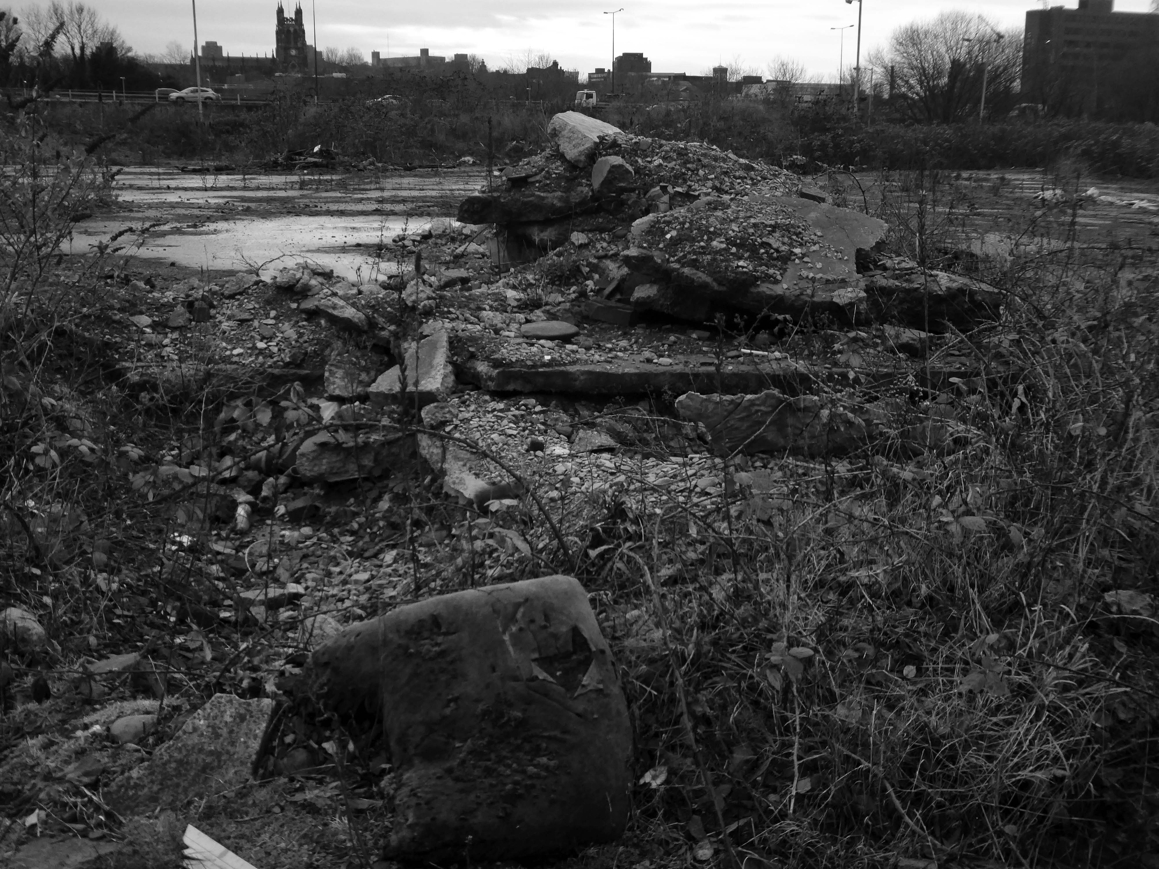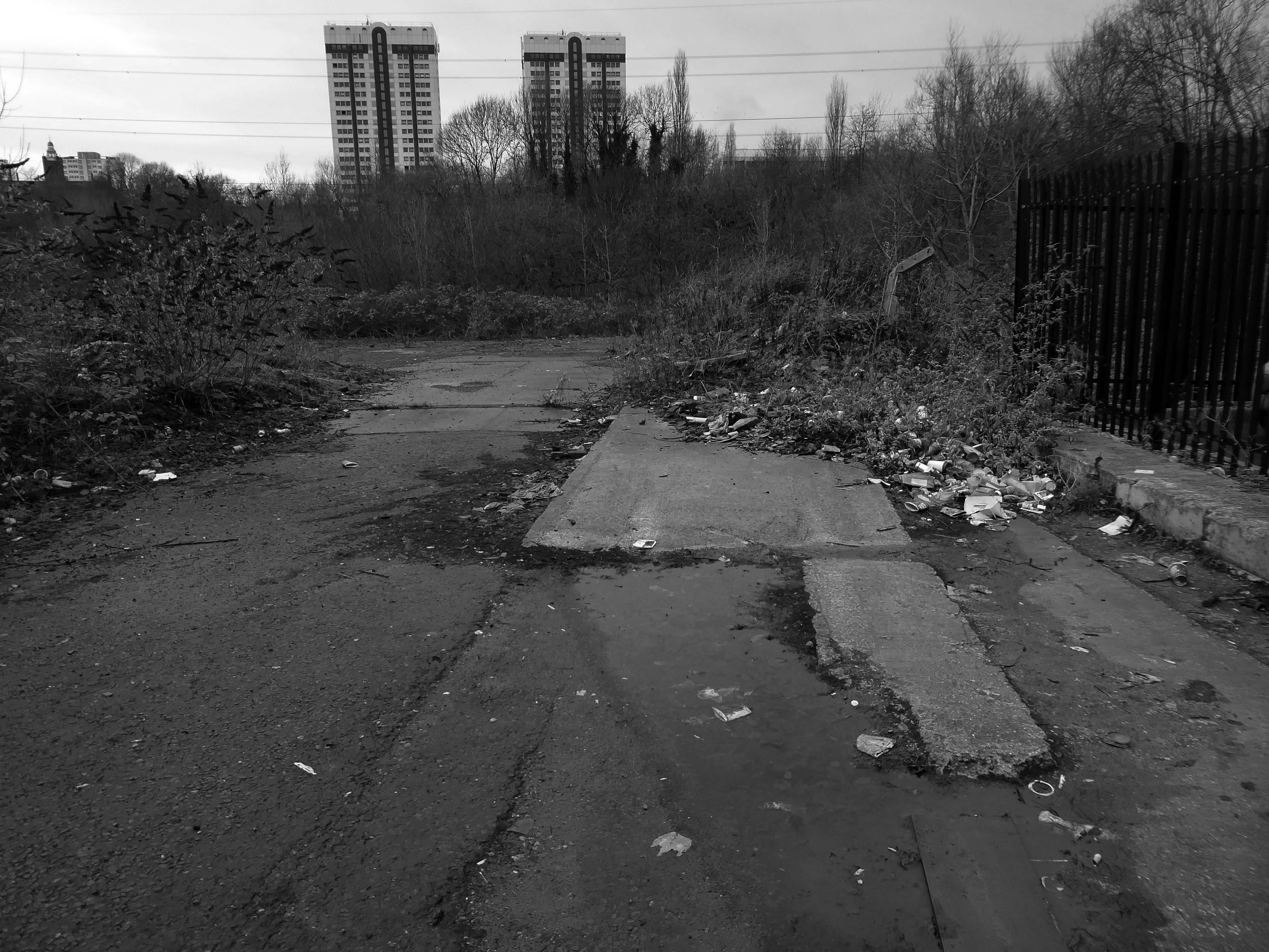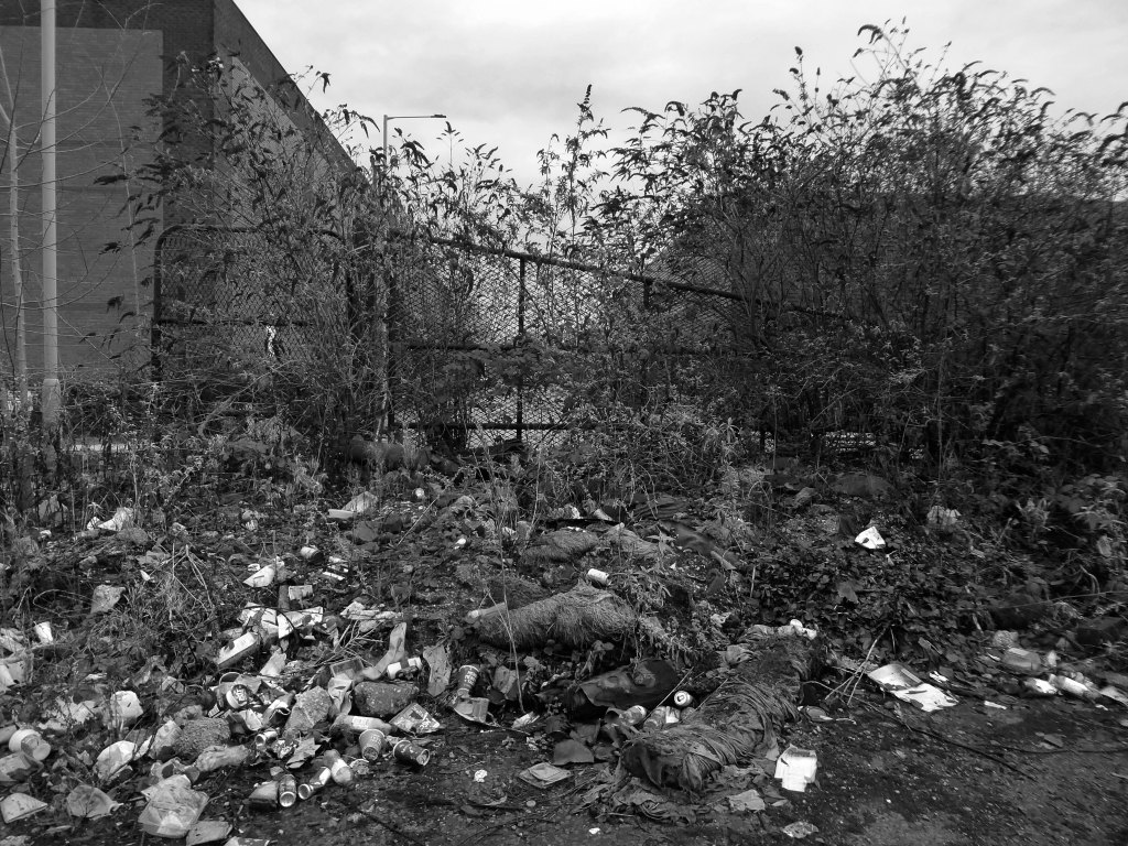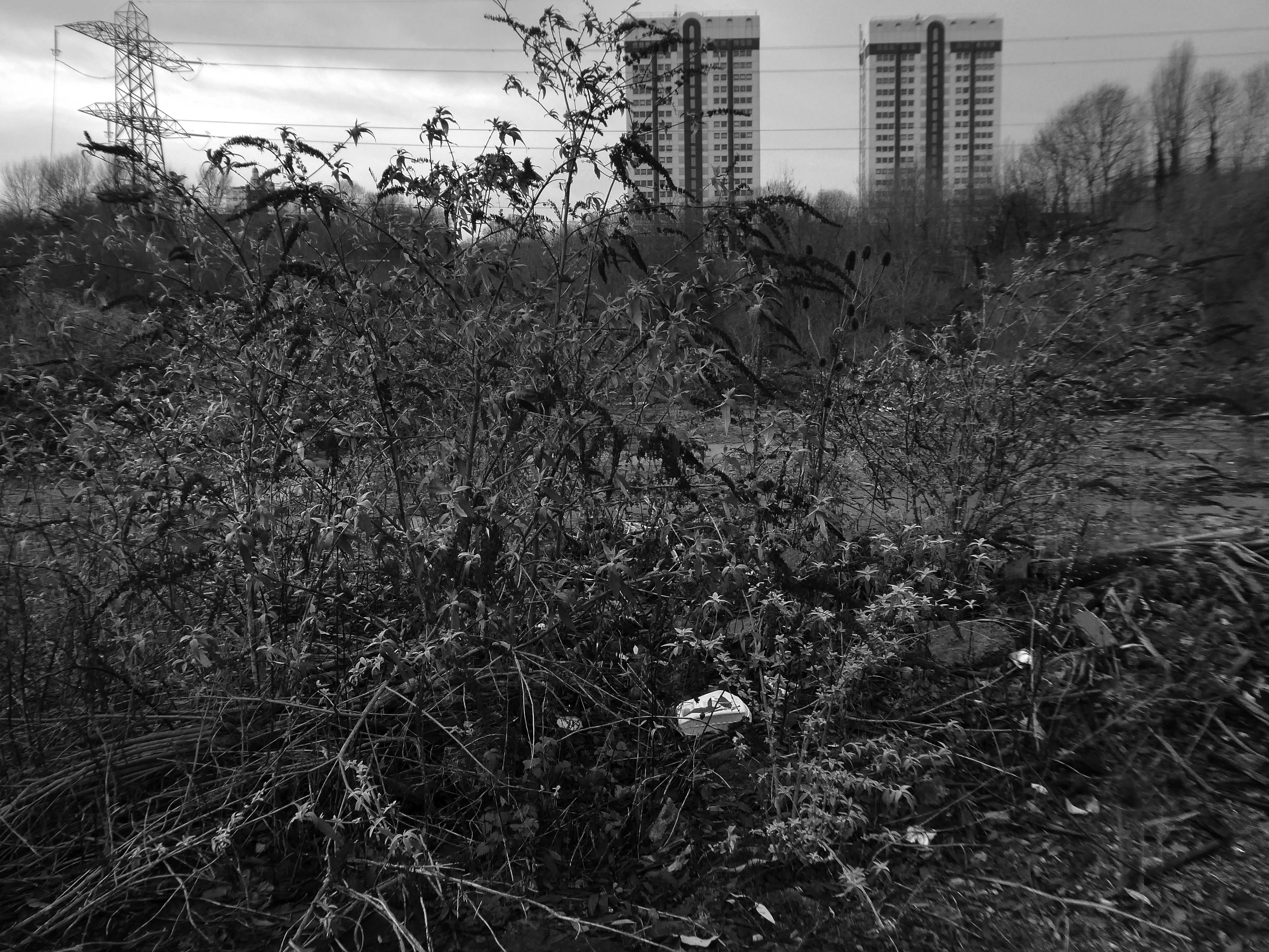 A desert of detritus, interpolated with tangles of brambles, seas of teasels and the ubiquitous buddleia.