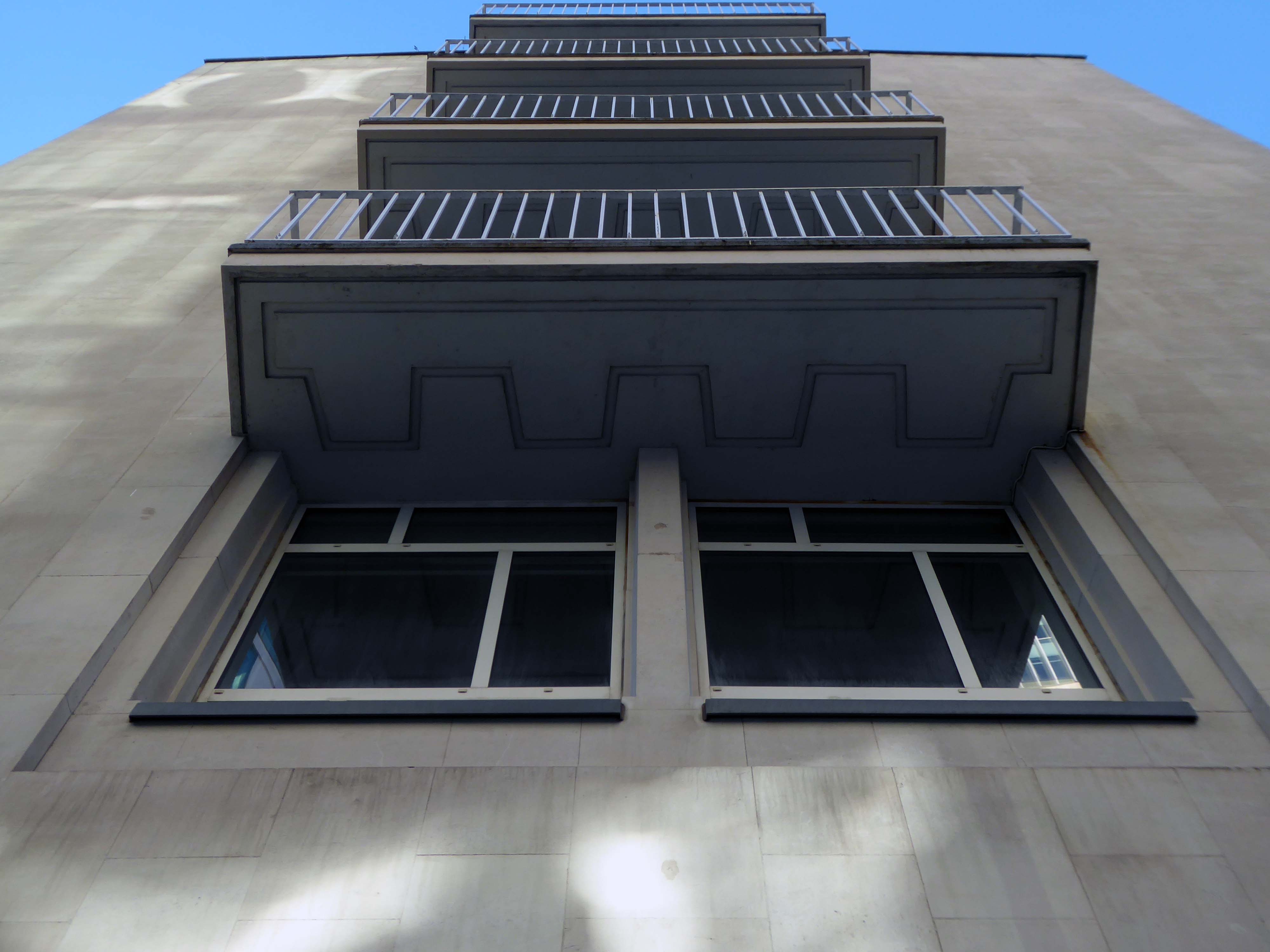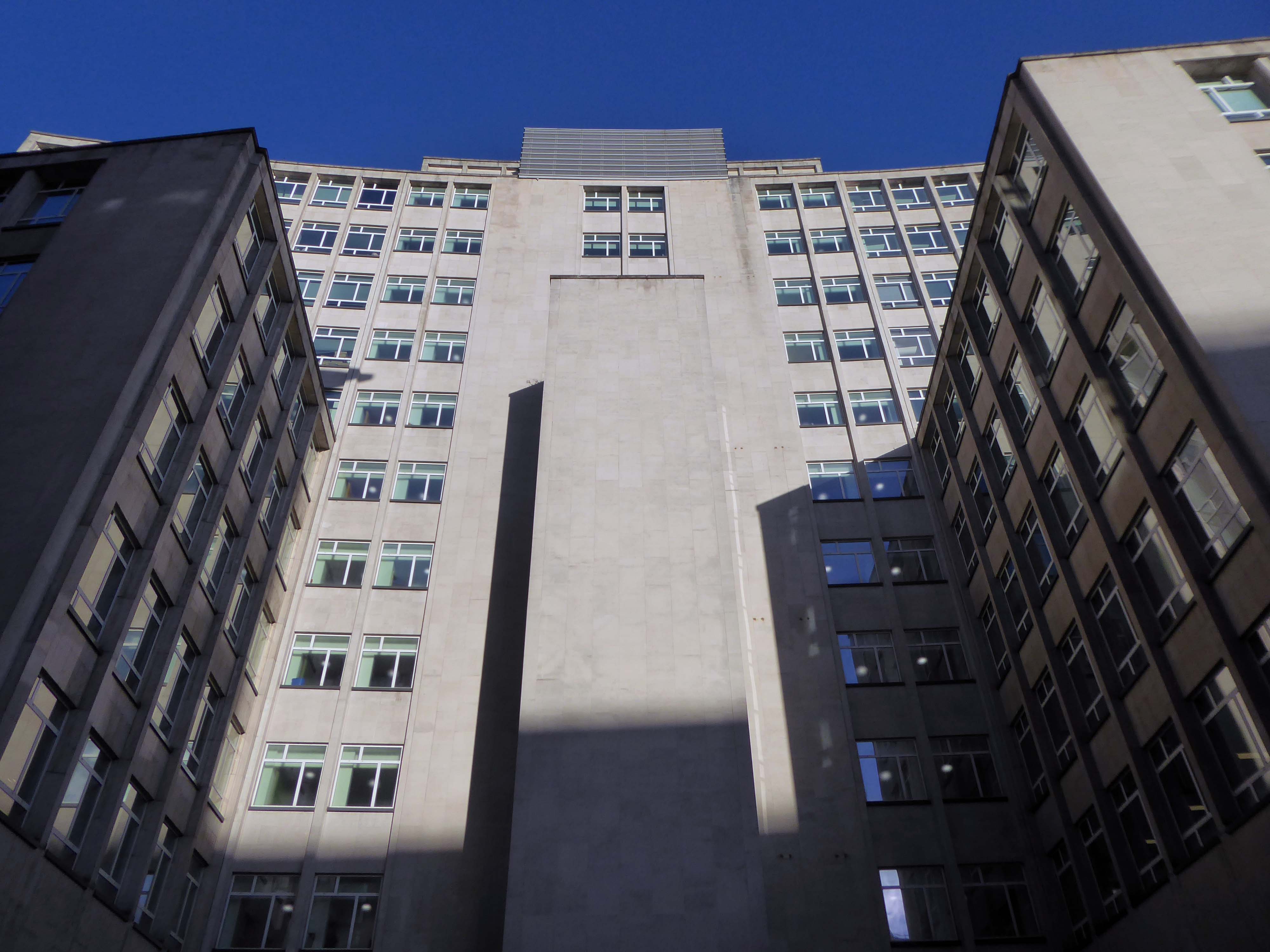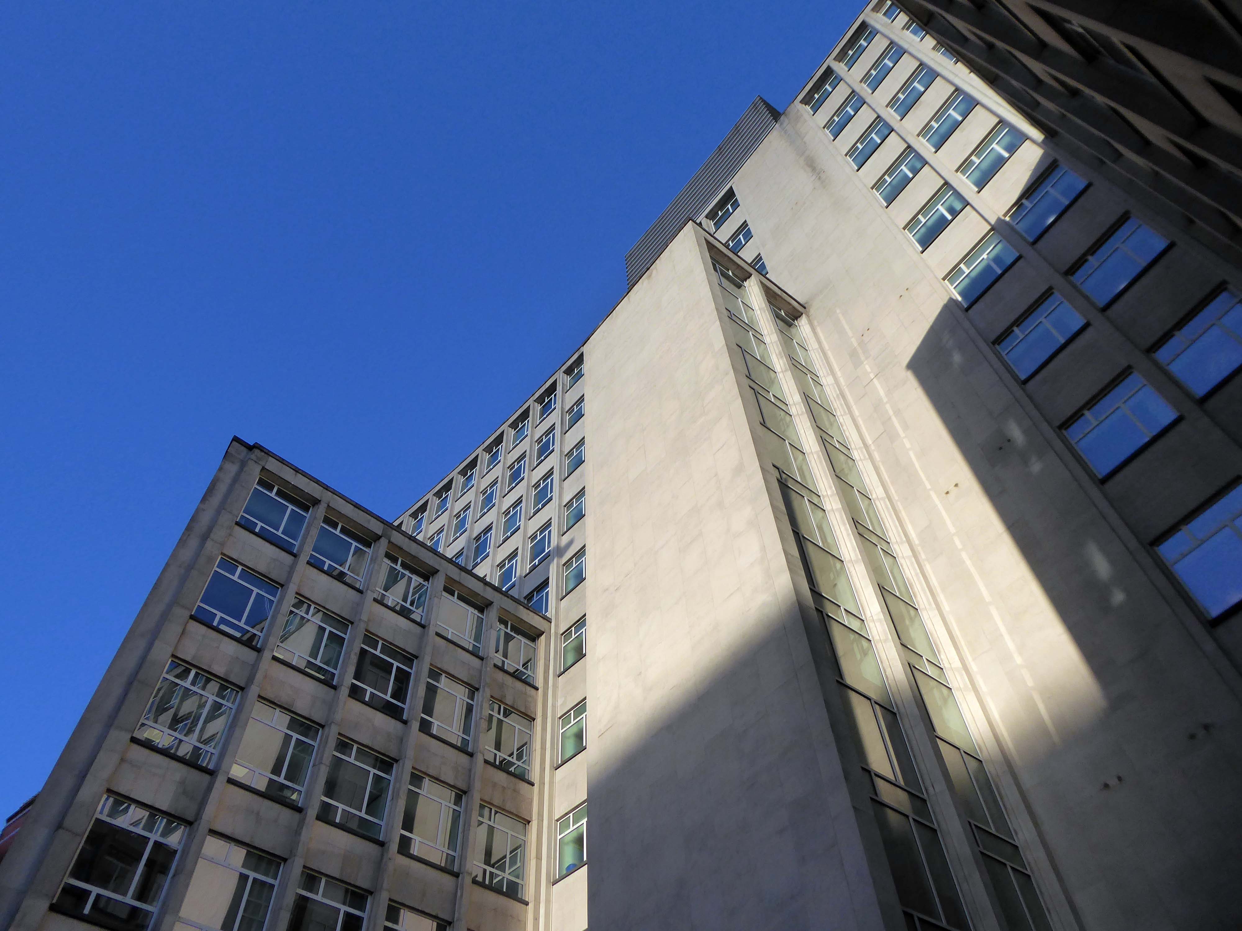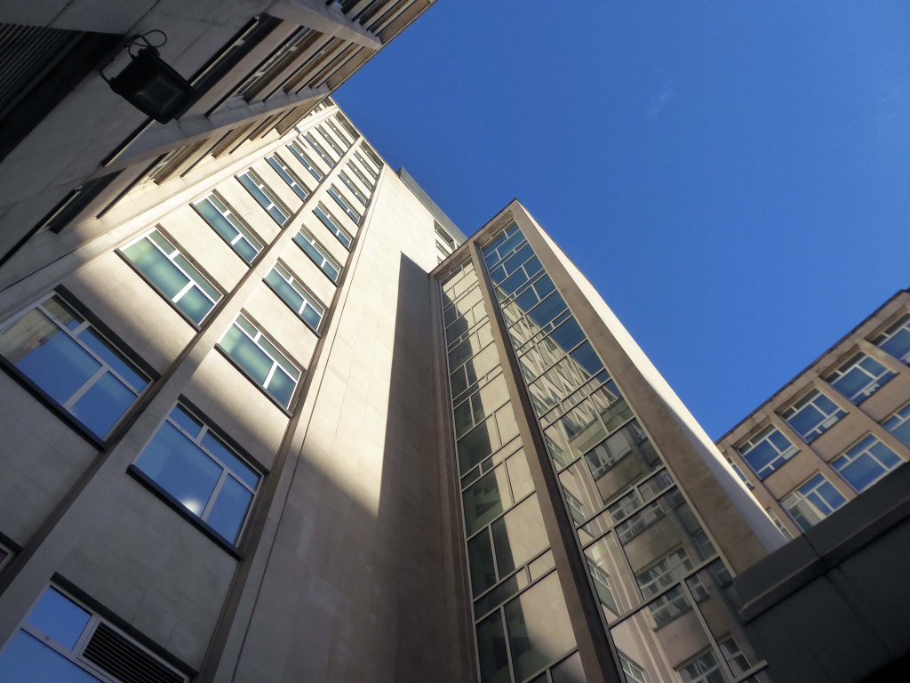 The stepped massing and the articulation of the wings of the building preclude the accepted commercial norm of developing to the edge of the site and instead promote a satisfying formal interplay between the six and eleven storey elements. The building has been sensitively modified despite a lack of any listed status and remains commercially viable as offices and as retail. The continued success may be attributed to the air of quality afforded by the stone, certainly it has ensured the longevity, particularly when one considers the fate that befell the easement hugging concrete of Elizabeth House – Cruickshank & Seward, 1971 across the road; it was demolished in 2012.