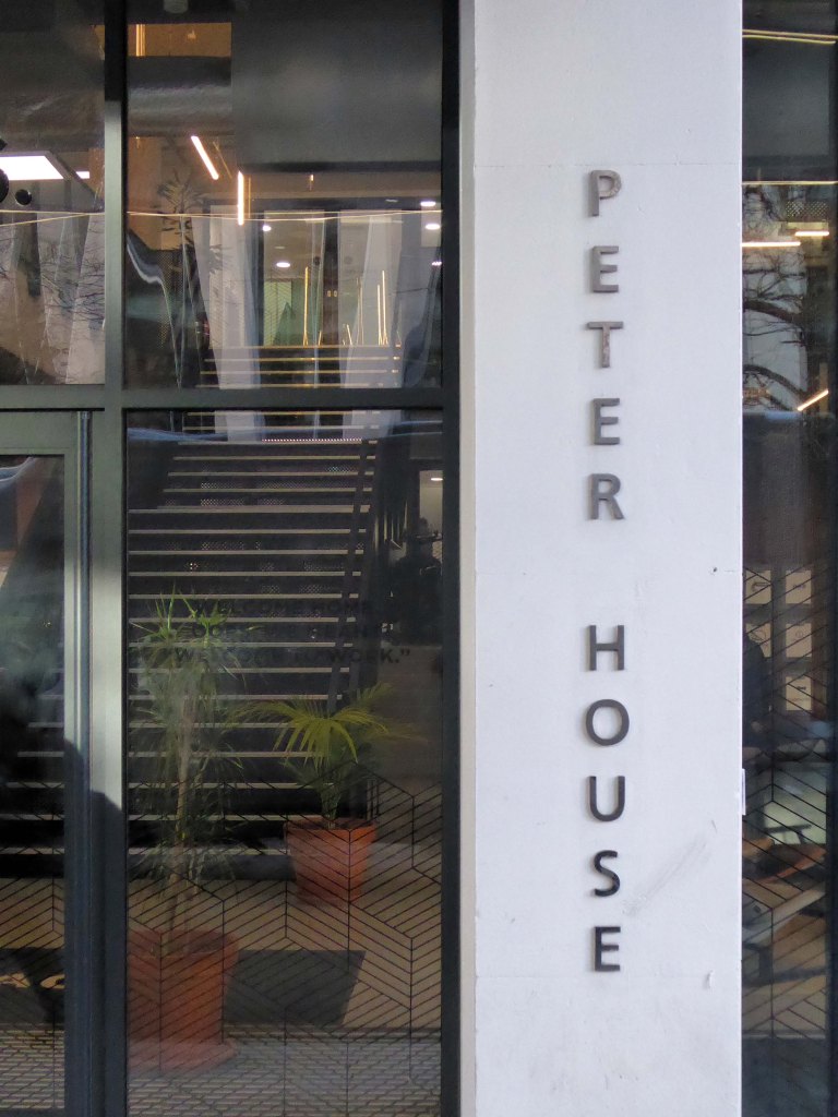 Peter House prevails a pale white Portland Stone embodiment of different days and different ways.
