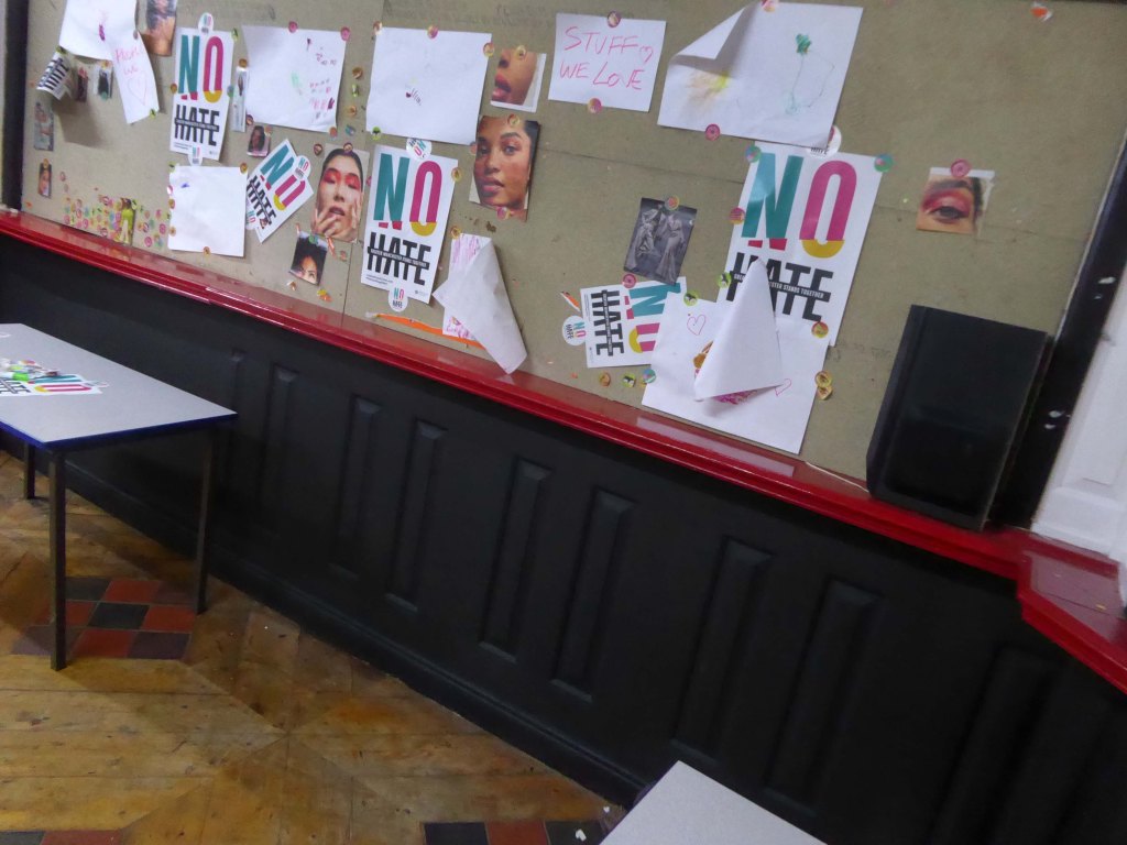 Work was underway for the current Art Show and evidence of the club’s affable affiliation with FC Unitedof Manchester, along with the results of the previous week’s art activities for the local youngsters.