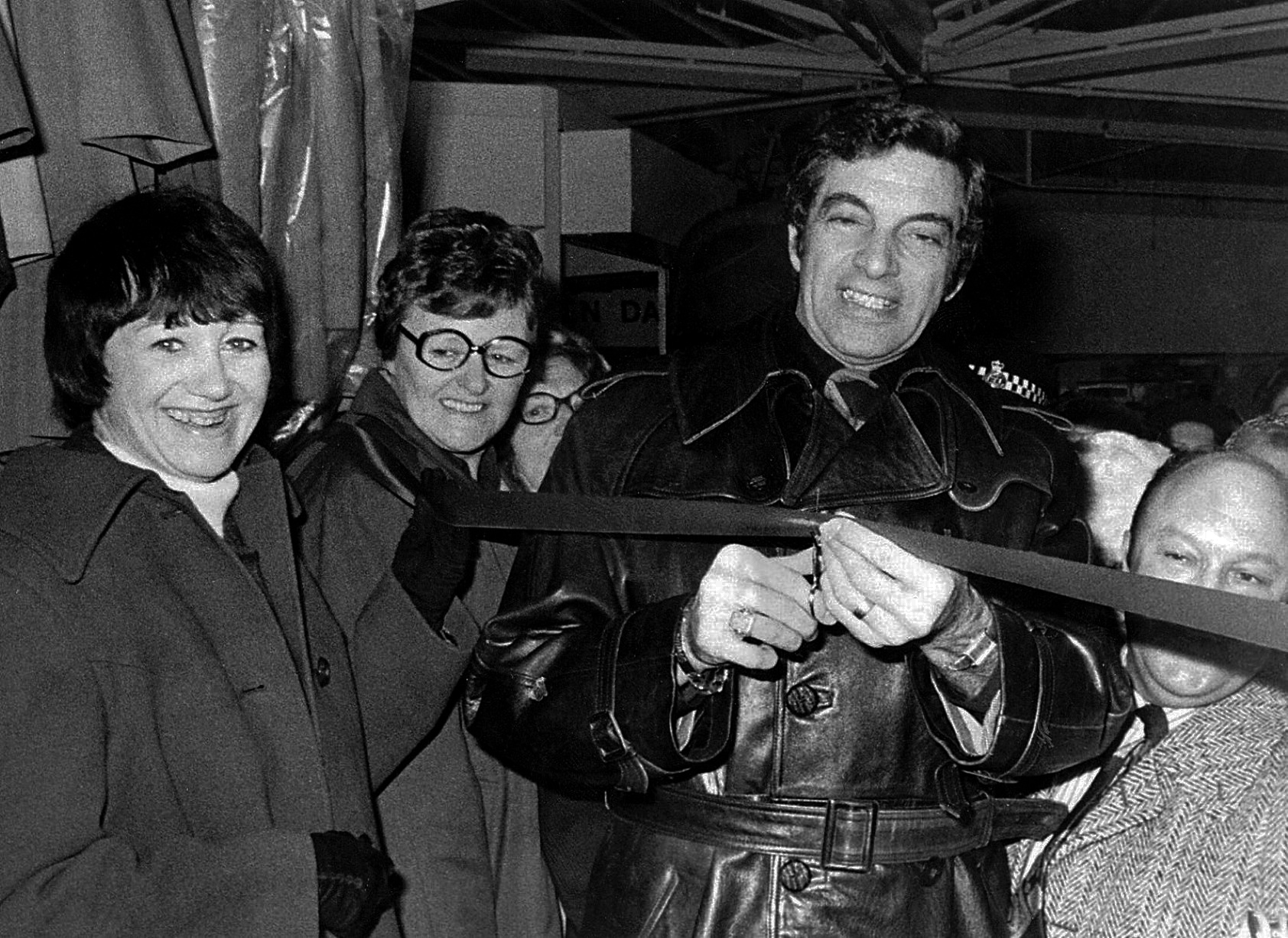 Singer Frankie Vaughan opens Jack’s Rainwear at the market in 1976.