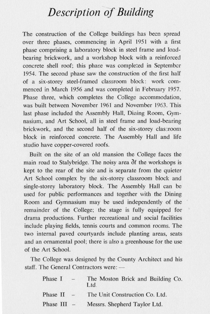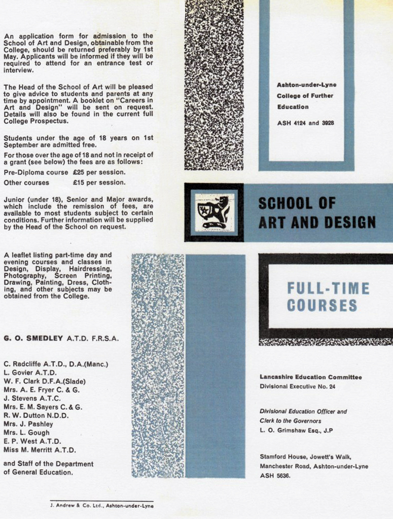 My local college was the then Ashton under Lyne College of Further Education – the full-time mode of study was then a two year Pre-Diploma Course.