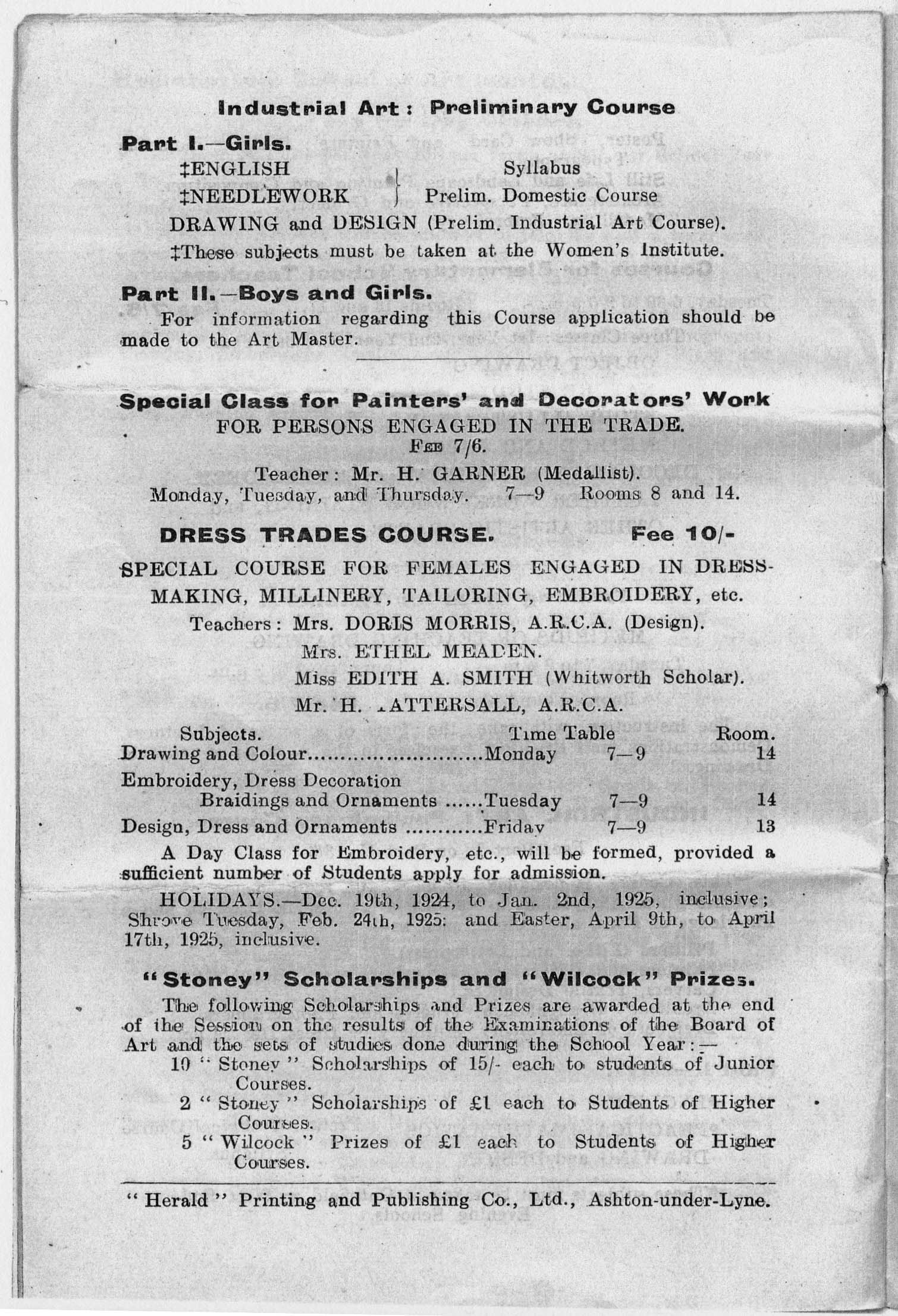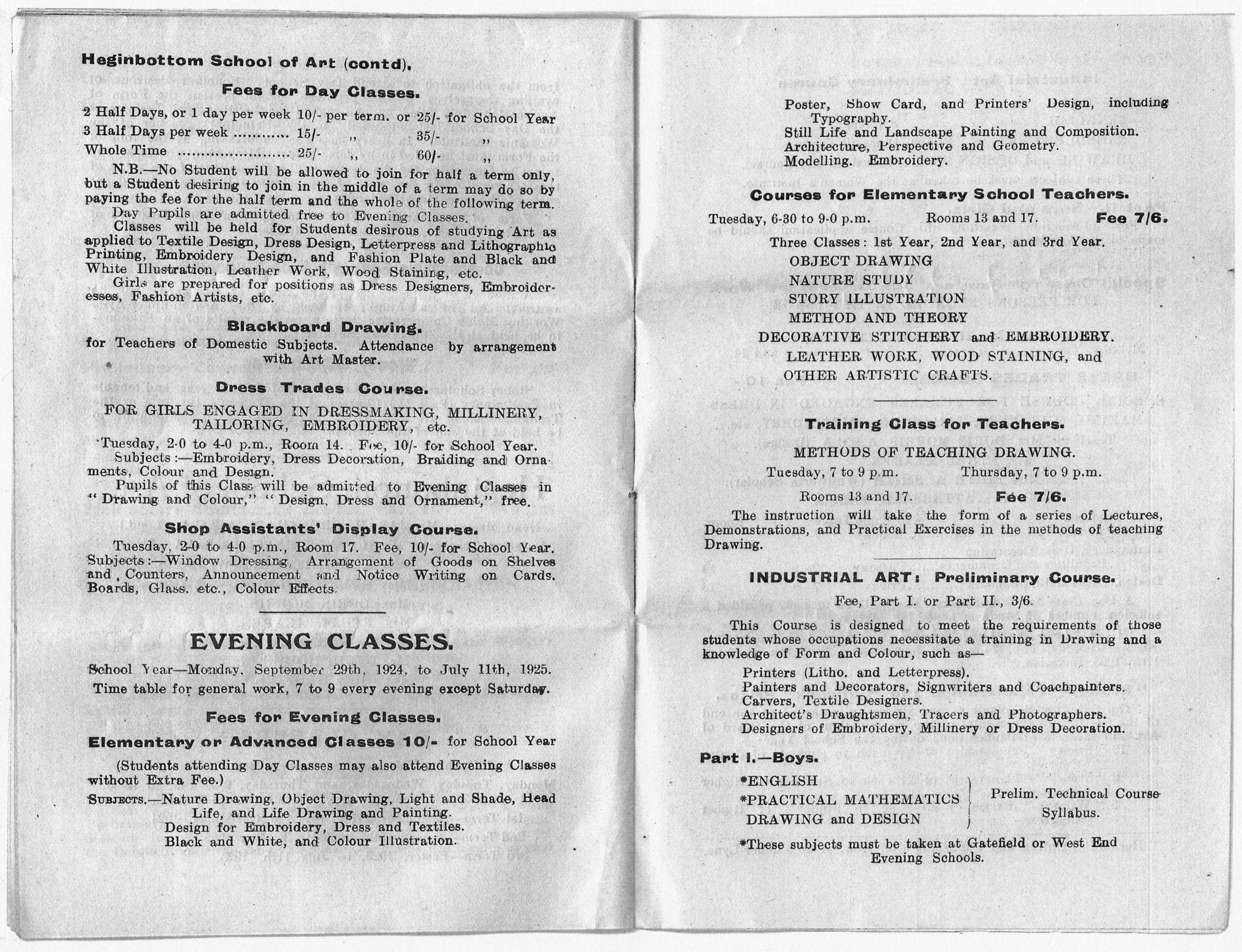 This is the syllabus of 1924-25 – courses take place in evening as students would have been working during the day.