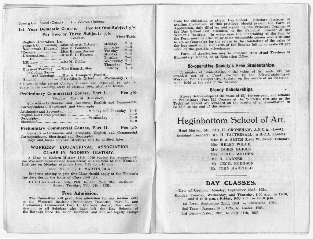 It had begun life as the Heginbottom School of Art based at – Heginbottom Technical Schools School of Art and Free Library Old Street Ashton-under-Lyne.