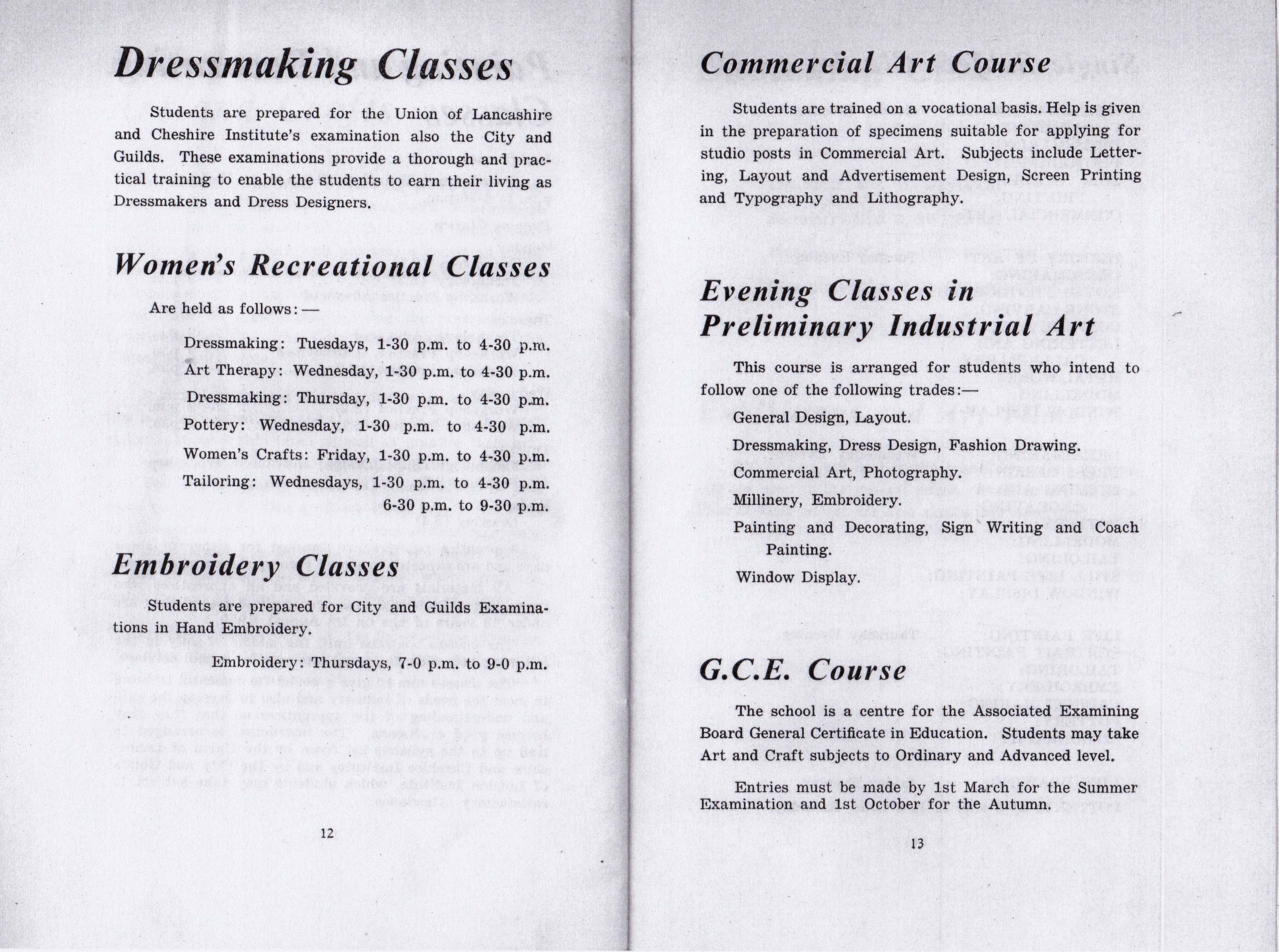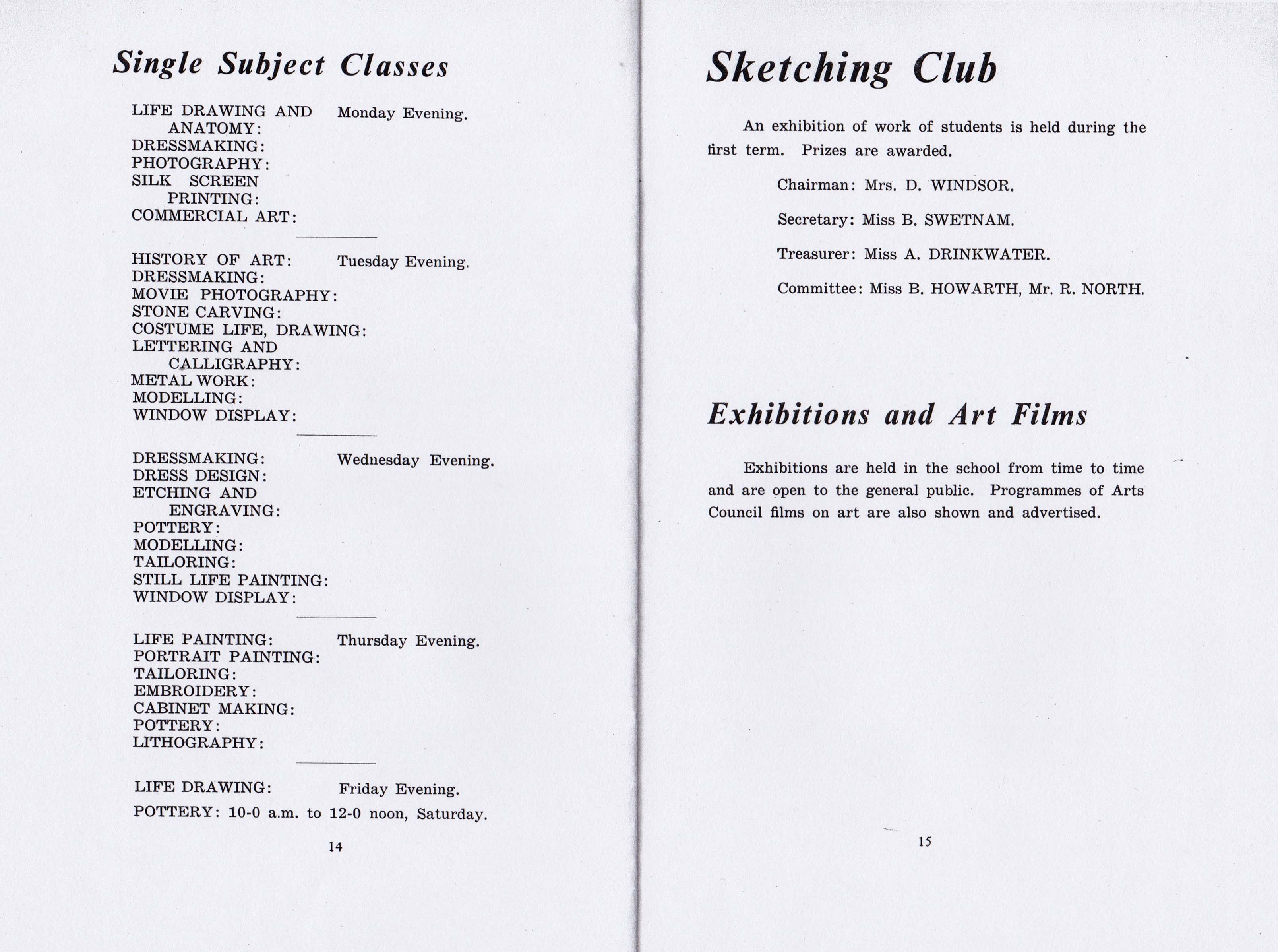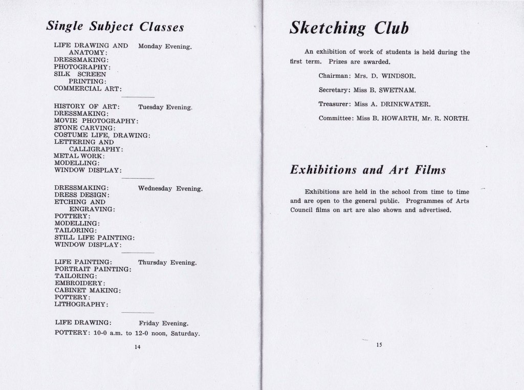 An astounding range of skills were available on a part time evening basis, opening up vocational or non-vocational options.