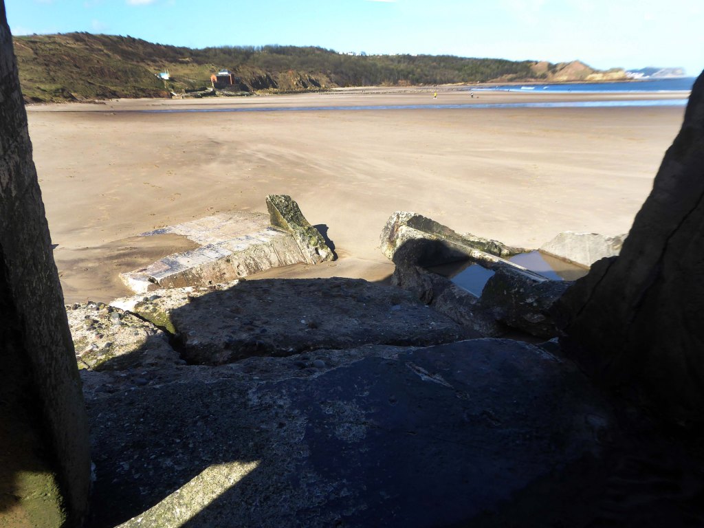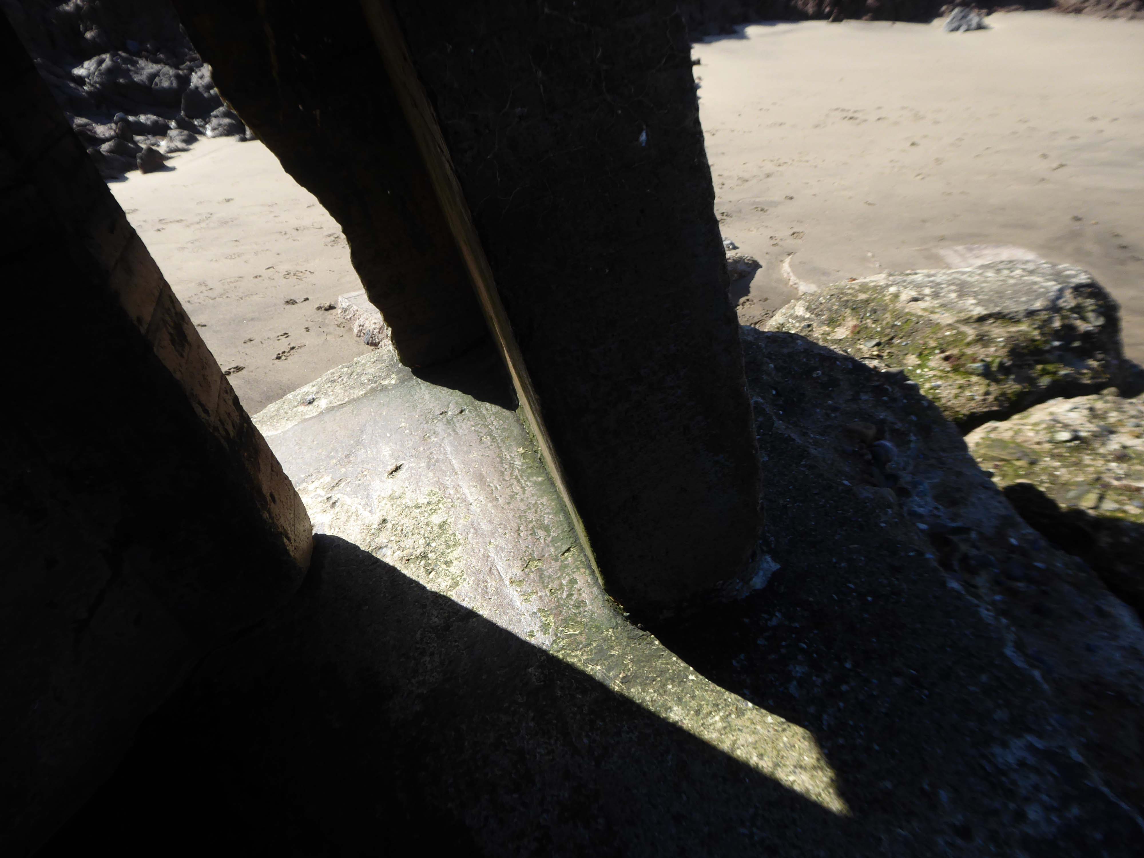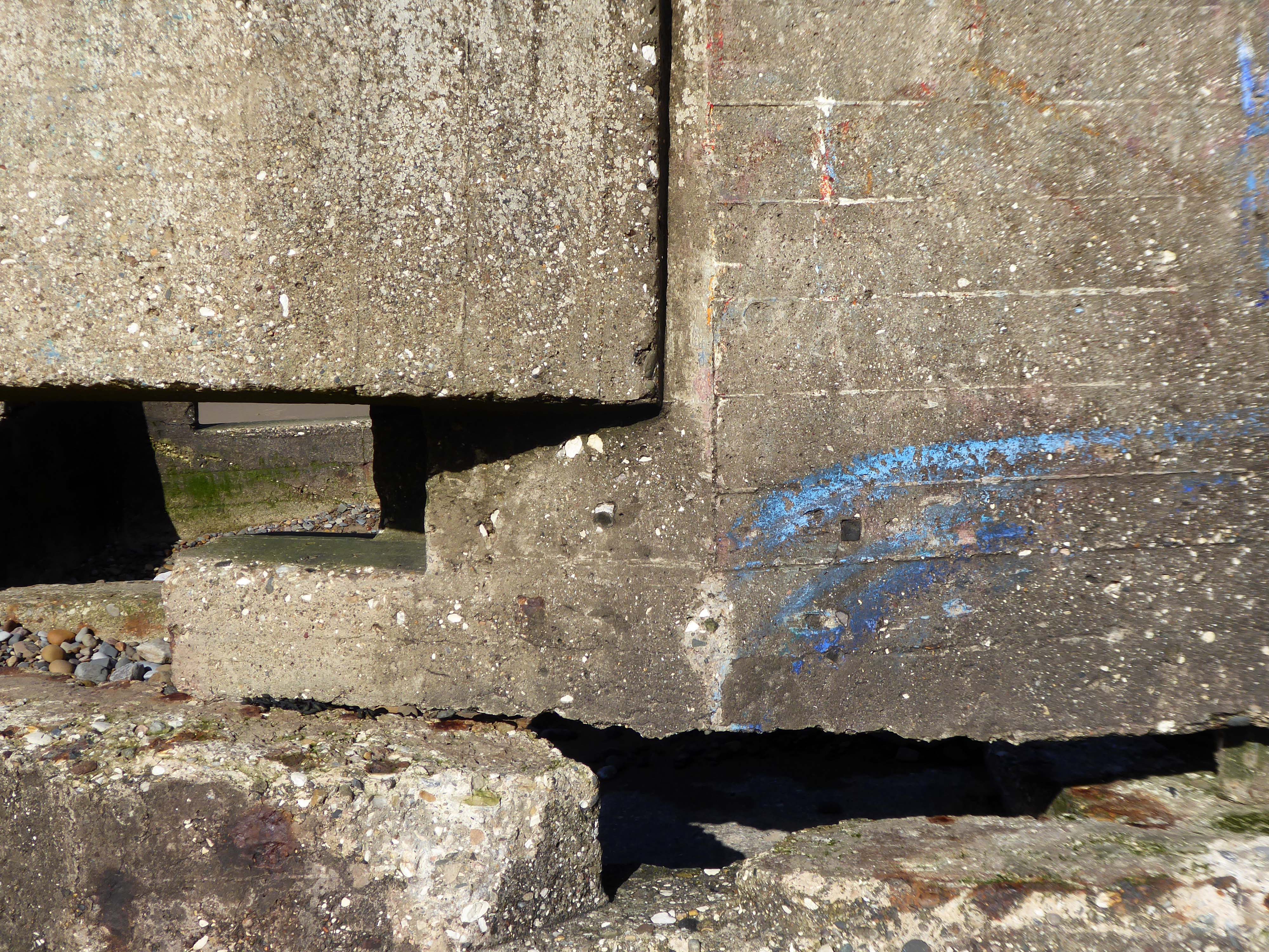 The pillbox – one of many built along the coast to defend against an invasion during World War II – had started to break down, leaving one large piece of stone in a precarious position.