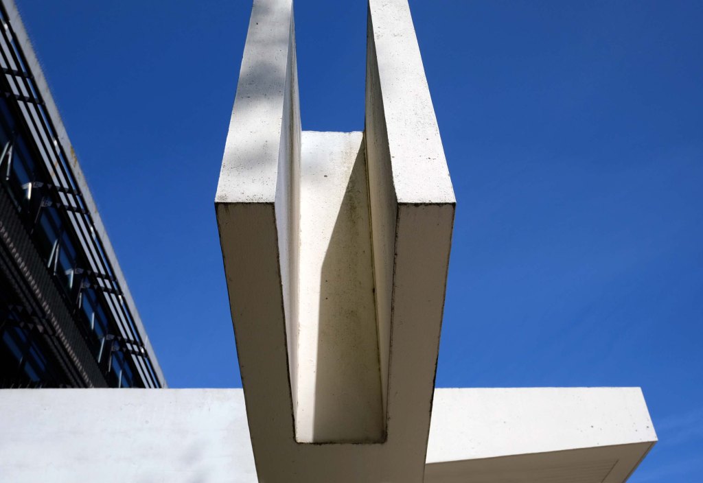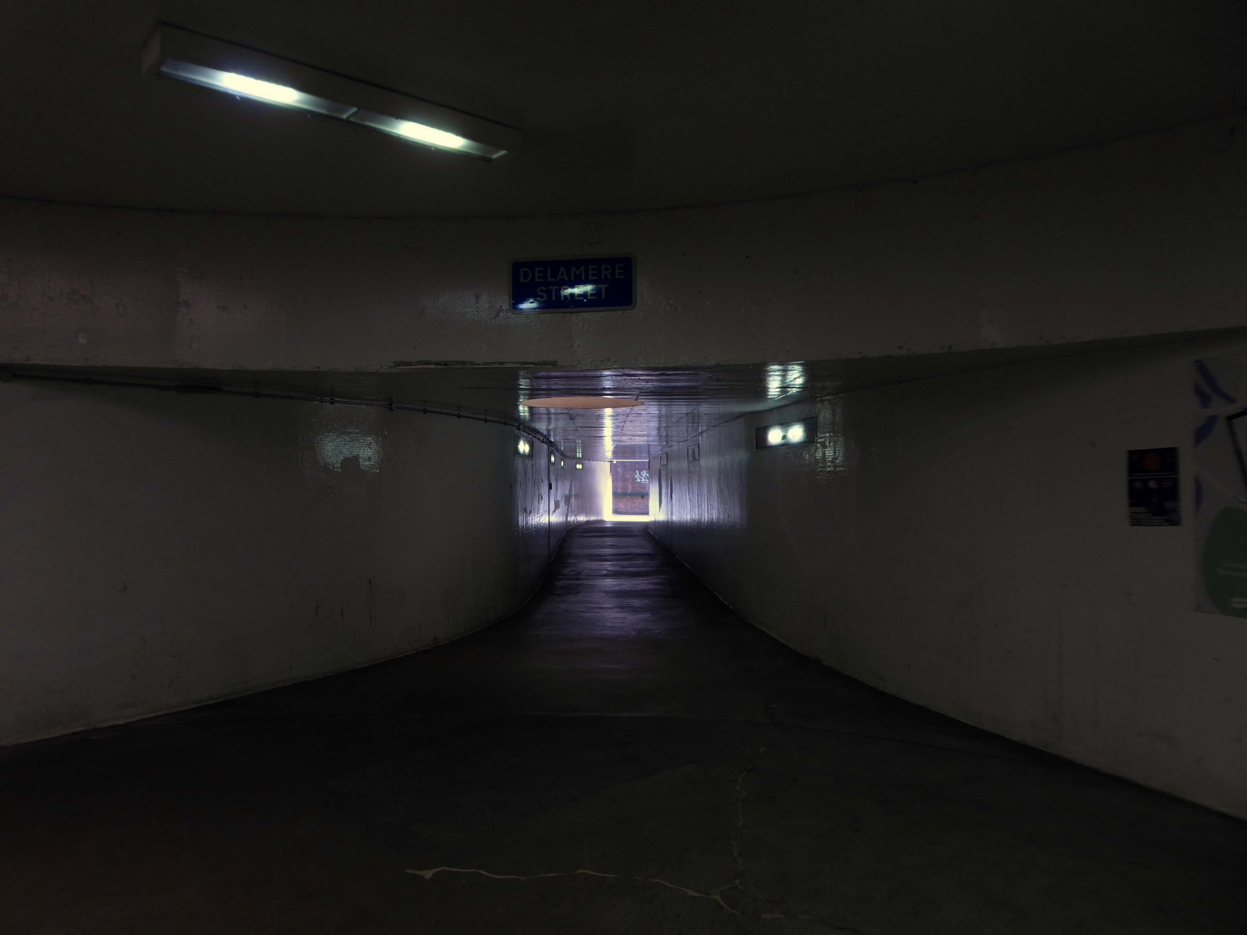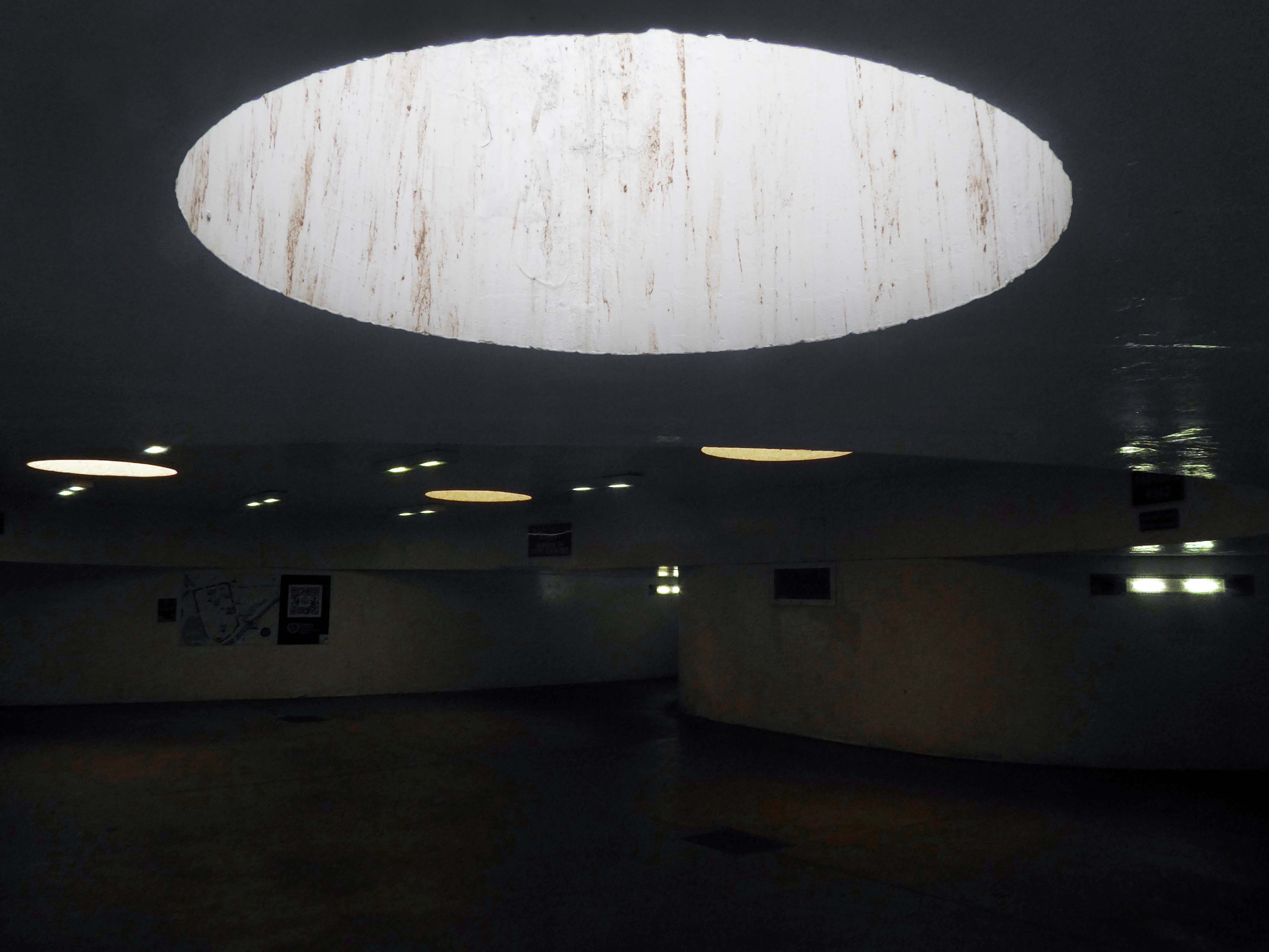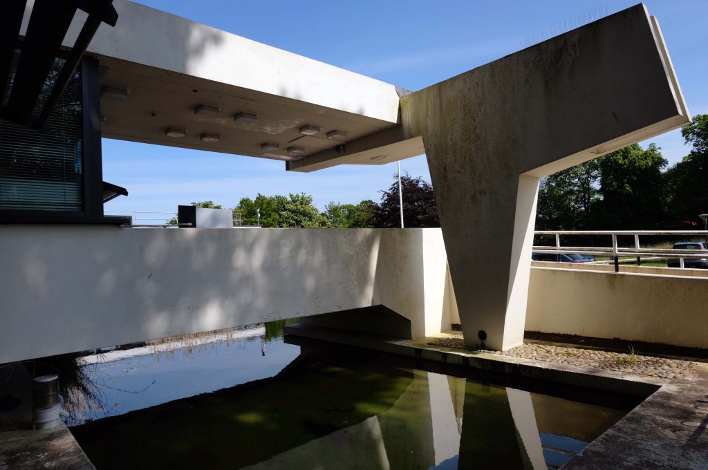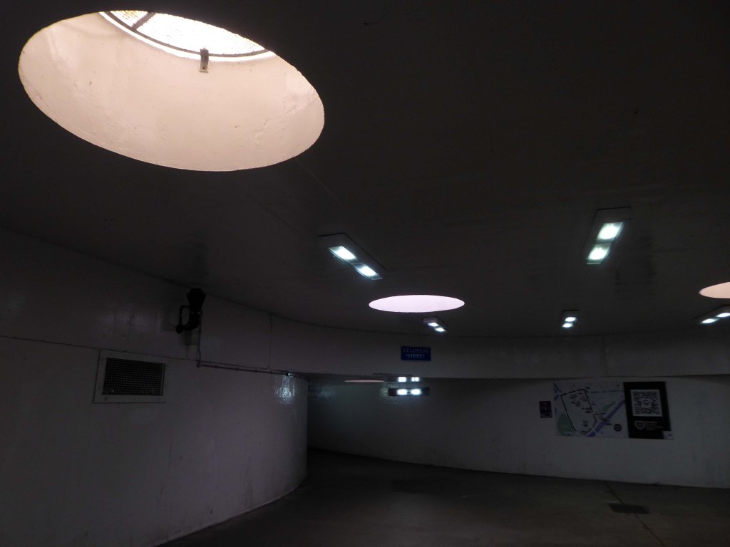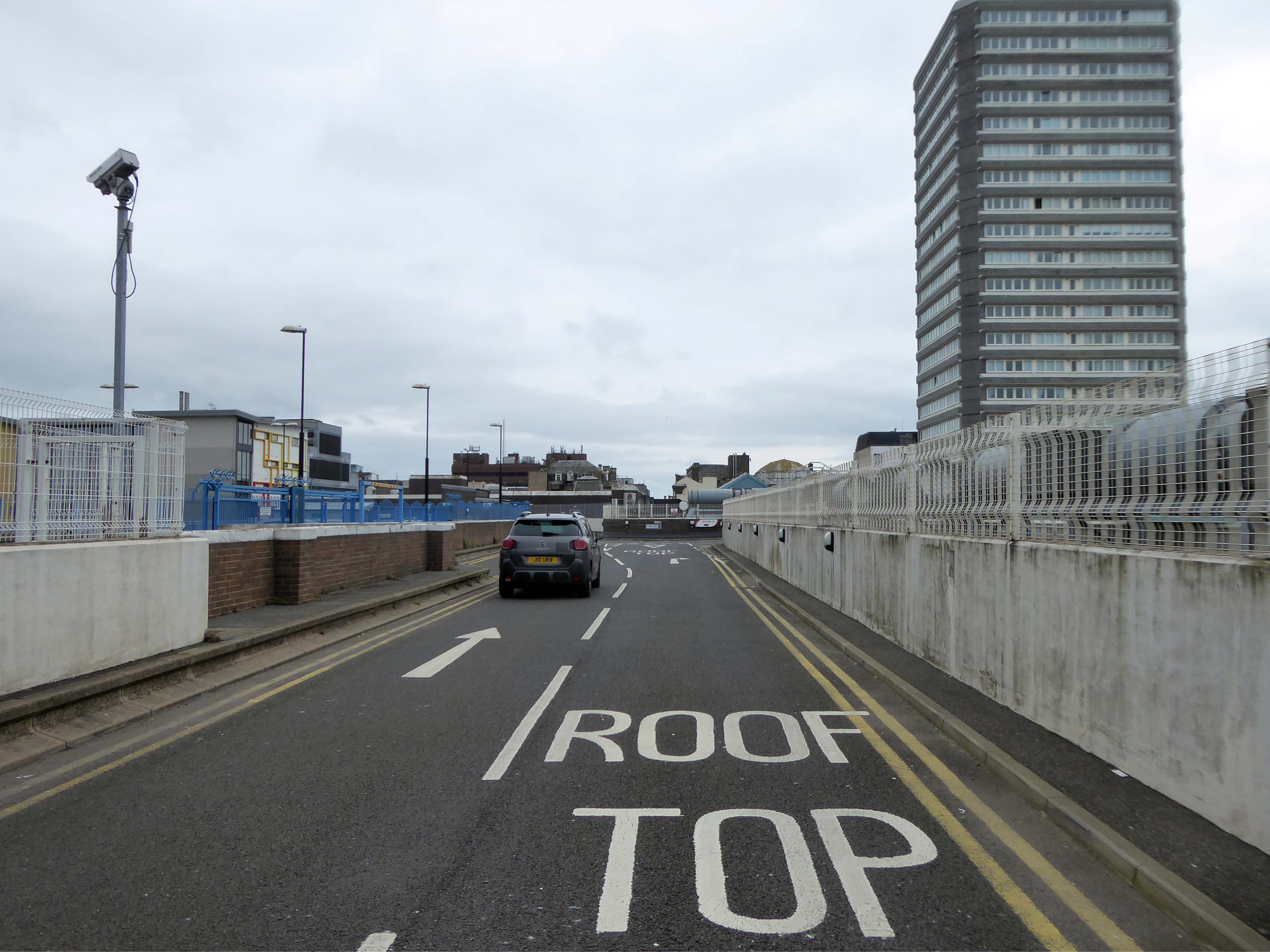 Only one phase of the futuristic road was ever built, but what exists is a partially grade-separated dual carriageway that runs through deep trenches and over tall viaducts close to the heart of the town. At its eastern end is a truly byzantine piece of traffic engineering that stretches the definition of a roundabout to its limit.