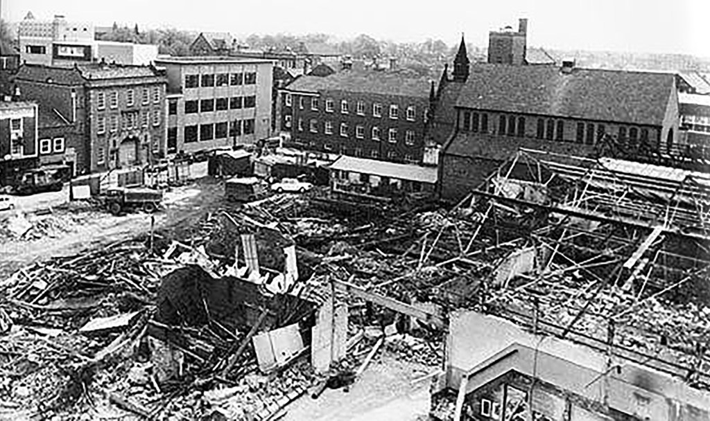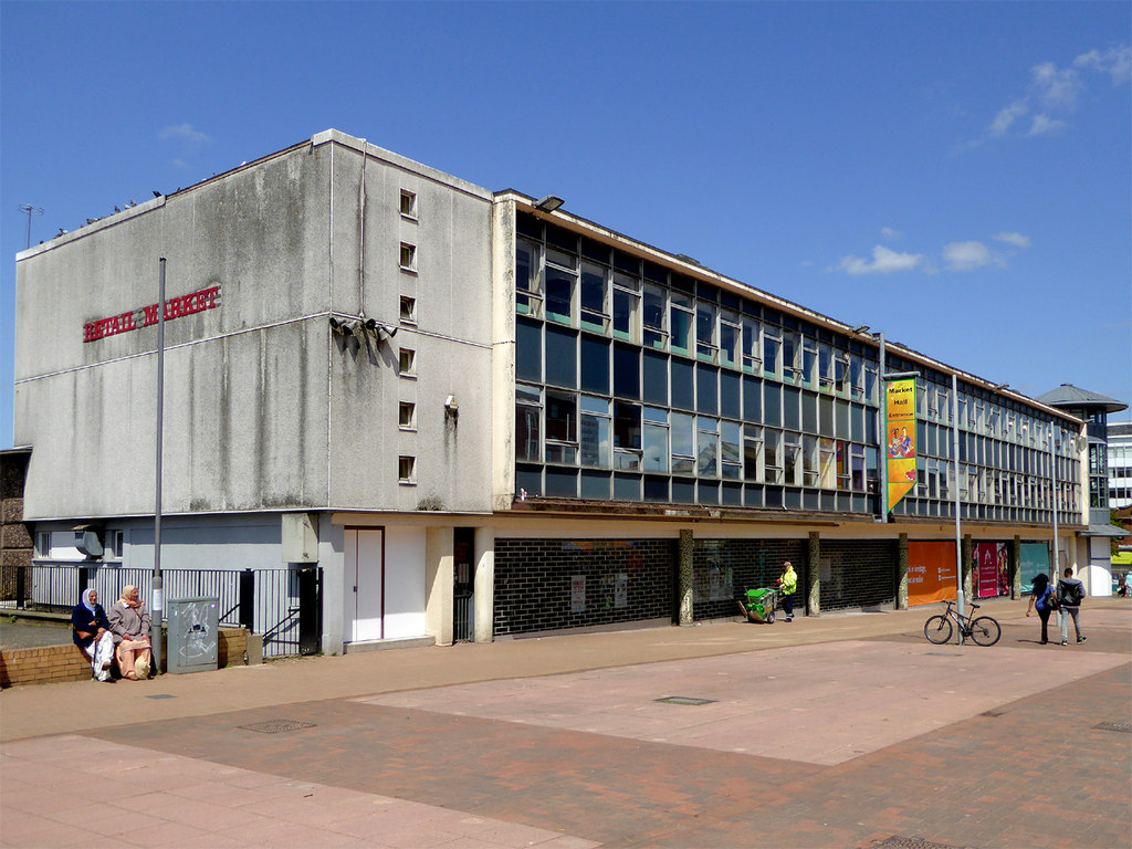 Retail Market – Late 1950s market hall and offices above.