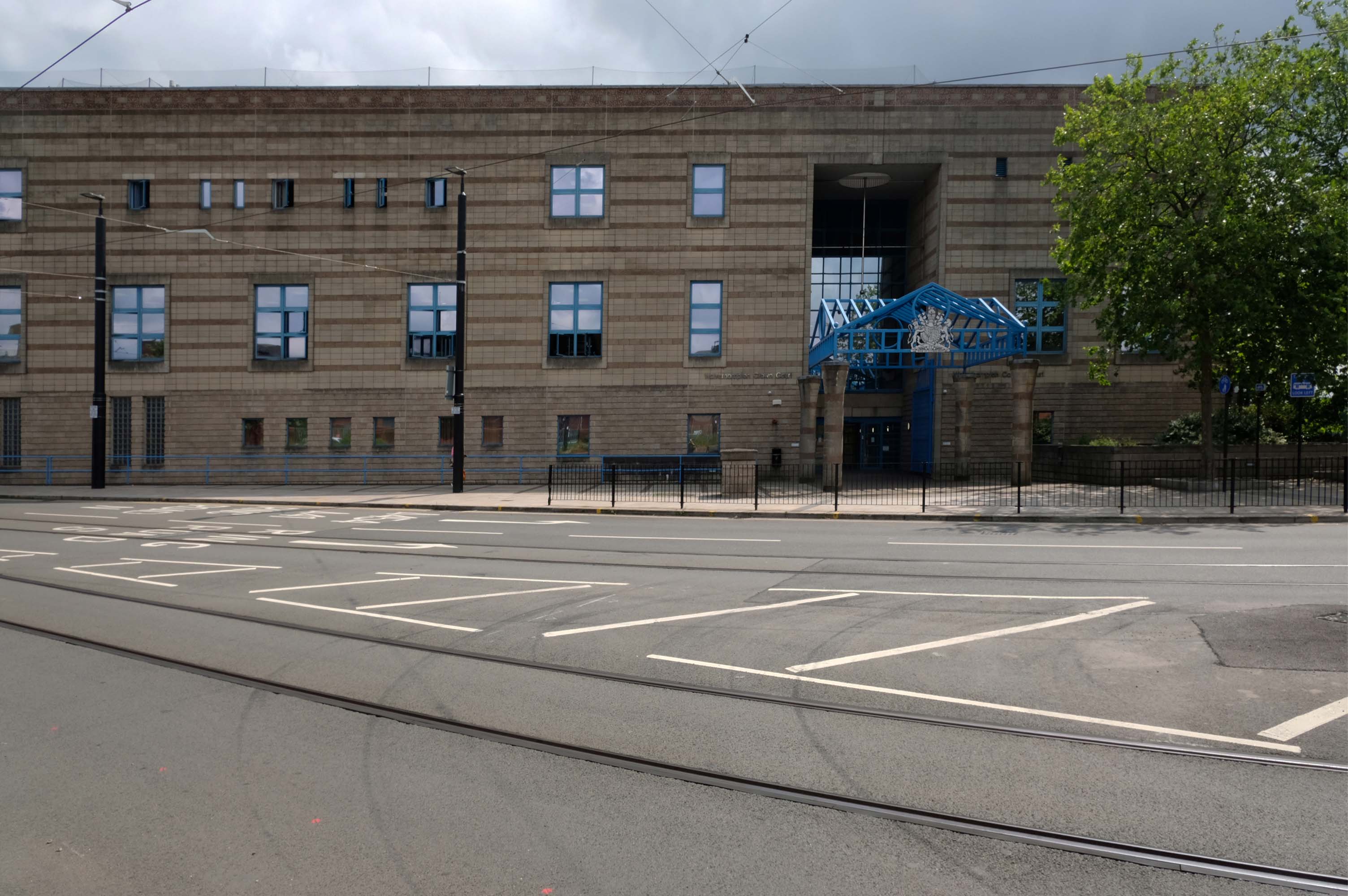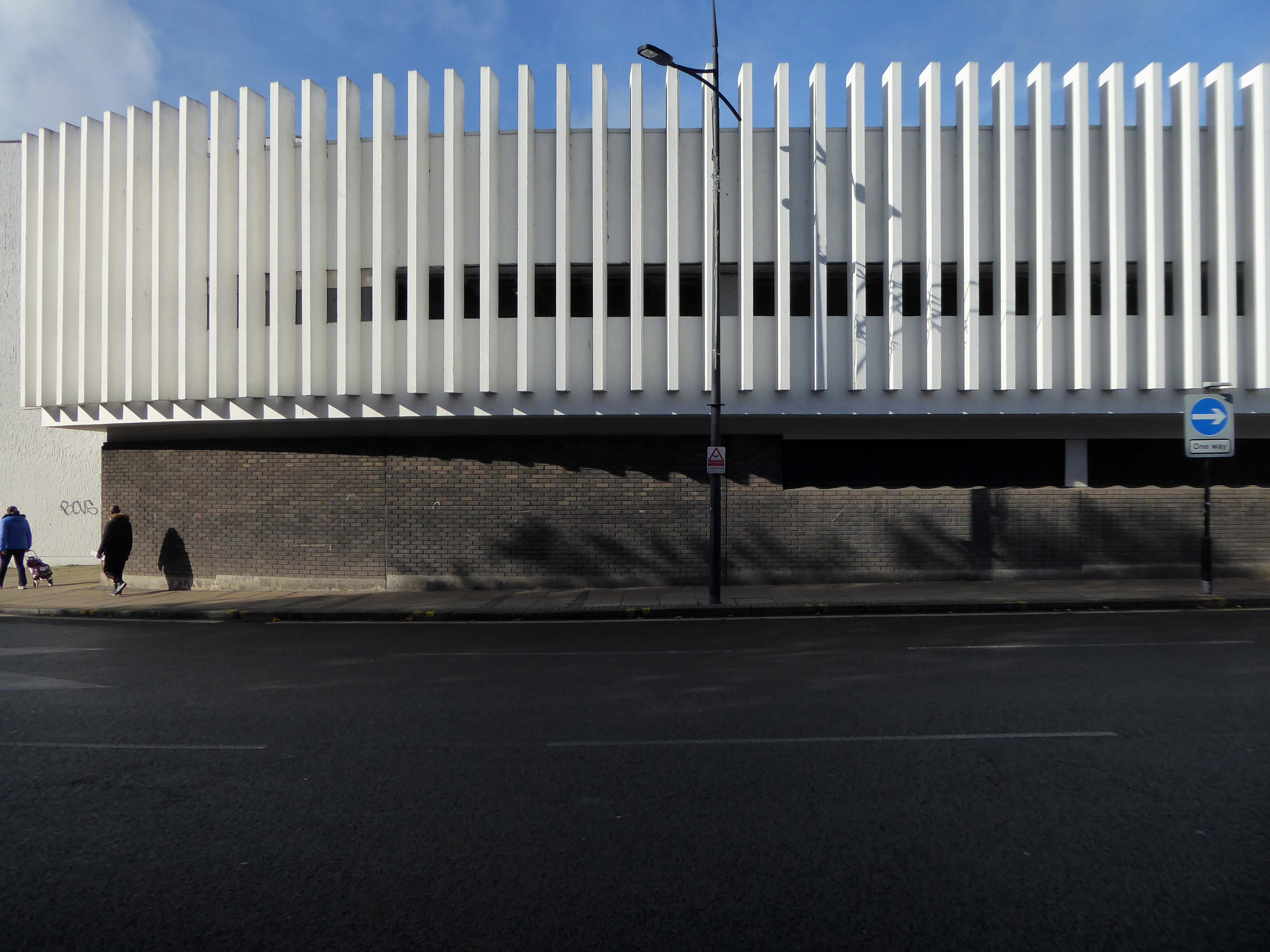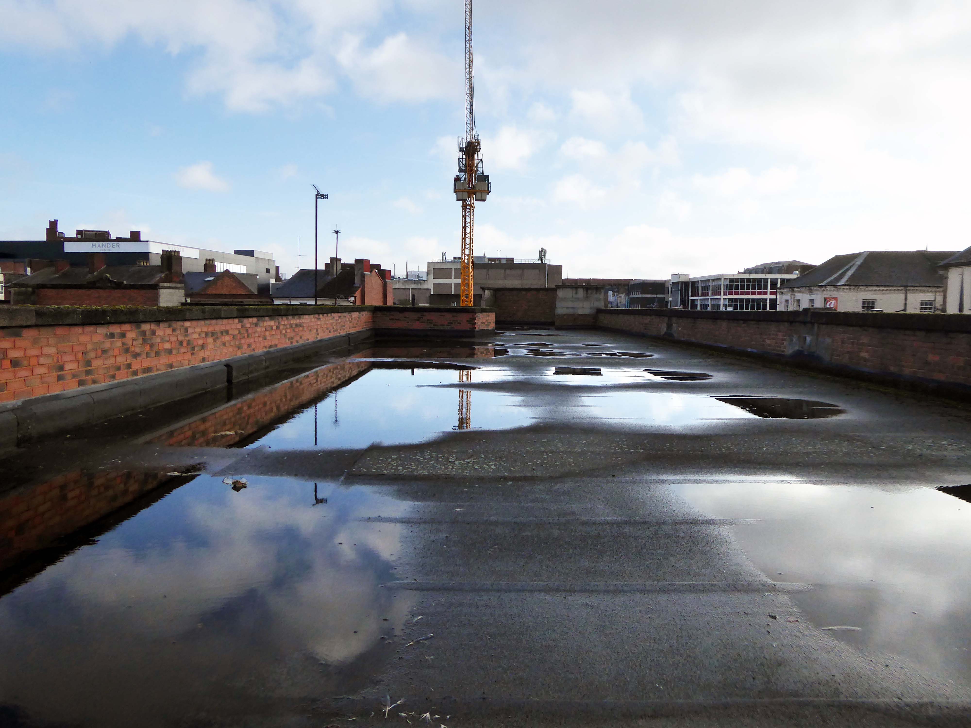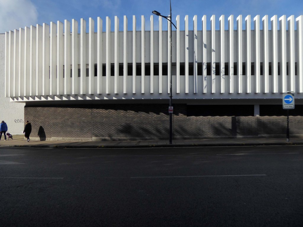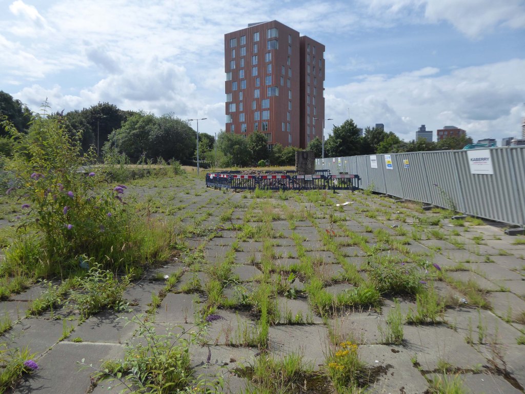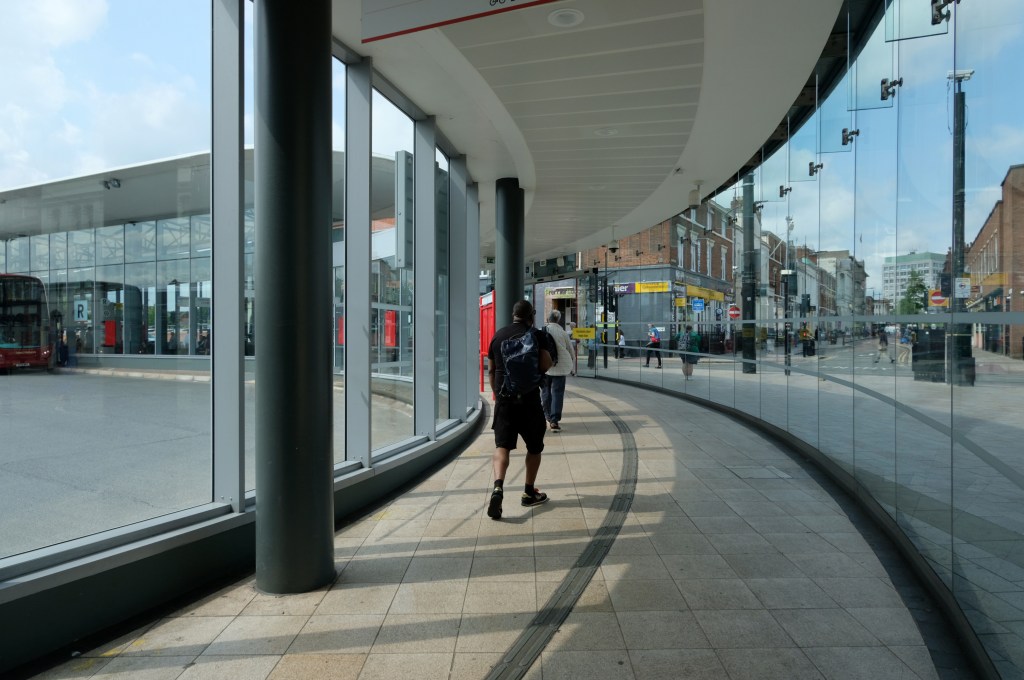 Across the way an enormous brick clad multi-storey car park – skirted by the lines for the tram, which travels to and from Birmingham.