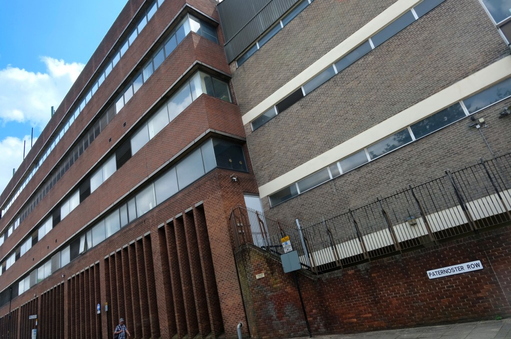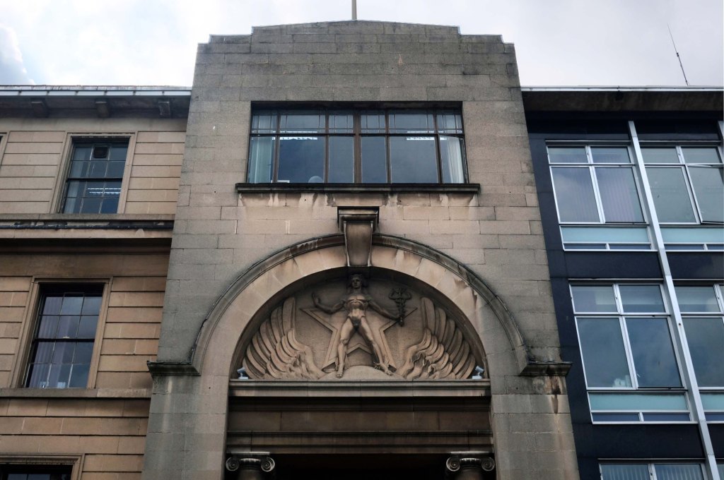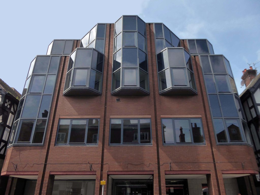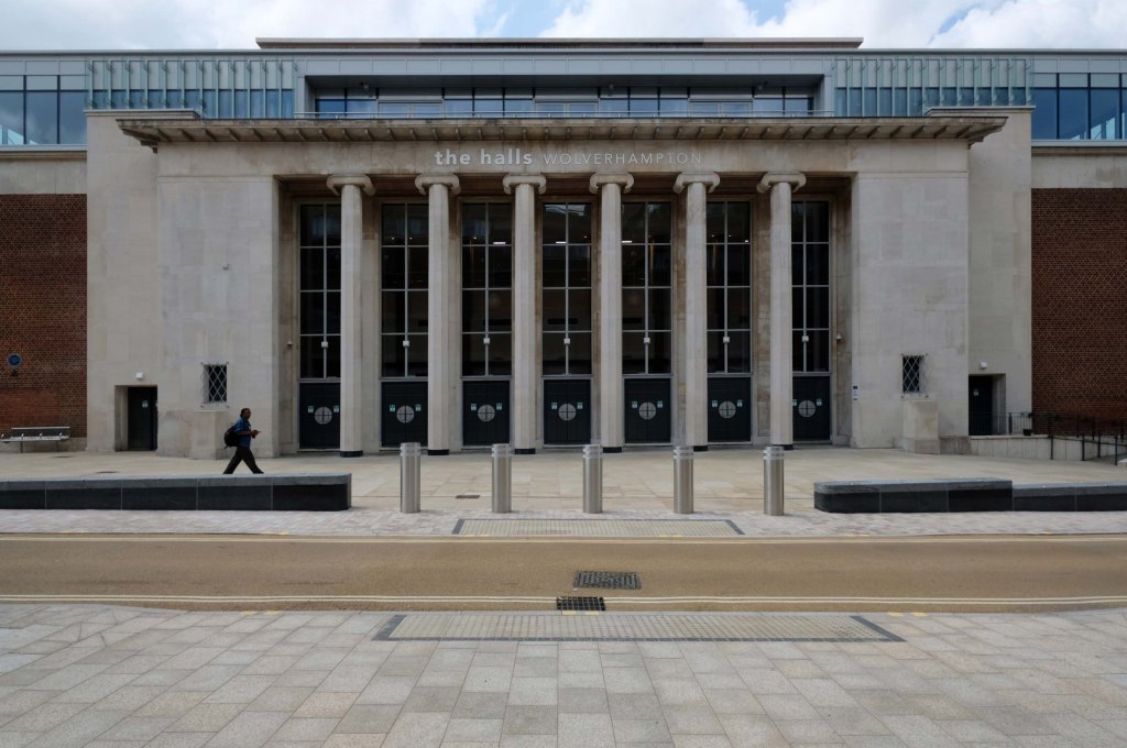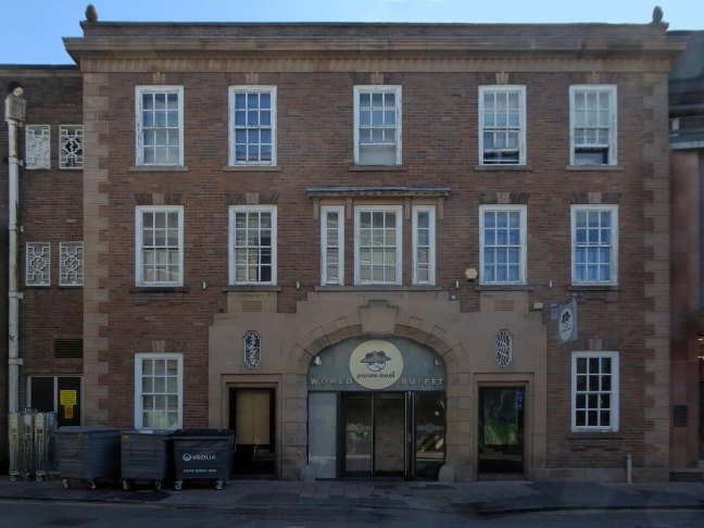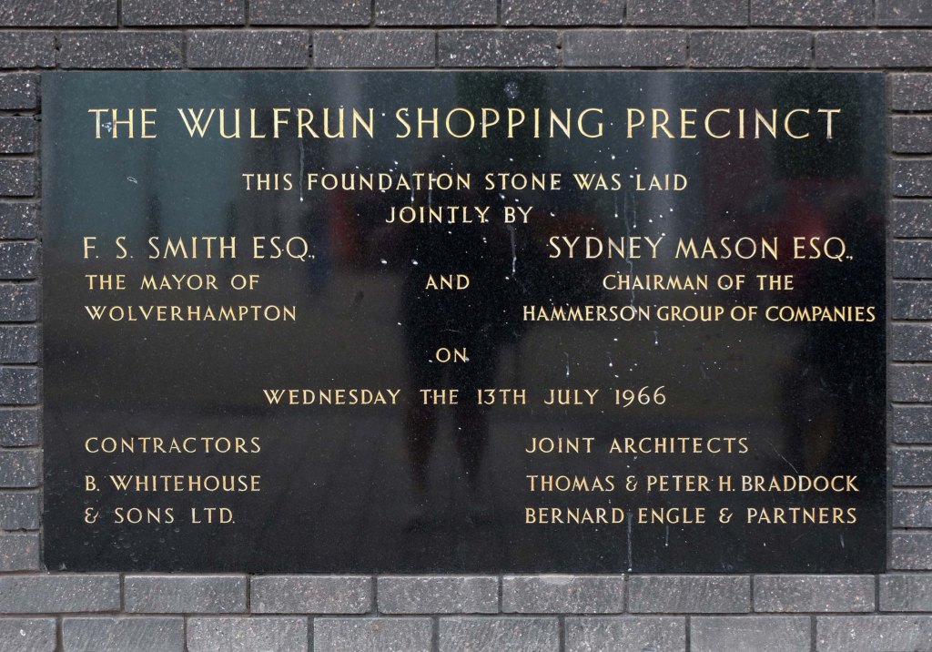 This development that wraps itself around Salop, Skinner and School Streets appears to be of a similar period to the Retail Market – and sports a Lady Wulfrun in relief.