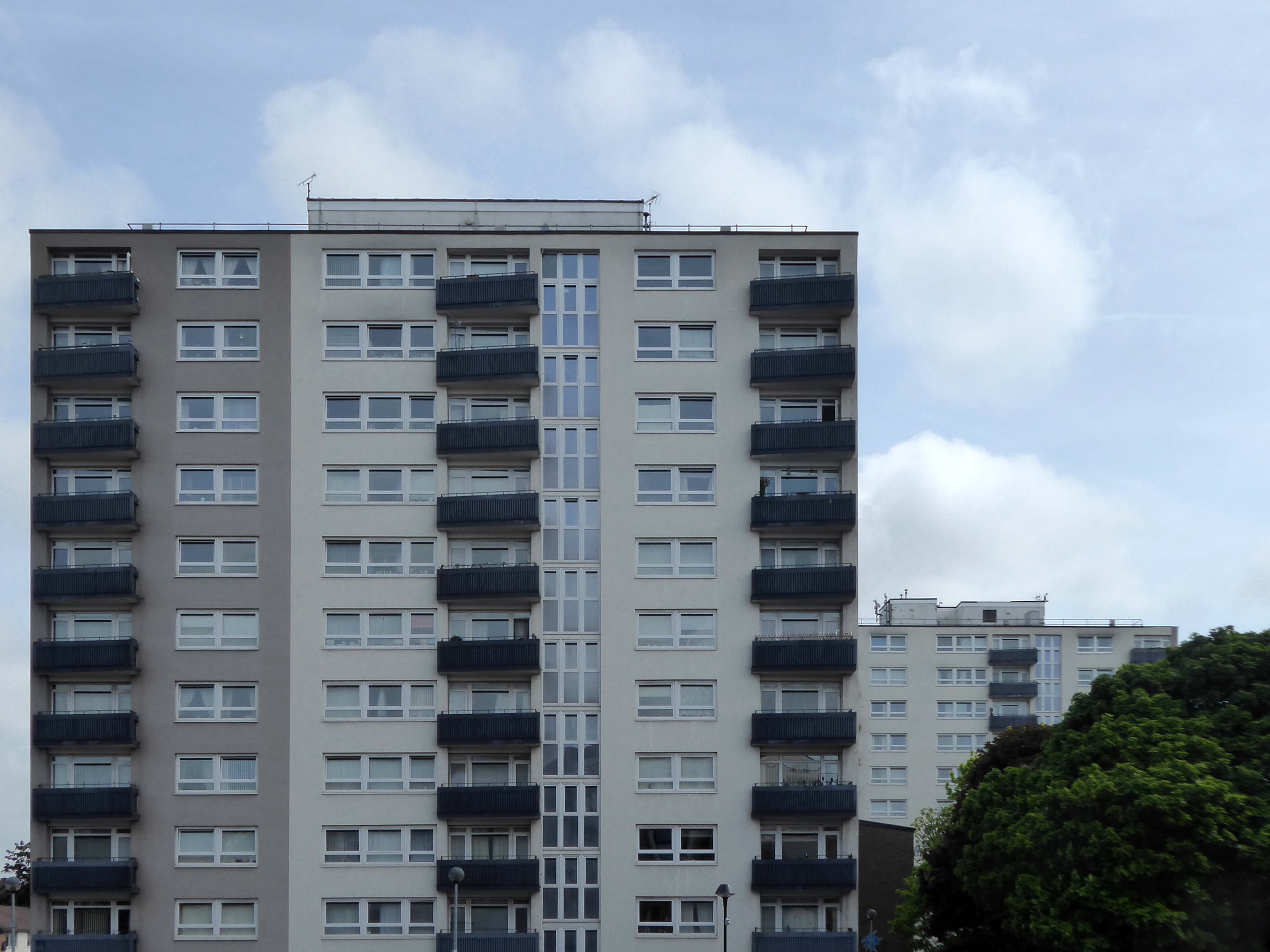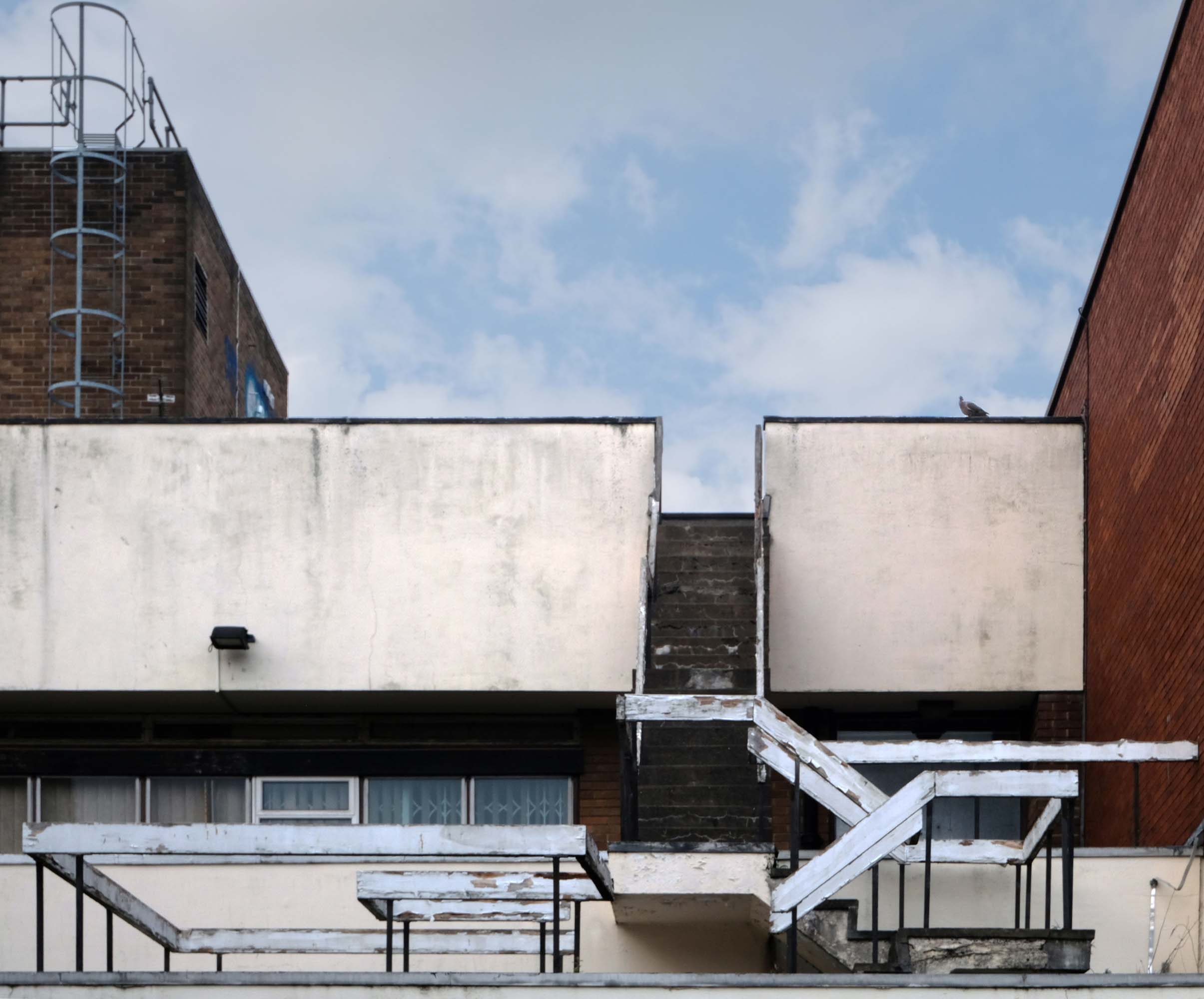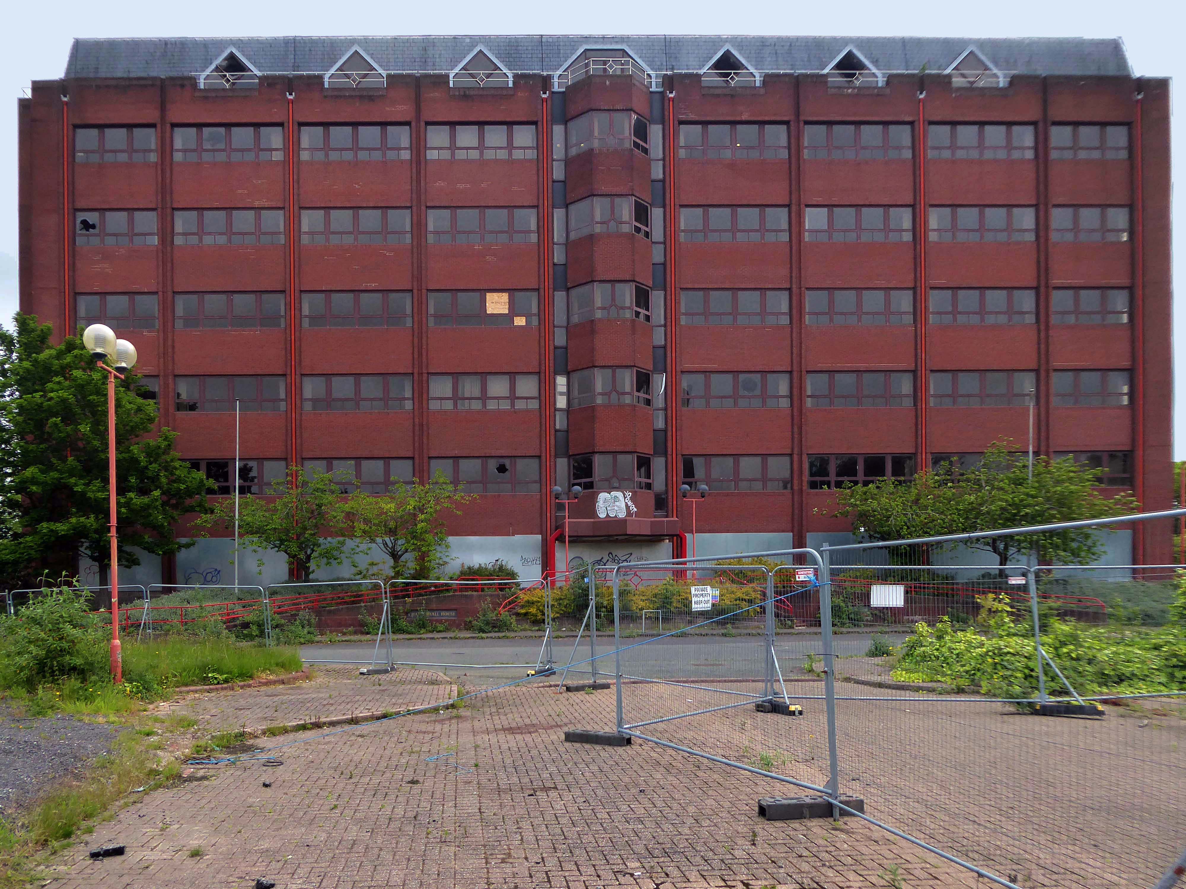 Crossing the wide open spaces of car parking we come to the currently tinned up Charterhall House.
