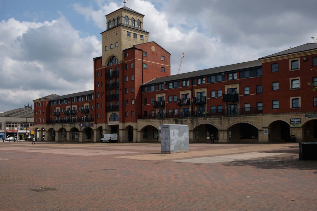 Formed from the former Market Square, a mix of flats and shops opened in 2004, in an Italianate version of the modish school of streaky bacon.