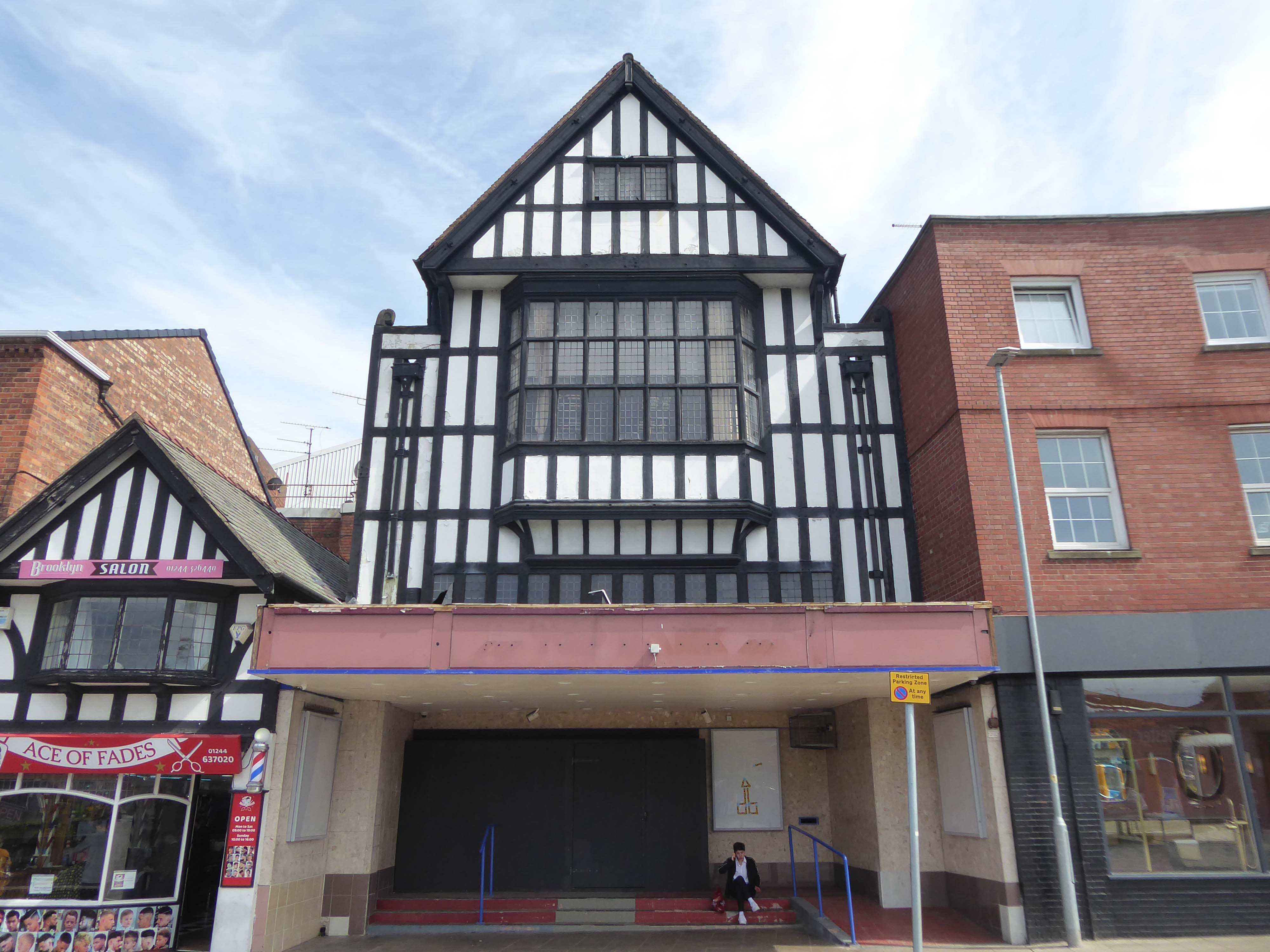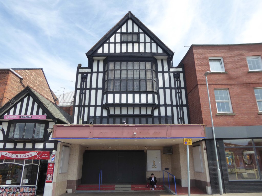 A lost cinema with a historicist mock Tudor elevation and bulky brick behind – the former Gaumont.