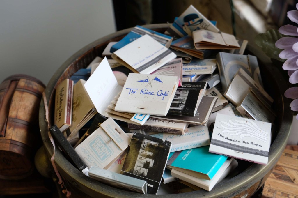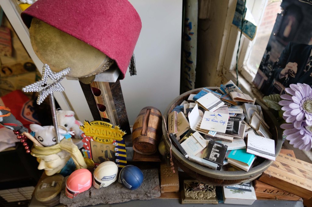 Printed ephemera, faded photos and souvenirs galore.