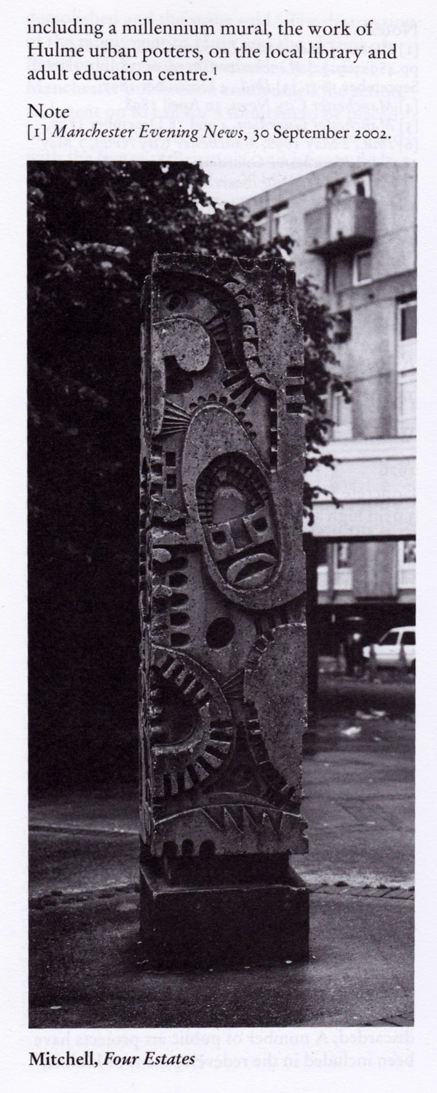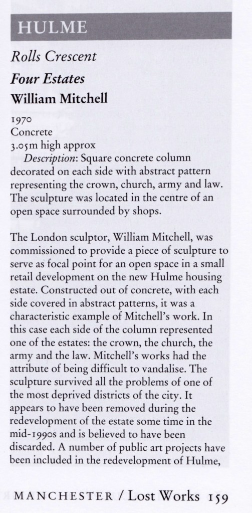 The sculpture is one of four around Manchester – the Hulme exemplar is long gone.