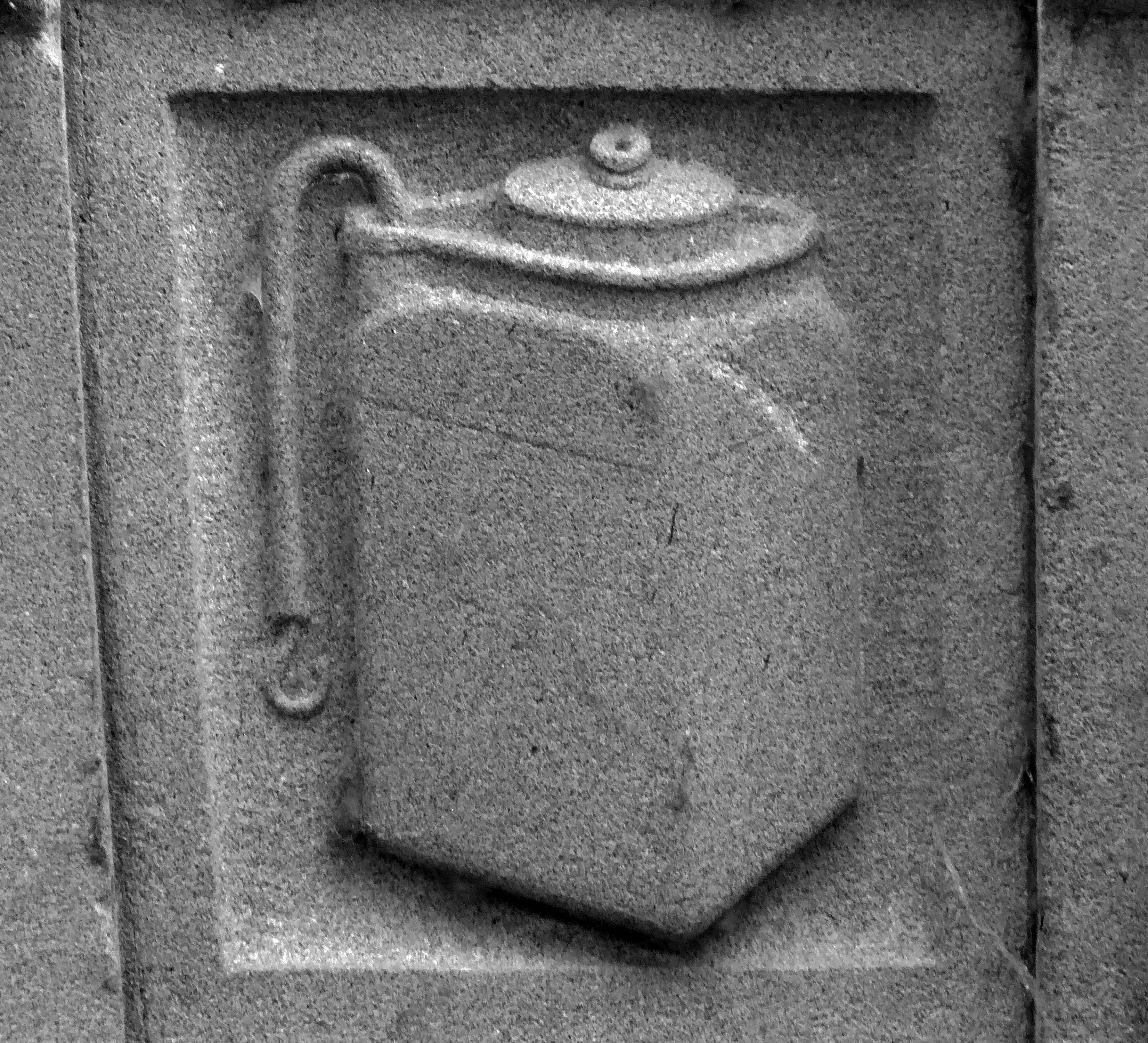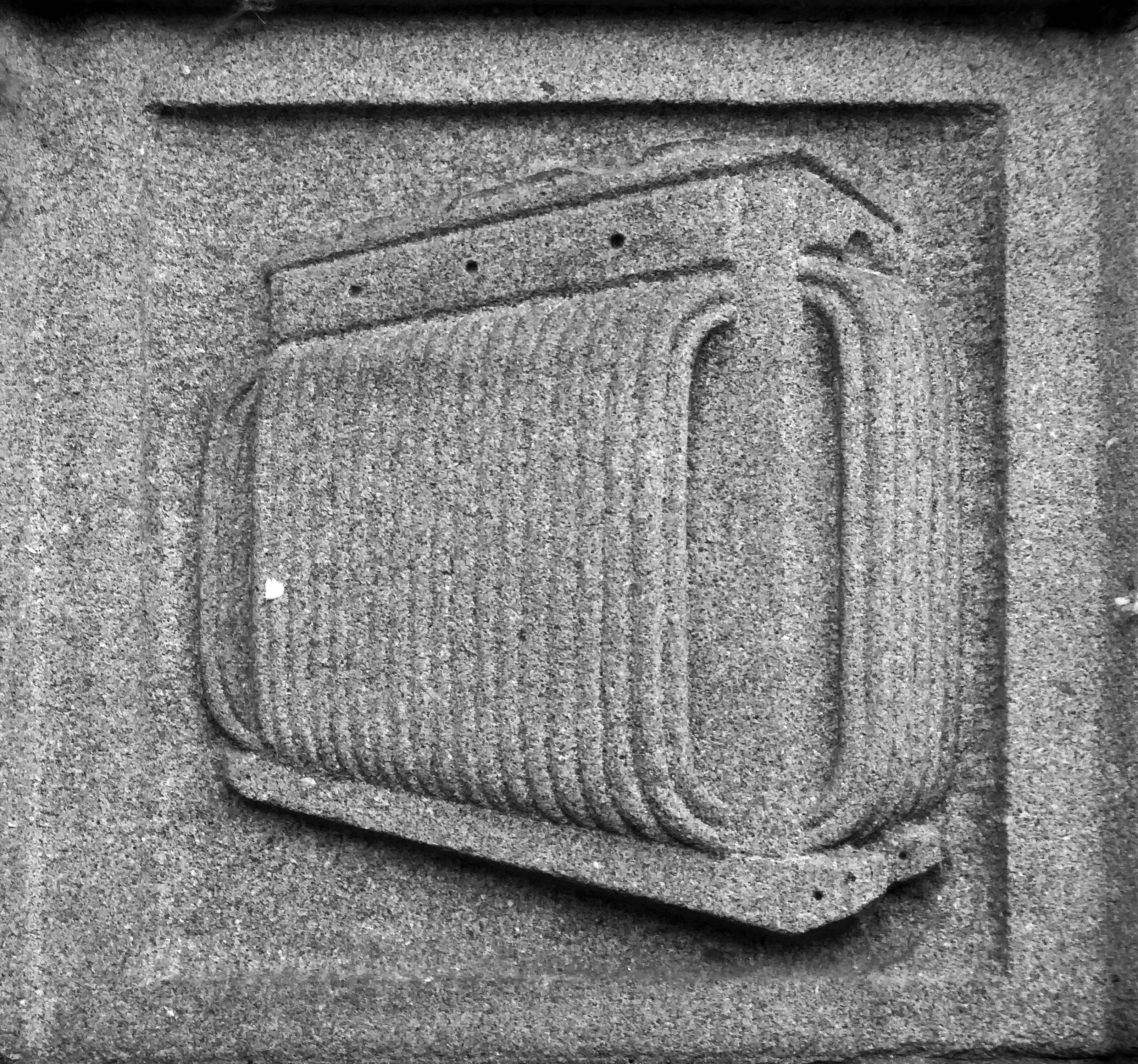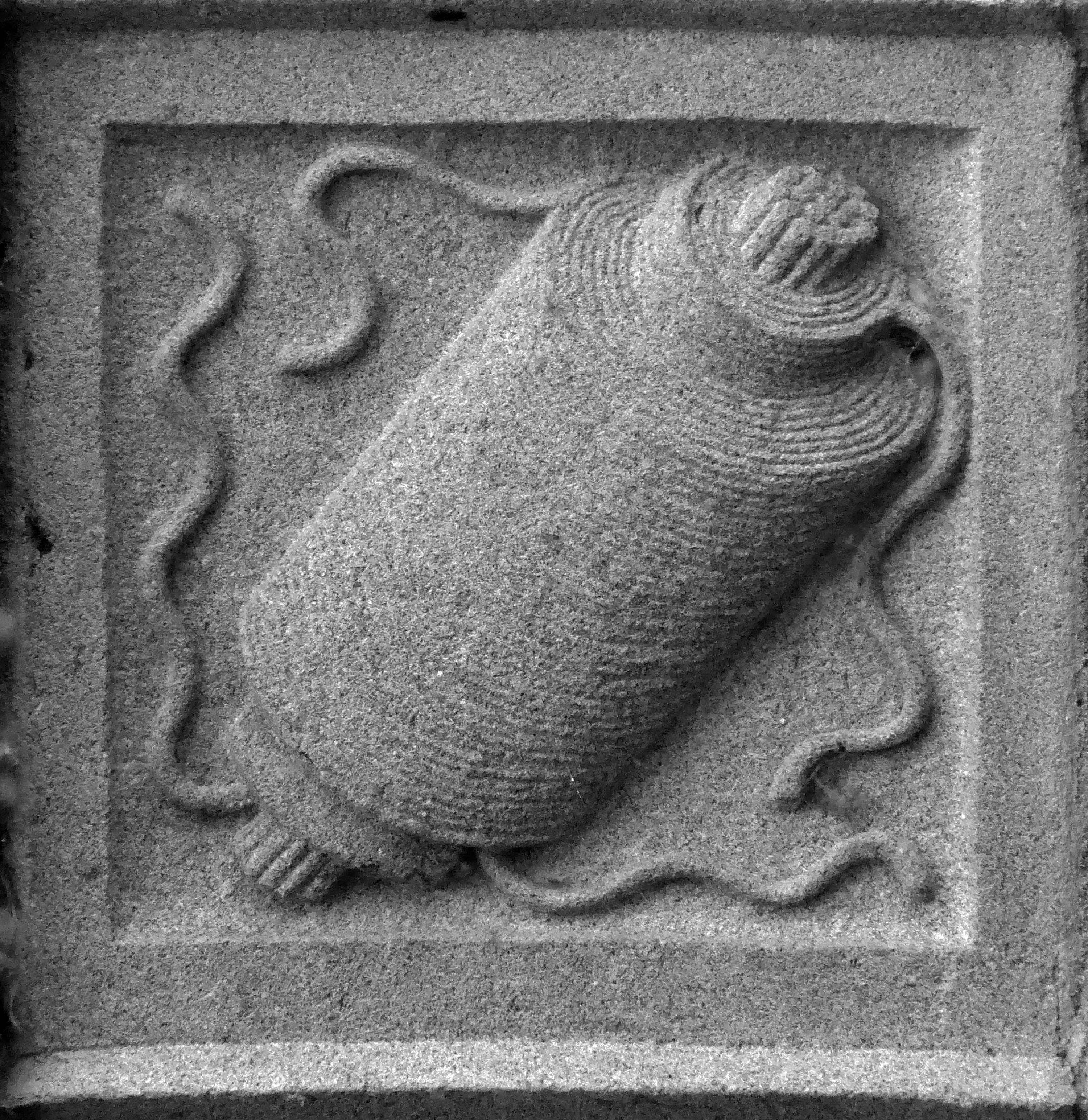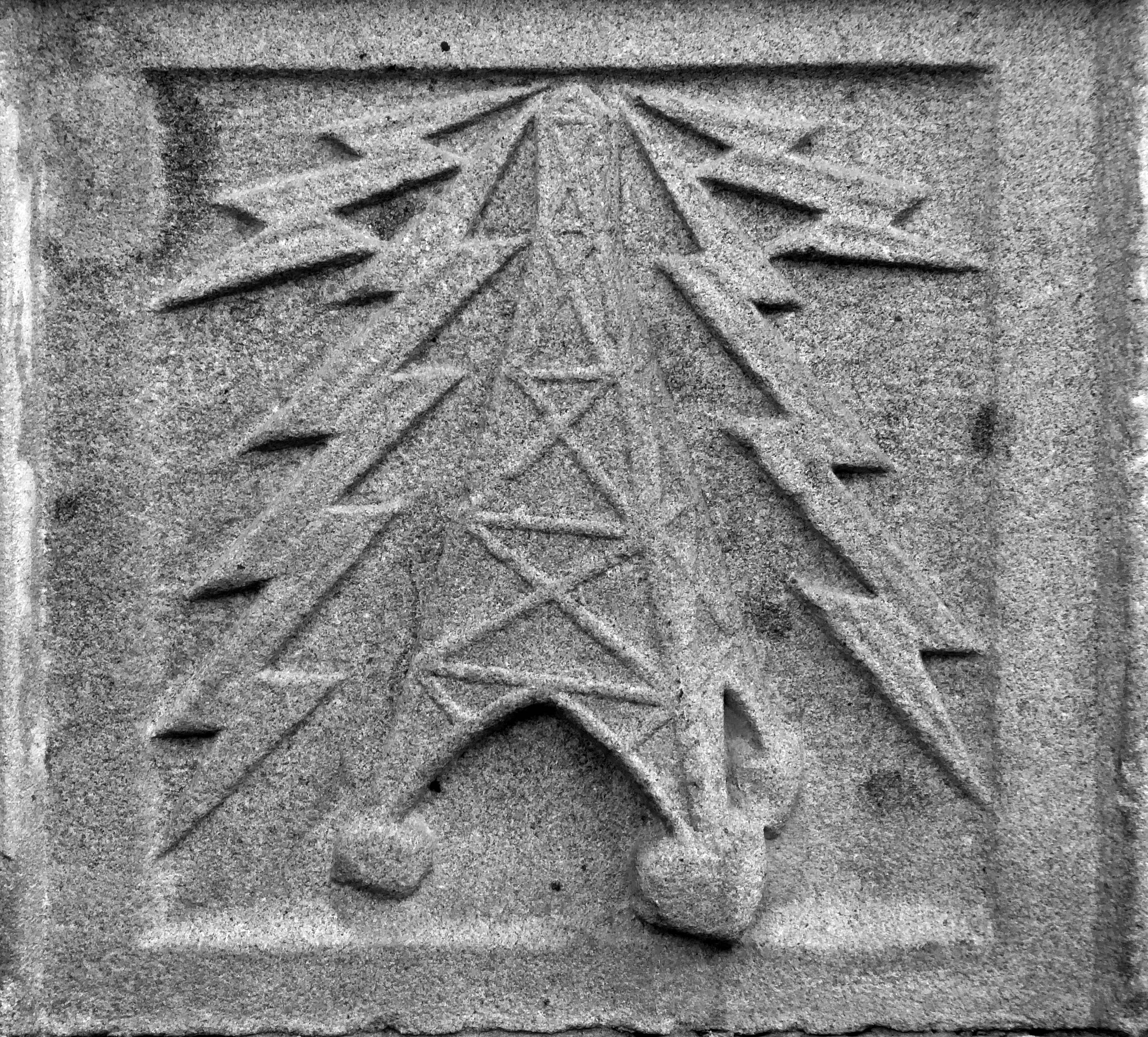 The arch above the entrance is adorned with these carved stone electrical emblems – also rendered in the Futurist Moderne manner.