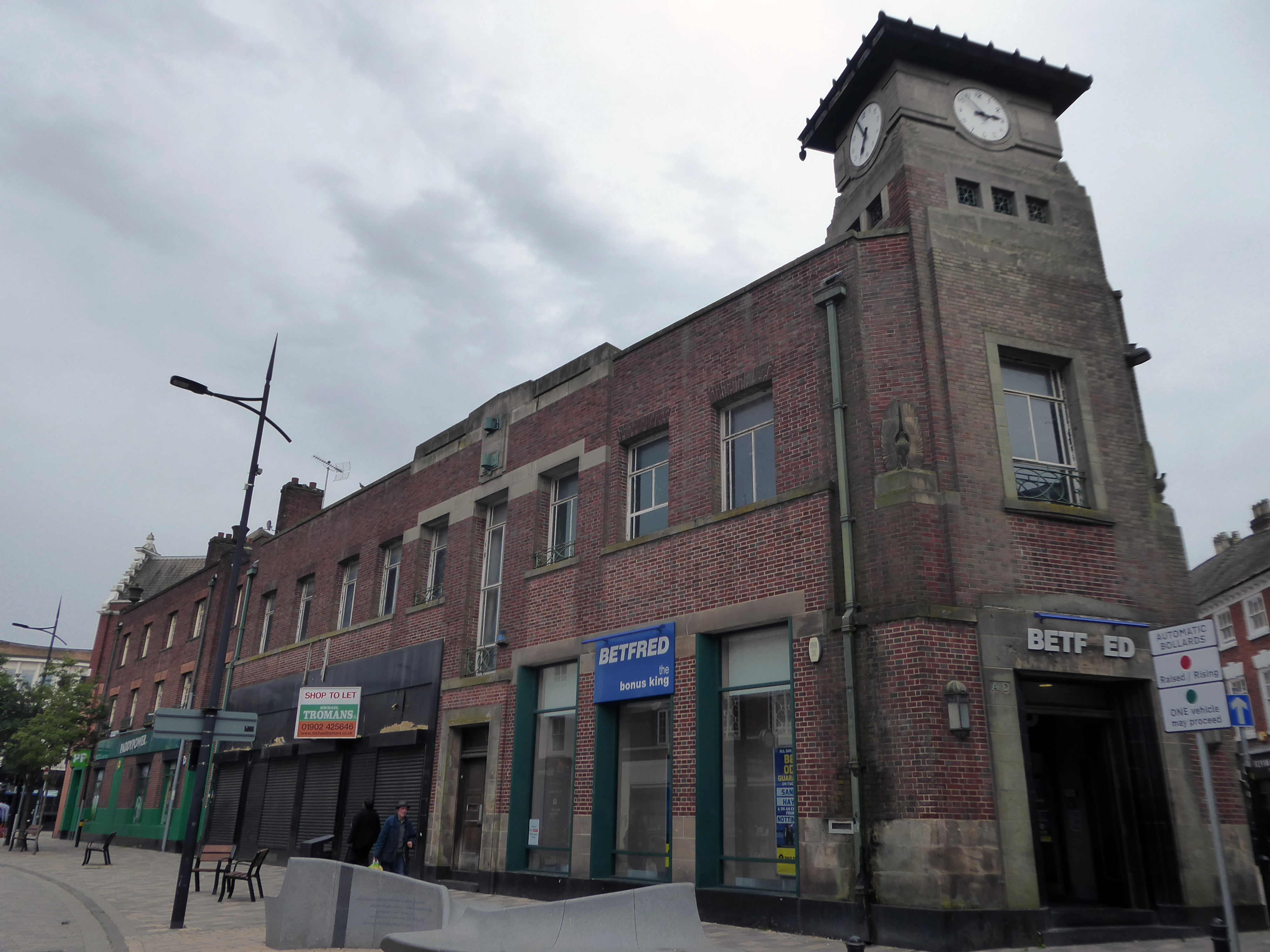 Along Princess Street this corner group, with an impressive clock tower – originally HQ for the South Staffordshire Building Society