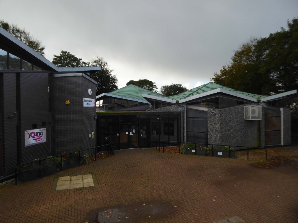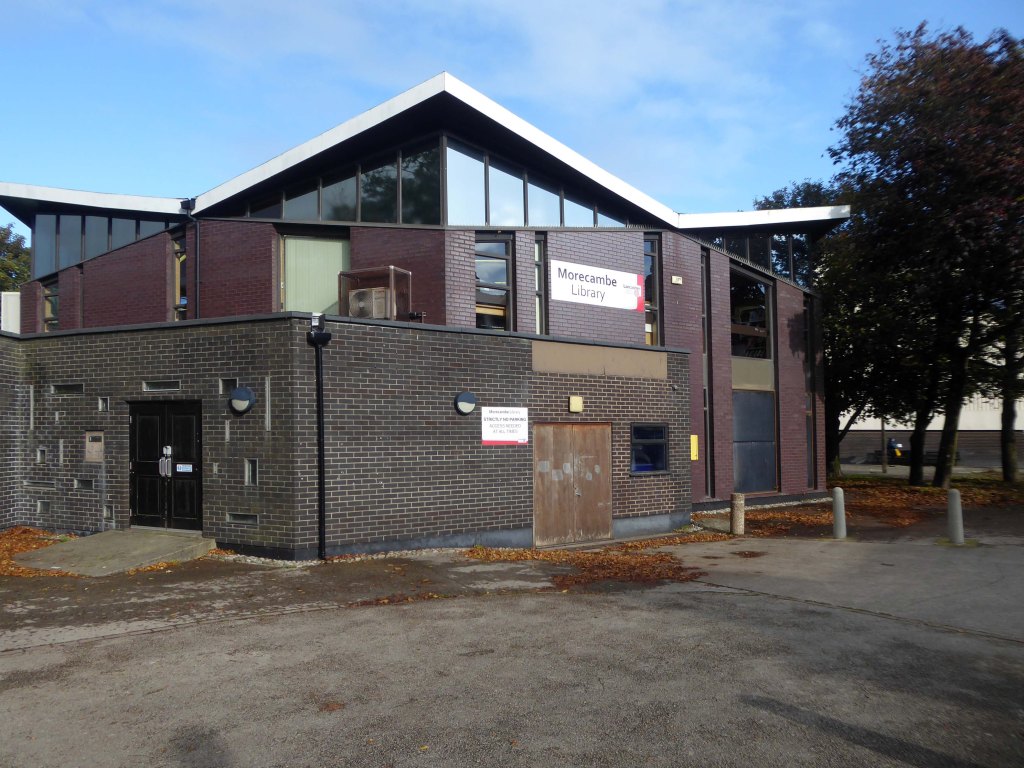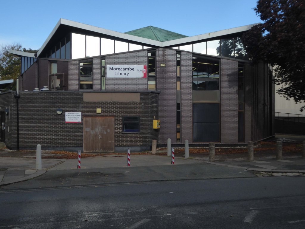 Interior: above the cantilevered circular open-well staircase is a ceiling panel carved in low relief by Eric Gill and painted by Denis Tegetmeier. They were also responsible for the pictorial map of north-west England in what was originally the children’s room at the south end of the building. Also in this room is Eric Gill’s Portland stone panel, originally in the lounge, carved in low relief with a representation of Odysseus and Nausicaa. It was moved to its present position when internal walls were demolished during the 1970s. The cafe walls were originally painted with frescoes by Eric Ravilious, representing morning and evening in an idyllic seascape setting. These deteriorated rapidly because the plaster and paint used were incompatible and were obliterated within 2 years of completion, but were repainted in the late 1980s using photographic evidence.