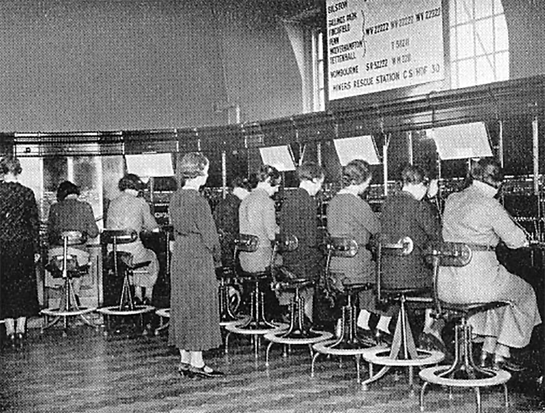 In July 1880 the company installed Wolverhampton’s first telephone exchange in a room in the Free Library in Garrick Street. Making a call was a long-winded affair. In order to connect the telephone to the exchange, a white button was pressed. The operator would ask if a telephone call was about to be made, and the user would tell the operator the name and number of the person to be contacted. After making the connection, the operator waited for the person at the other end to pick-up the earpiece, and then told the caller to proceed. When the telephone call had ended, the caller had to inform the operator, who would then remove the connection. Although this was time consuming, there were very few users, and so it worked adequately.