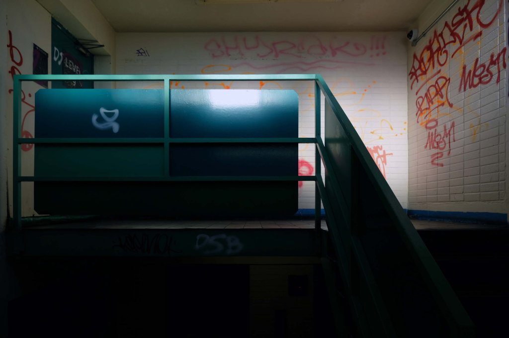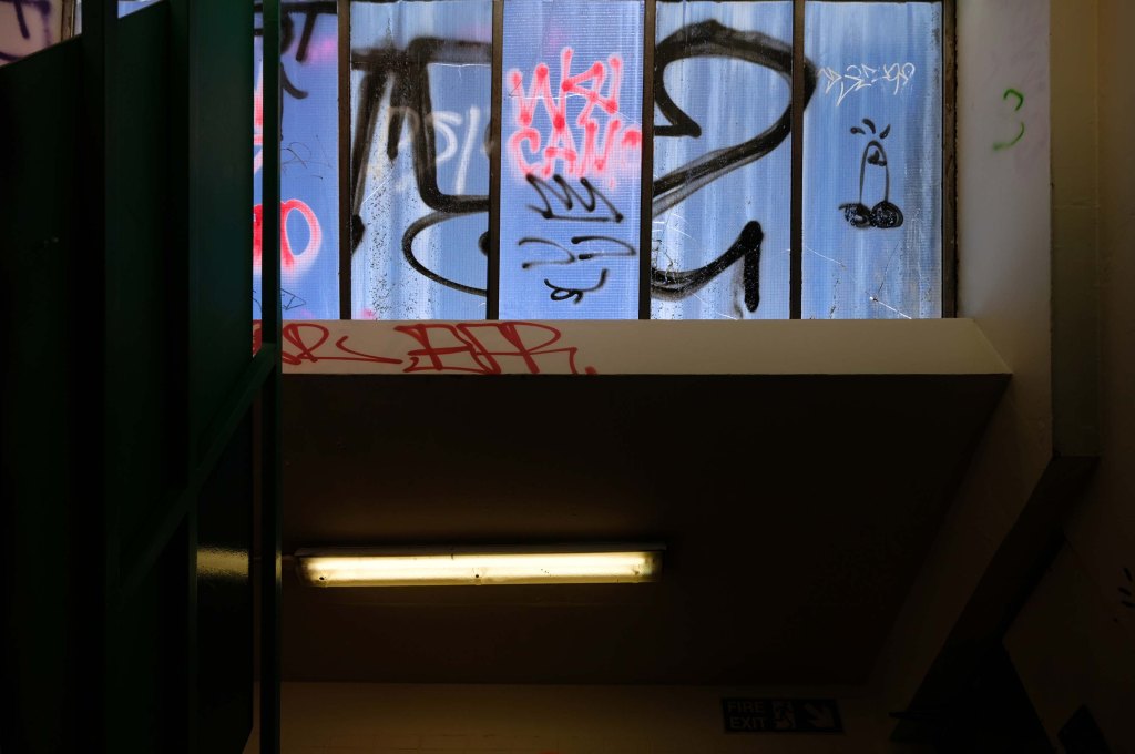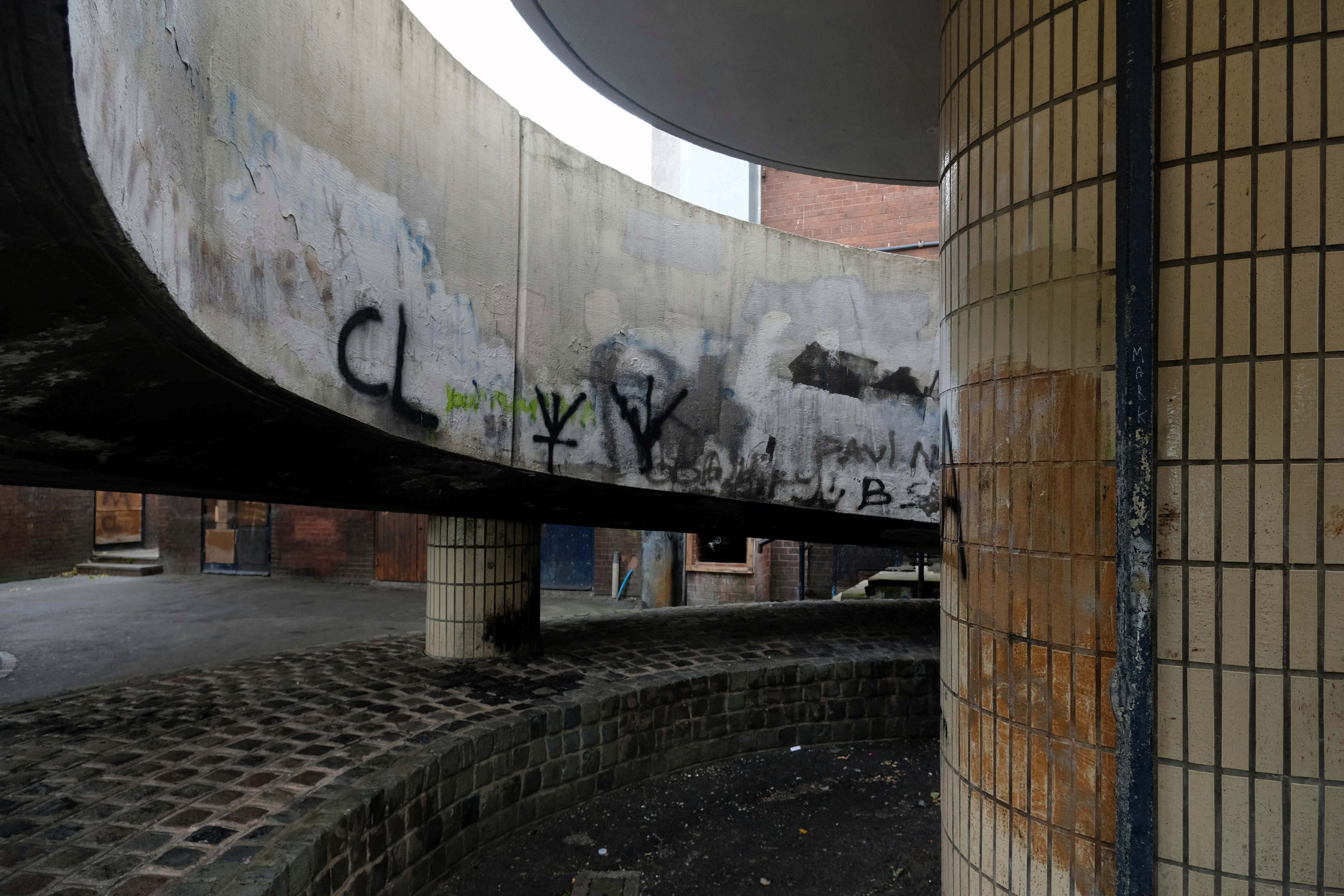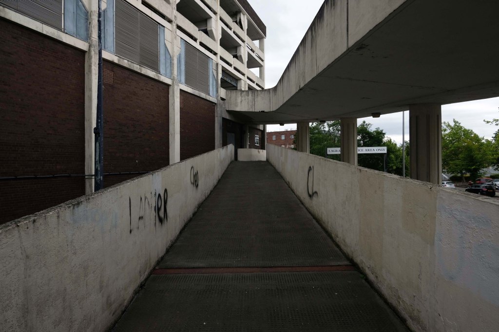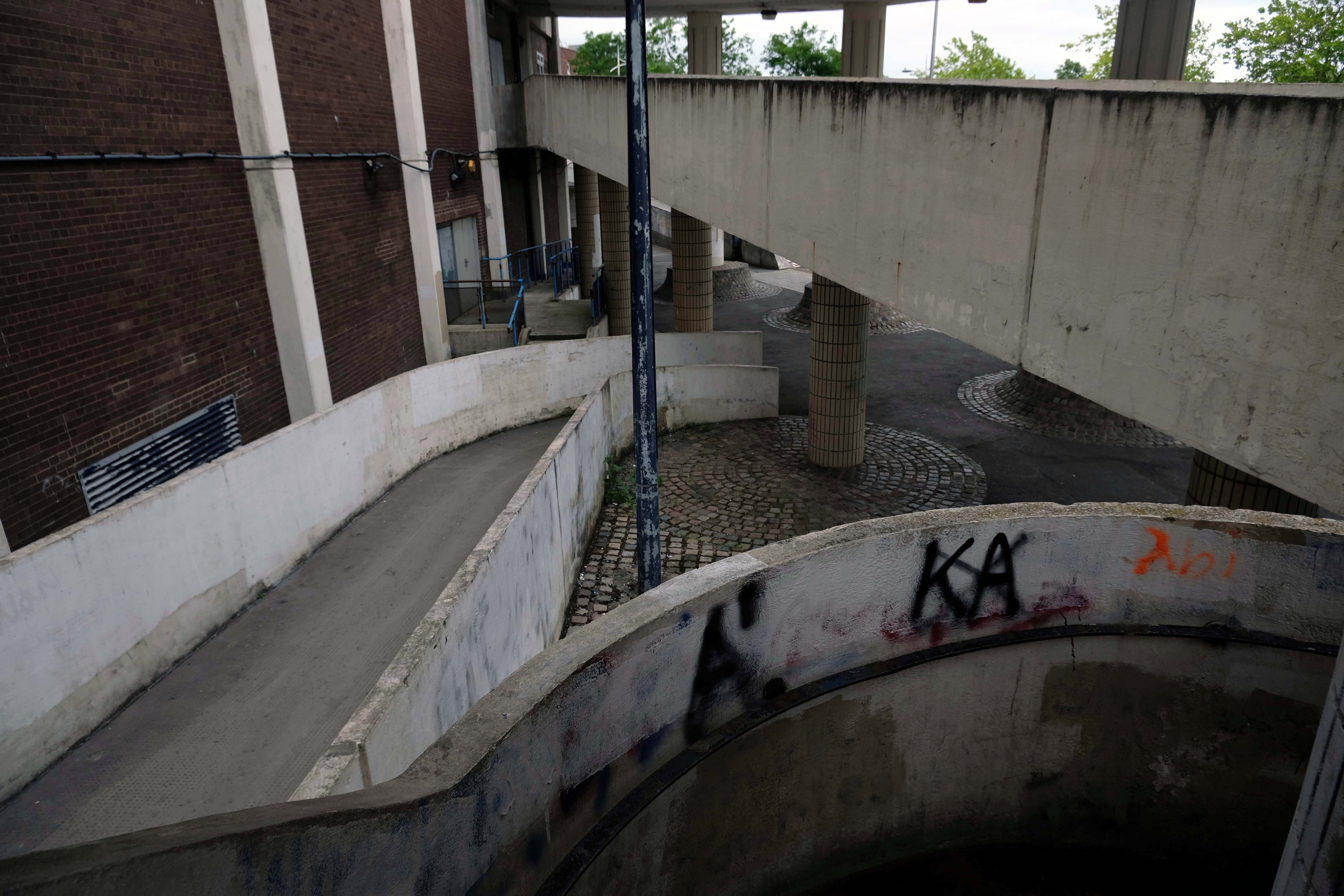 On the day of my visit building surveyors were measuring up the upper tier for resurfacing – the stairwells were unclean, and an air of dank neglect permeated my hesitant ascent.