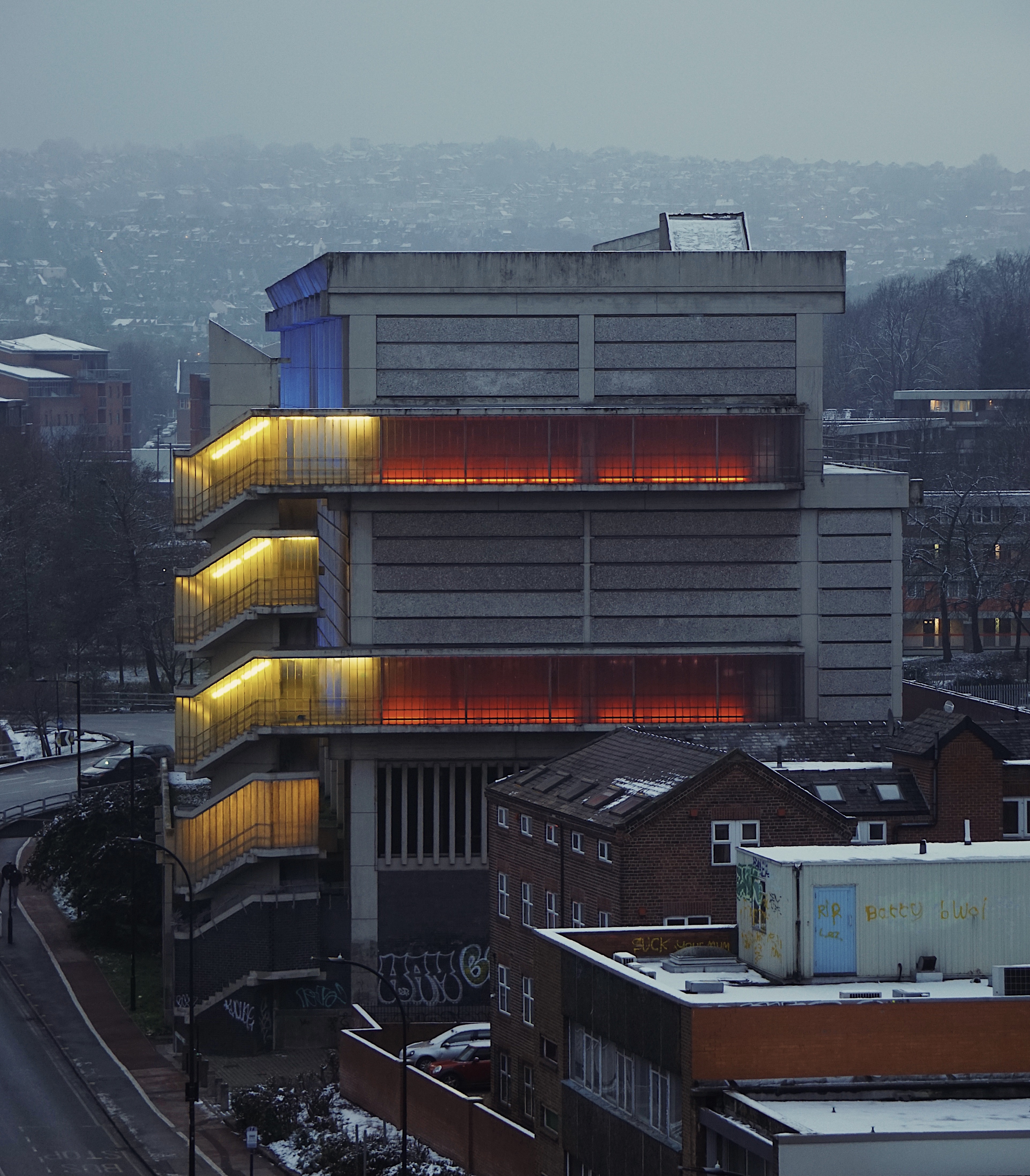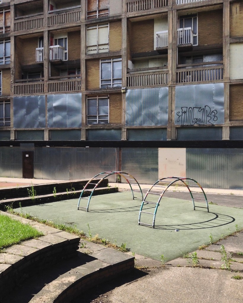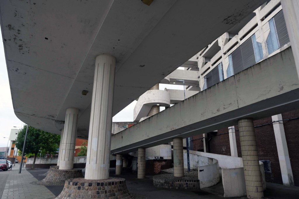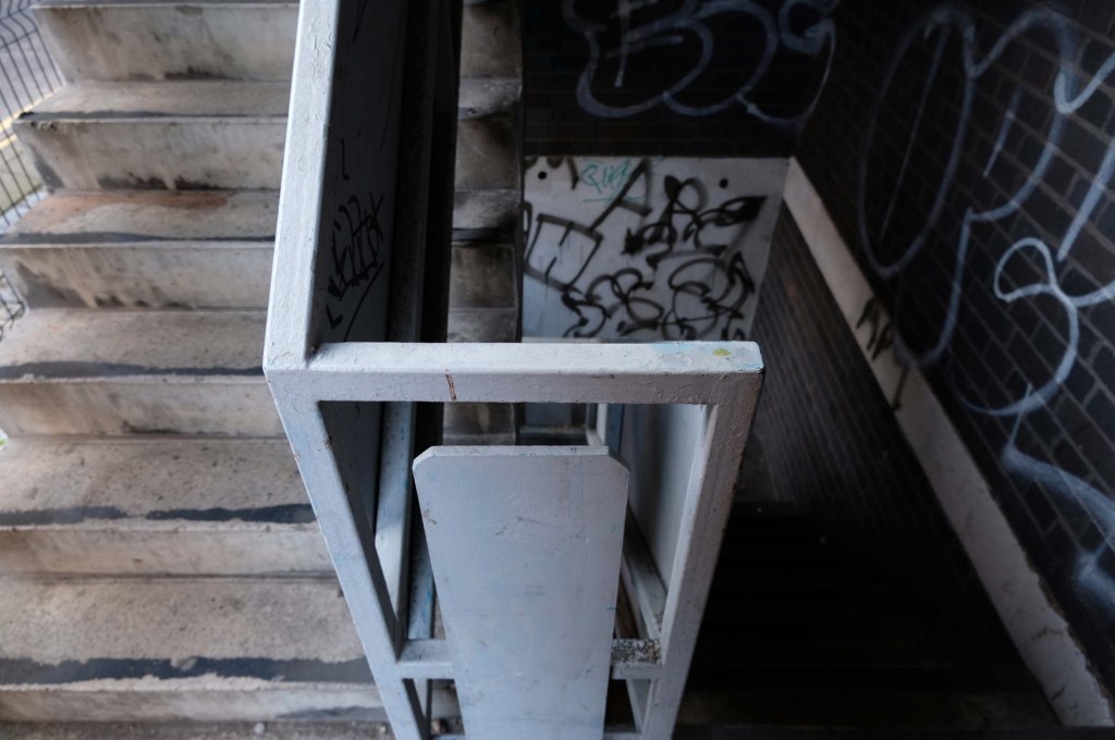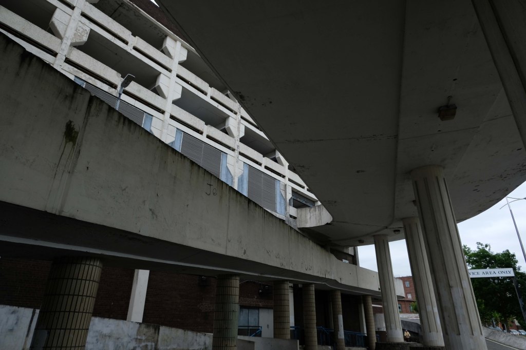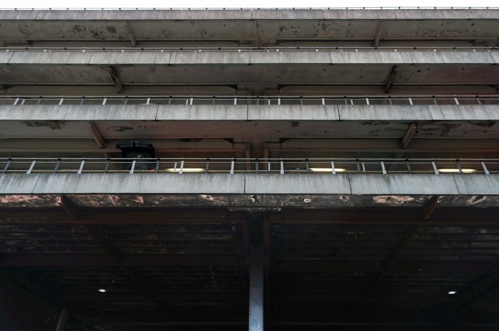 On the day of my visit building surveyors were measuring up the upper tier for resurfacing – the stairwells were unclean, and an air of dank neglect permeated my hesitant ascent.