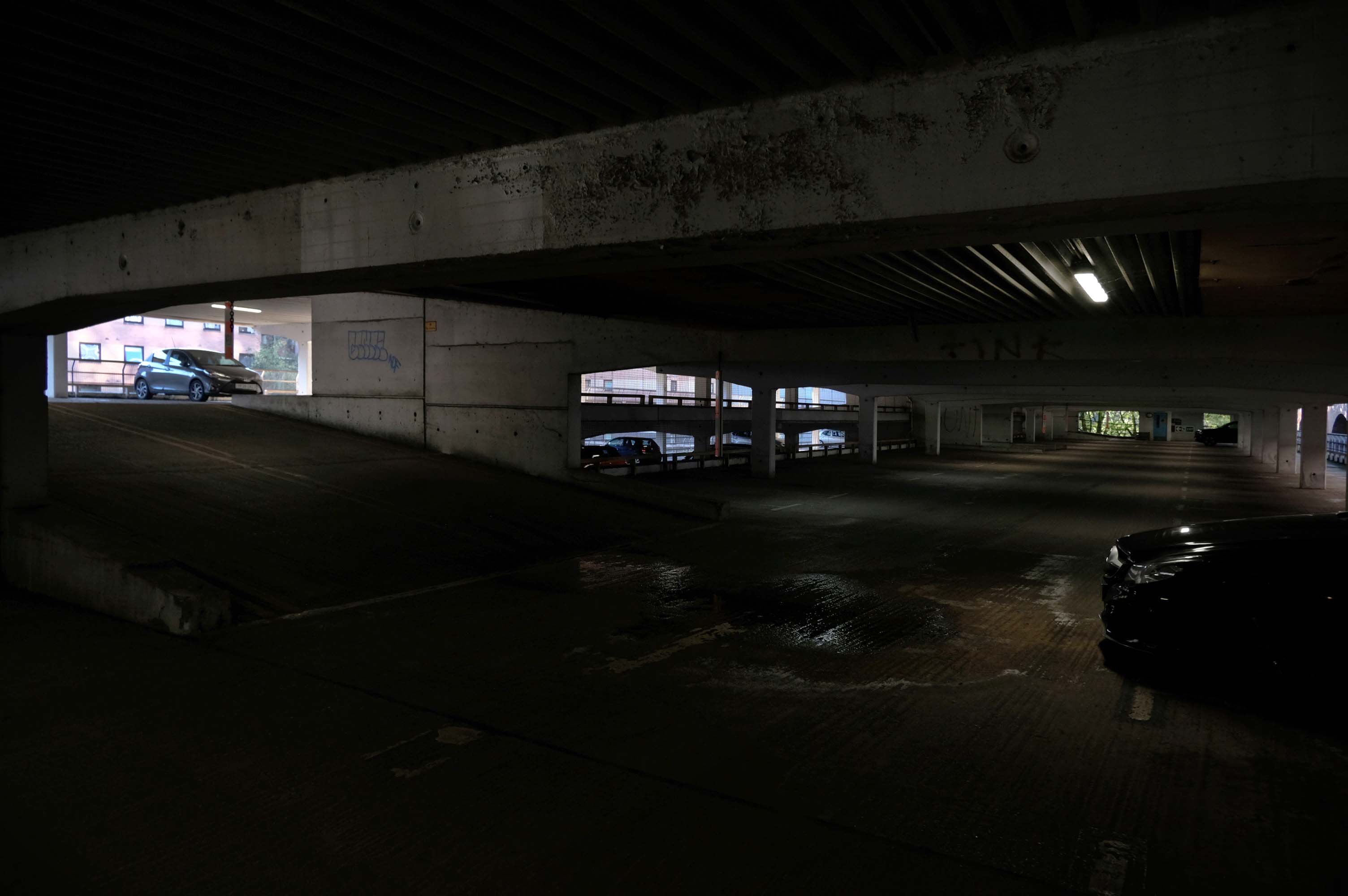 The pedestrian in the car park presses on – encountering structural engineers along the way, who have given the concrete construction a clean bill of health.