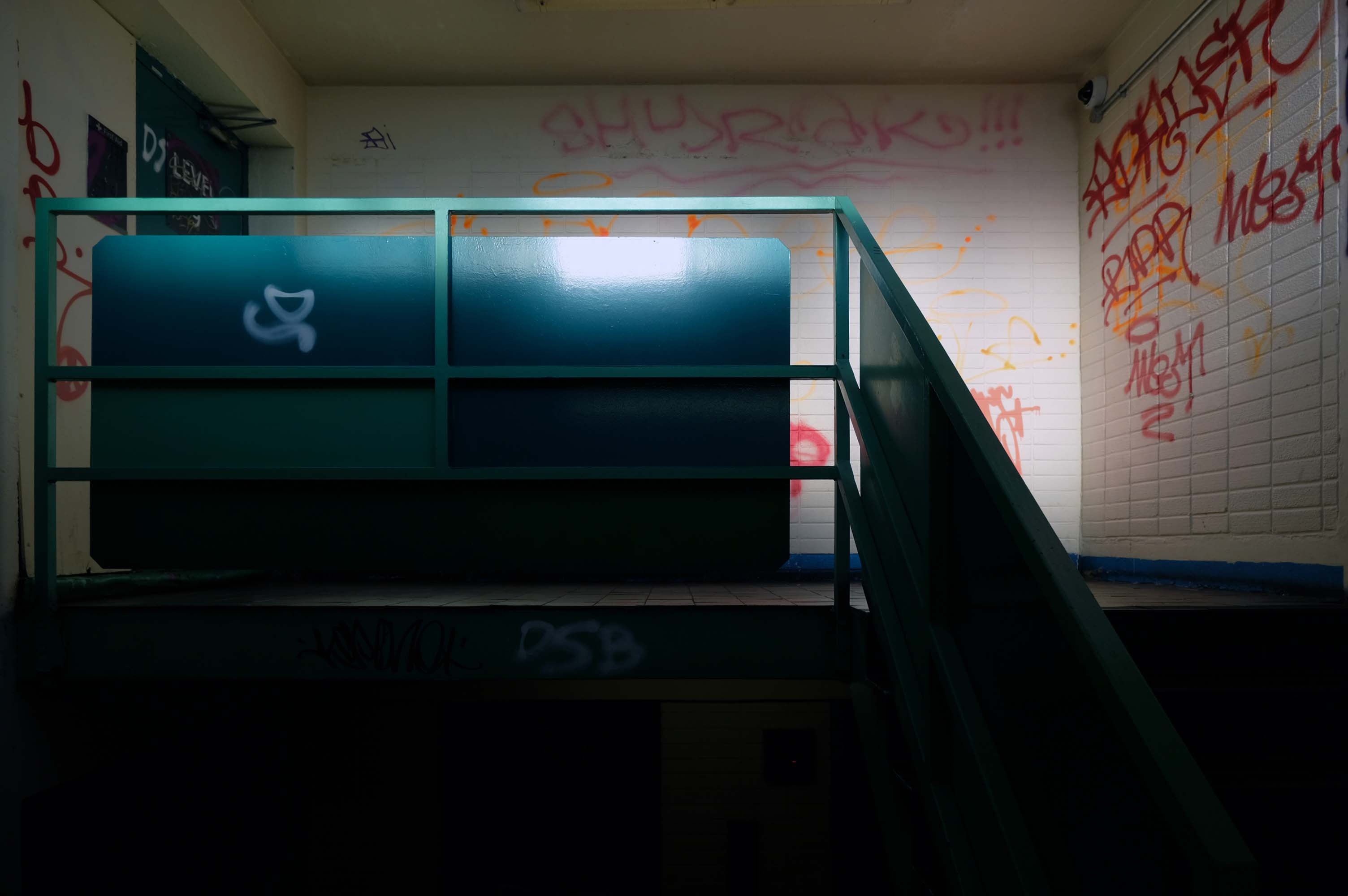 Stairs smell of stale urine and cannabis.