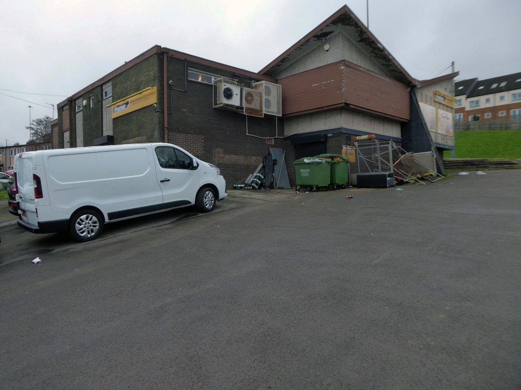 The former pub’s striking roof is still striking – sadly the last orders bell stopped striking long, long ago.