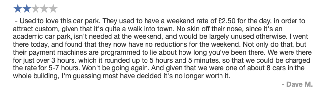 The most unnecessarily complicated ticketing system I have ever seen for a car park. Designed to fail so that the system can fine you. Beware, better avoided for overseas visitors.