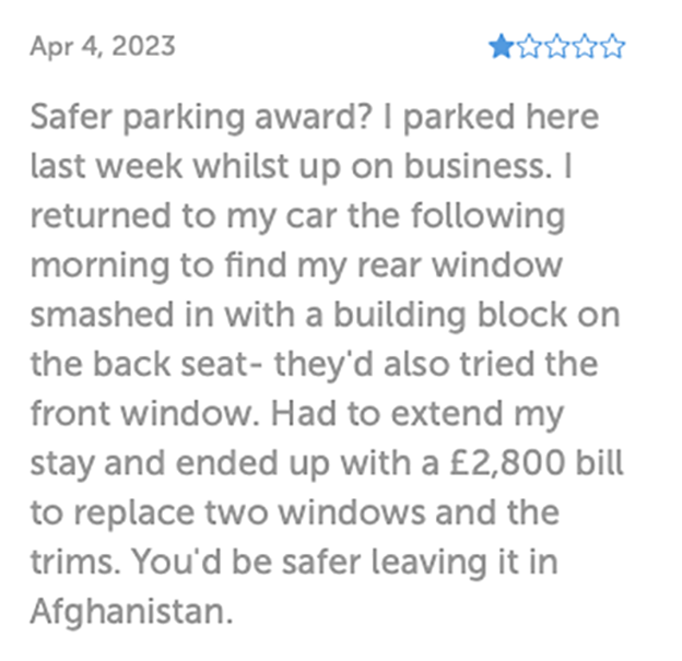 Not secure, car broken into theft of personal effects, pedestrian gate was un locked, no CCTV that I could see anywhere. Cost me over £25 to park for six hrs and lost over £200 of personal effects, complained to council, no response. Wouldn’t park here ever again.