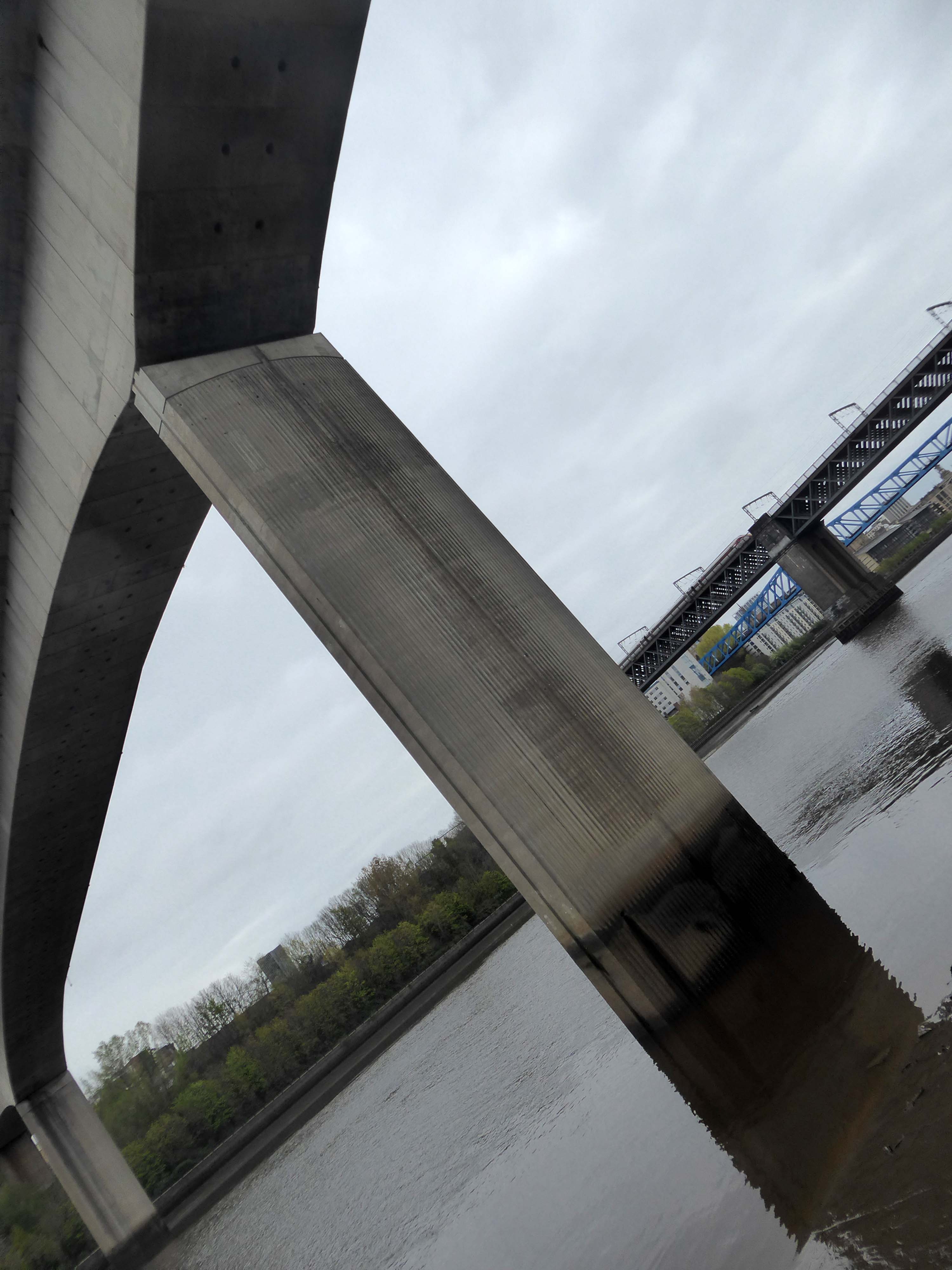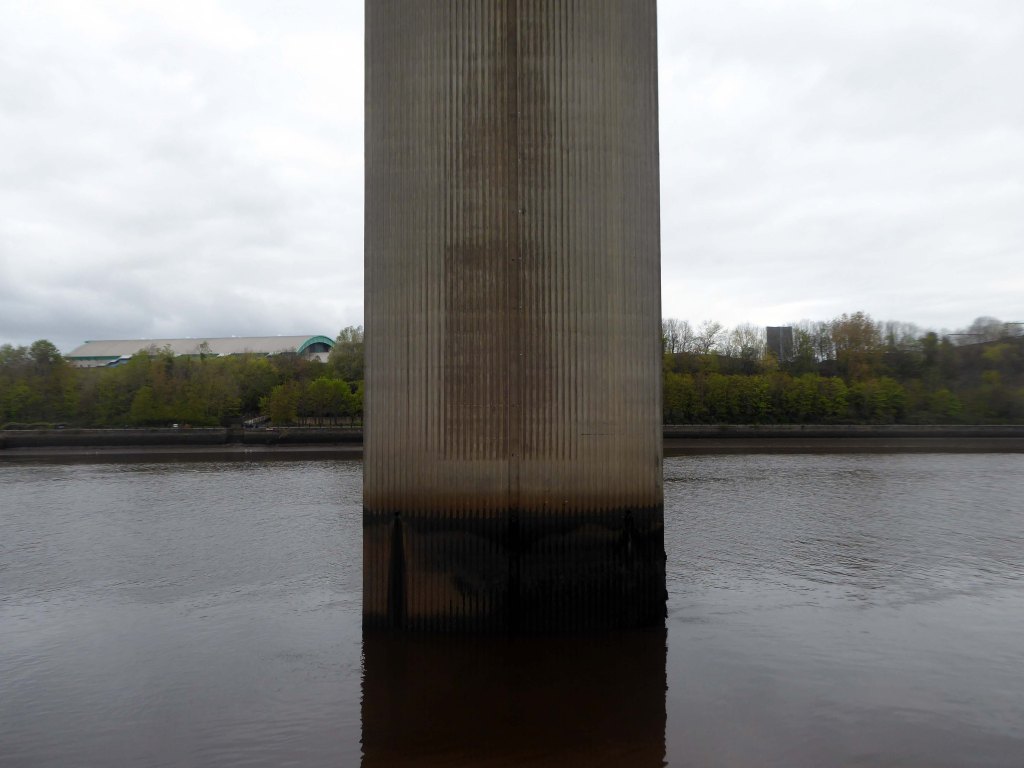 The two supporting concrete piers were fluted to create an impression of lightness and were designed to withstand the impact from a vessel of ten thousand tonnes travelling at a speed of five knots, although this is highly unlikely as large ships rarely come this far up the Tyne and the shipping lane has now effectively been blocked by the Gateshead Millennium Bridge. Due to the exposed location, strong winds can cause problems for high-sided vehicles. Early in the bridge’s life, a double-decker bus was nearly blown over the side.