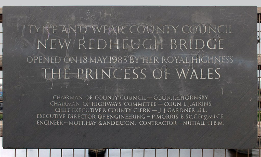 The third and current Redheugh Bridge was built by Edmund Nuttall Ltd and opened on 18th May 1983 by Princess Diana.