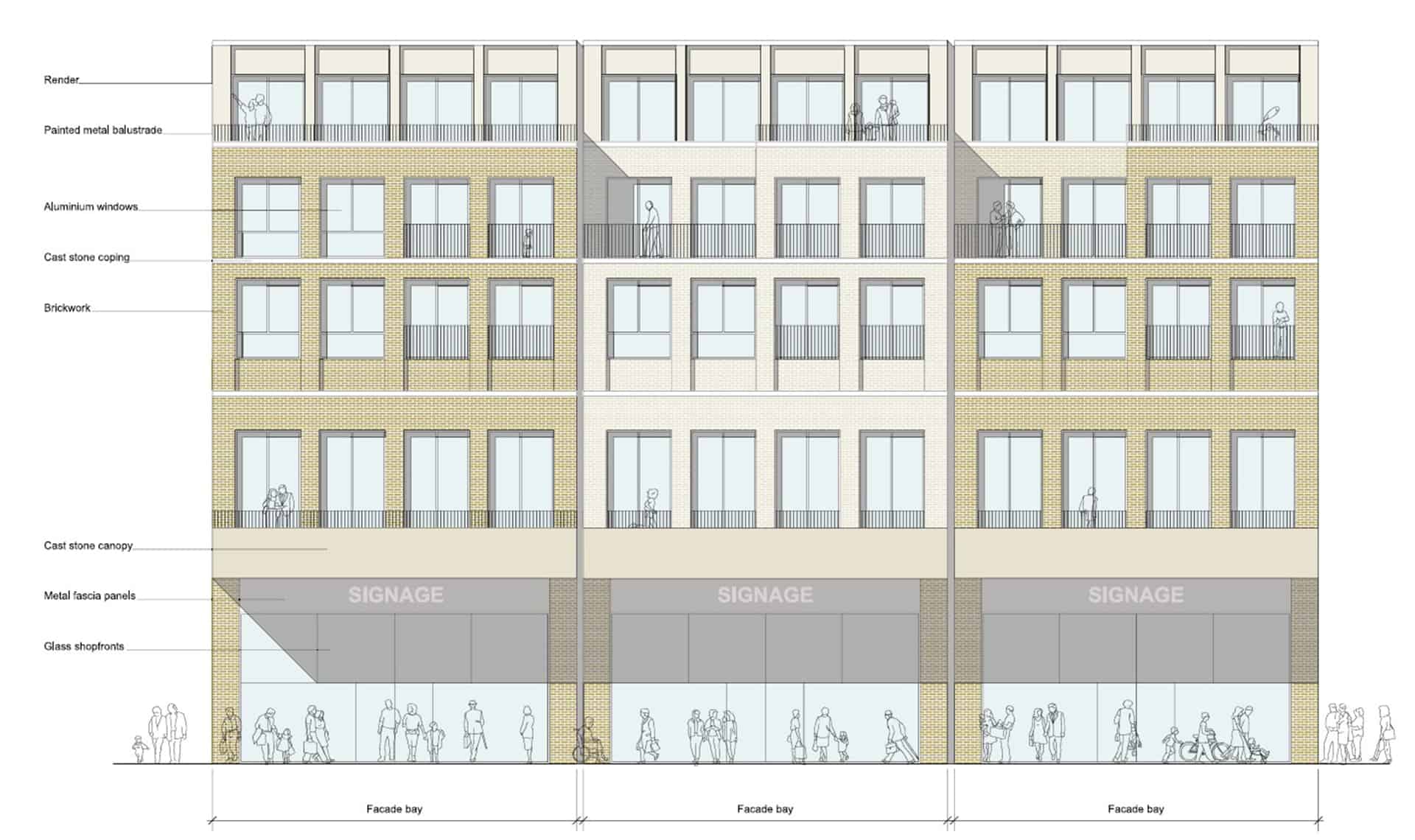 We propose this is fundamentally transformed though the addition of apartments that wrap along the back of the first-floor retail with a further 2.5 new storeys placed on top. We also feel additional height -up to seven or eight storeys, is justifiable to the corner of Frenchgate and Trafford Way.