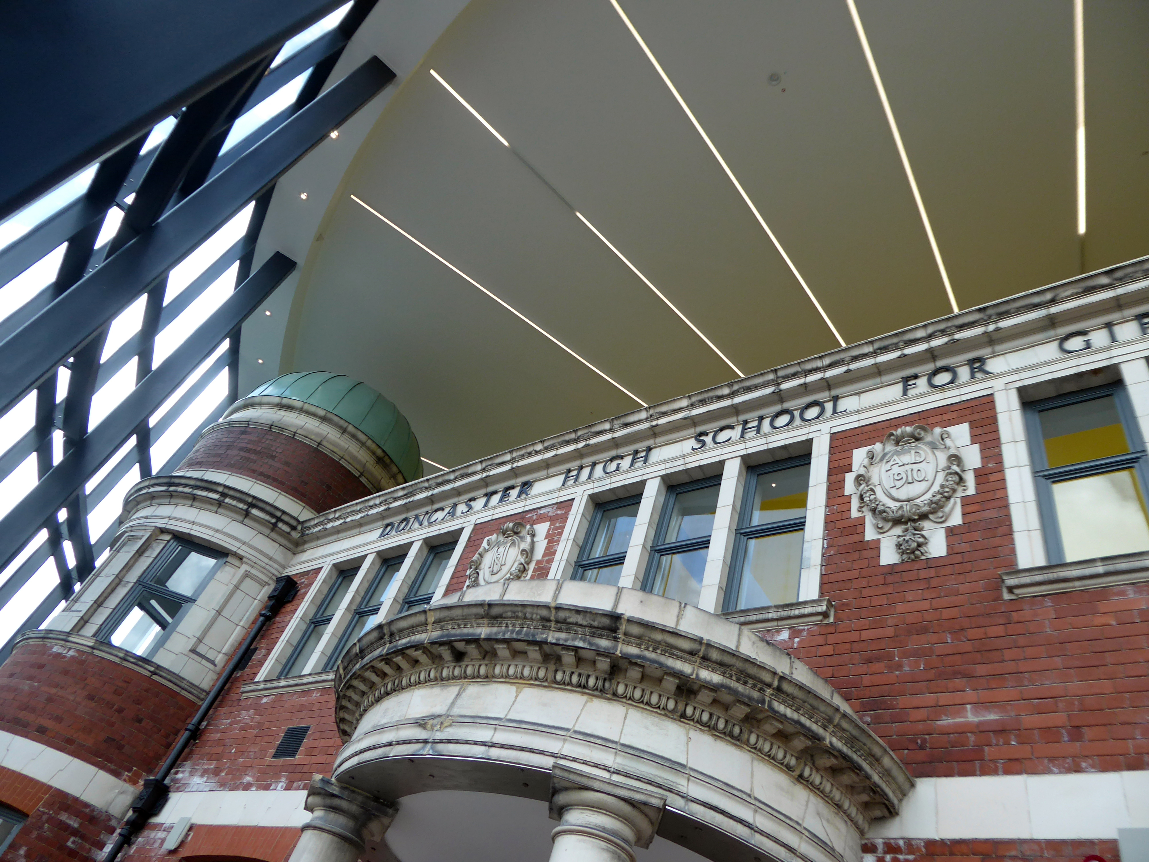 A key focal point of the scheme is the restored frontage of the Edwardian former Doncaster High School for Girls, which has been framed by Senior’s slimline SF52 aluminium curtain wall and showcased within a new steel-frame building. The glazed facade, which was fabricated and installed by Senior’s supply chain partner Chemplas, also features Senior’s aluminium commercial doors.