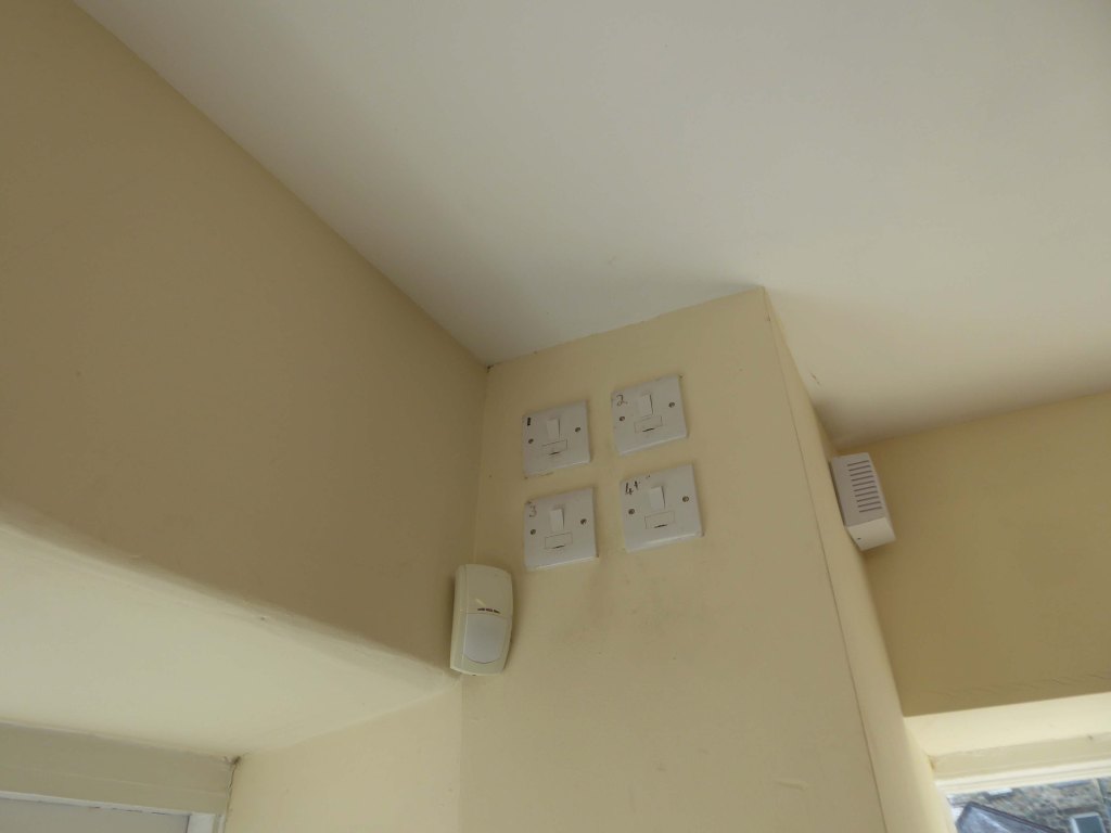 The ceramic designs were a later addition when it was discovered that the large open areas of glass overheated almost everything inside, the work was undertaken by LJ Tucker and family.