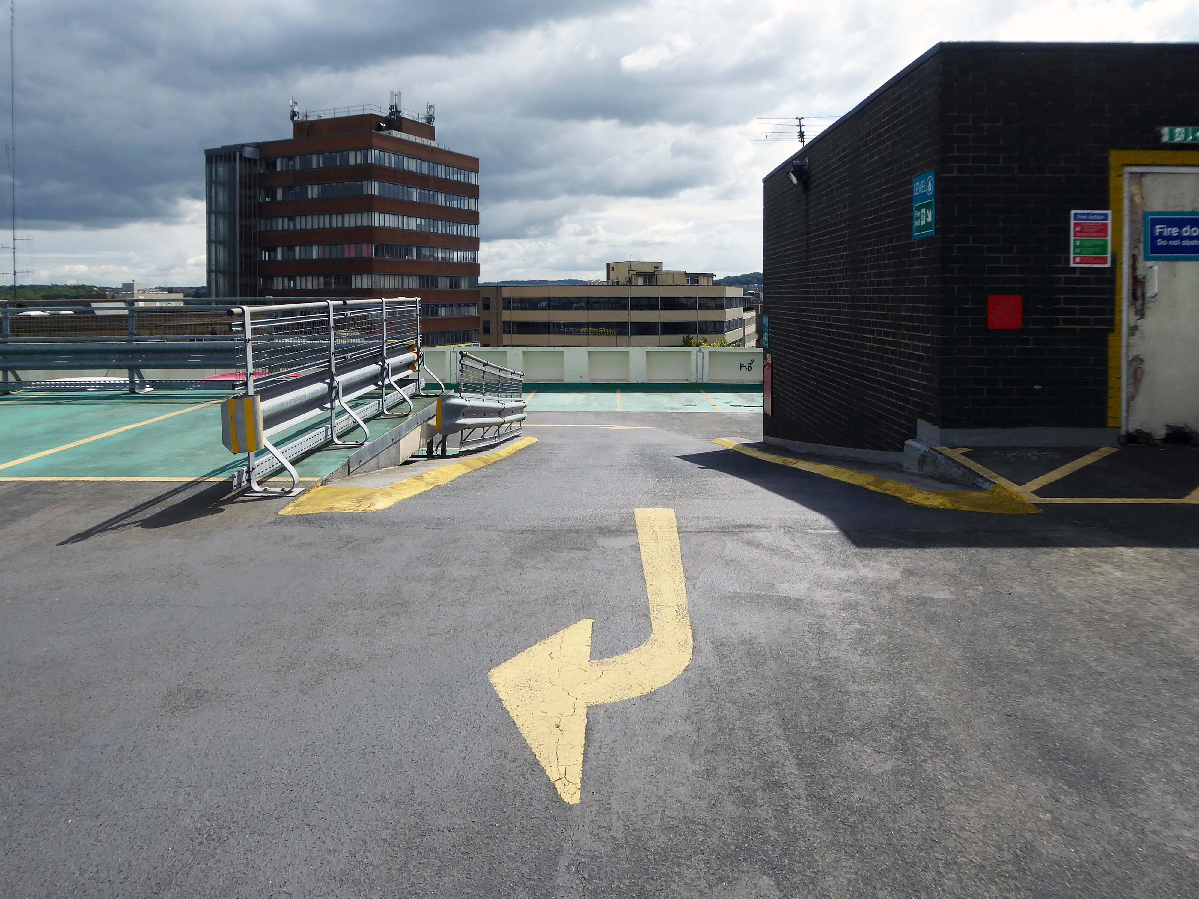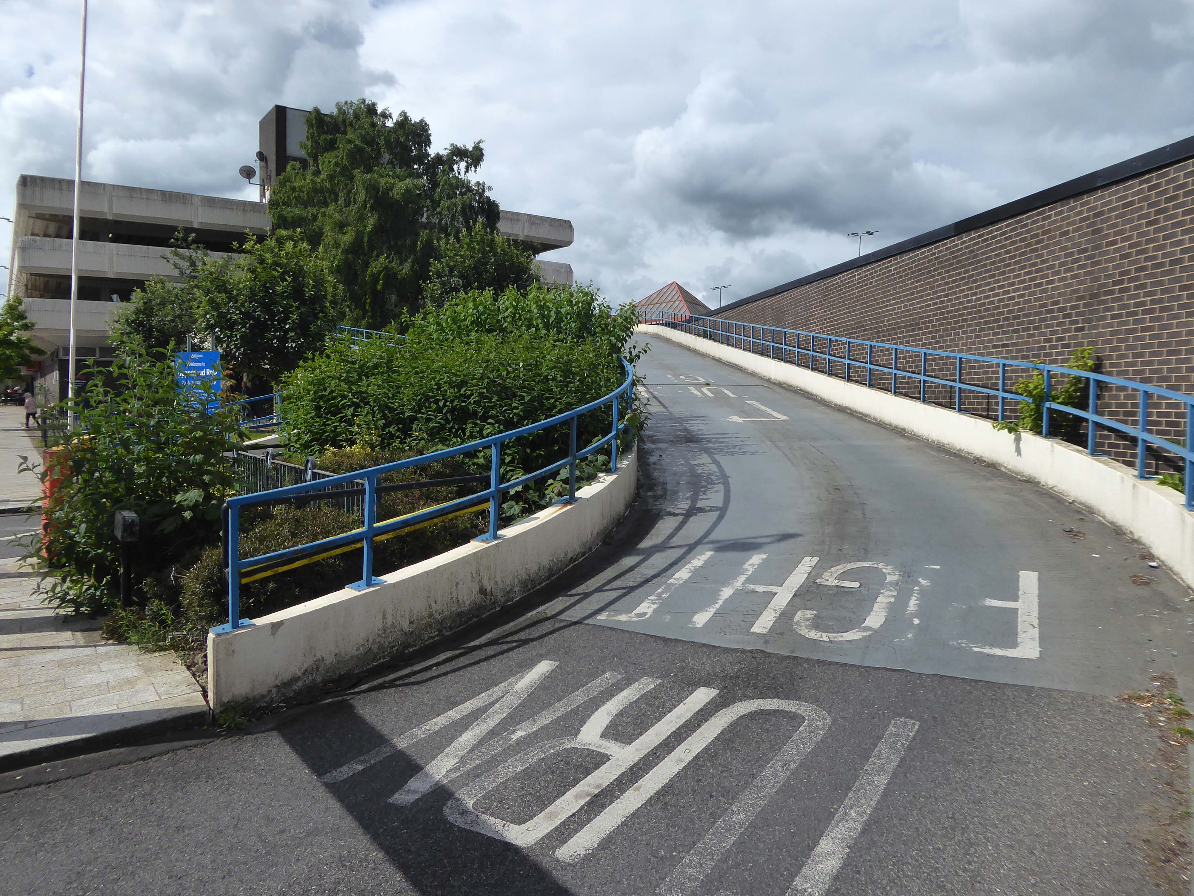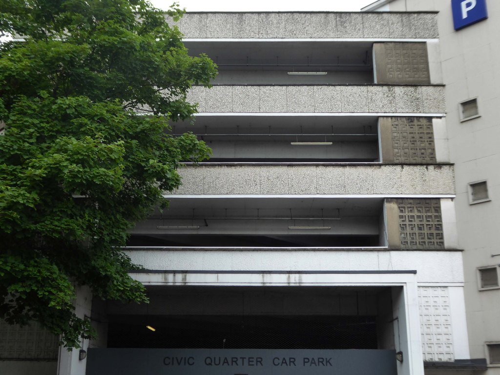 The weary walker is diverted toward the Civic Quarter Car Park.